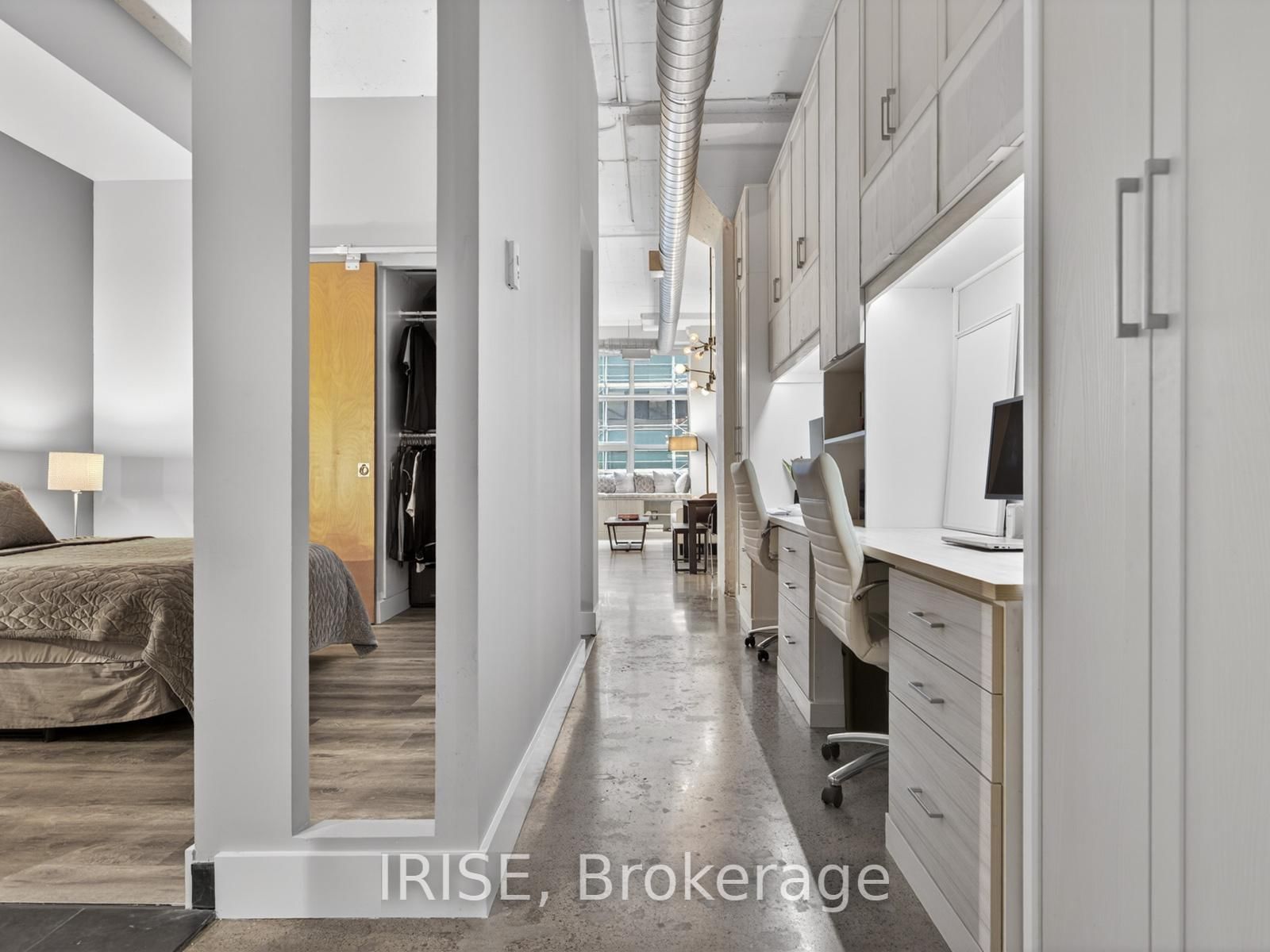 Step into this stunning, one-of-a-kind suite in the iconic Merchandise lofts, offering almost 1100sqft of thoughtfully designed living space with soaring 12-ft ceilings and an unmistakable industrial-chic character. The Loft on 430-155 Dalhousie Street has 2 bedrooms, 1 bathrooms, and is located in the community of Church-Yonge Corridor . Featuring beautifully polished, high-quality concrete floors throughout, this unit blends modern upgrades with authentic heritage charm. The fully customized California Closets home office spans an entire wall, complete with built-in desks, benches, a custom island, and seating-perfect for both productivity and stylish entertaining. The renovated bathroom showcases sleek finishes, including a premium Toto electric smart toilet, elevating everyday comfort with a touch of luxury. Freshly painted, brand new Fridge and Stove and recently bought appliances. Also includes 1 EV parking space. Rich in history and character, the building offers a vibrant, welcoming community along with resort-style amenities designed for convenience and lifestyle. Enjoy unparalleled access to urban essentials with Metro grocery store right in the building, and ttc right at your doorstep. Don't miss it.
