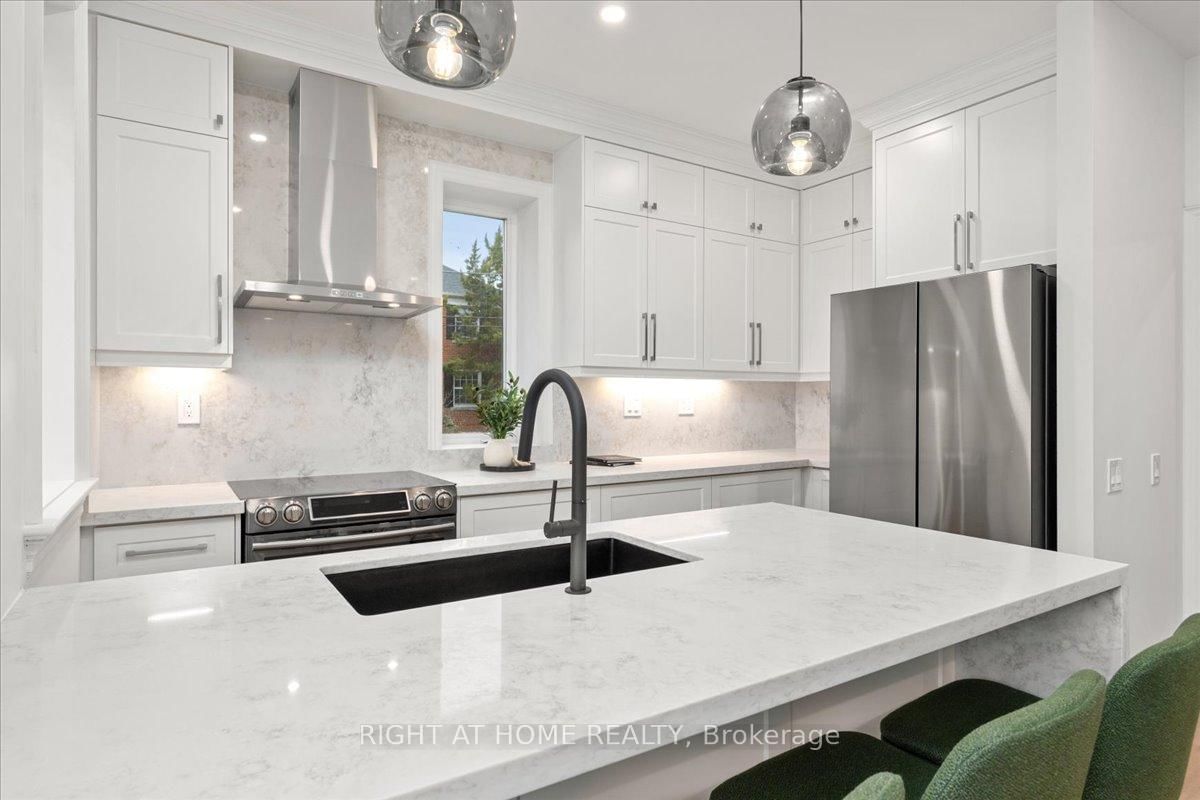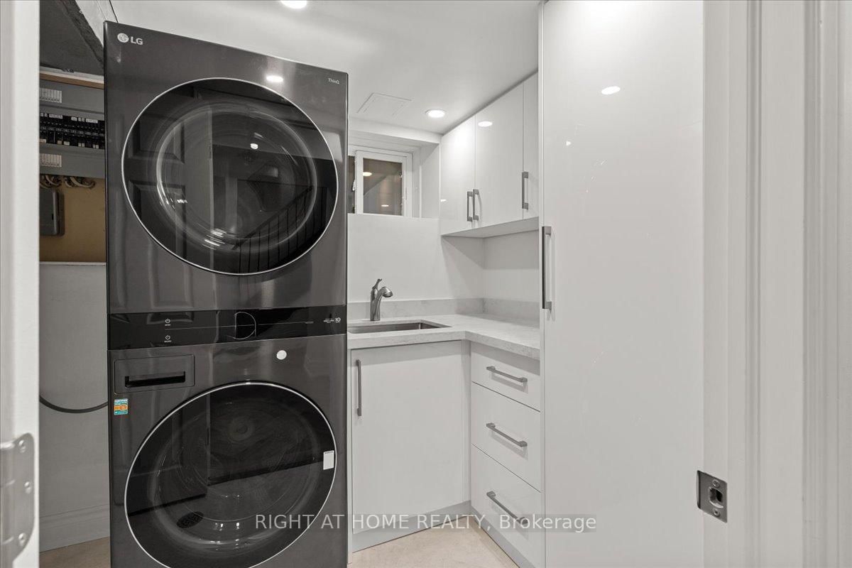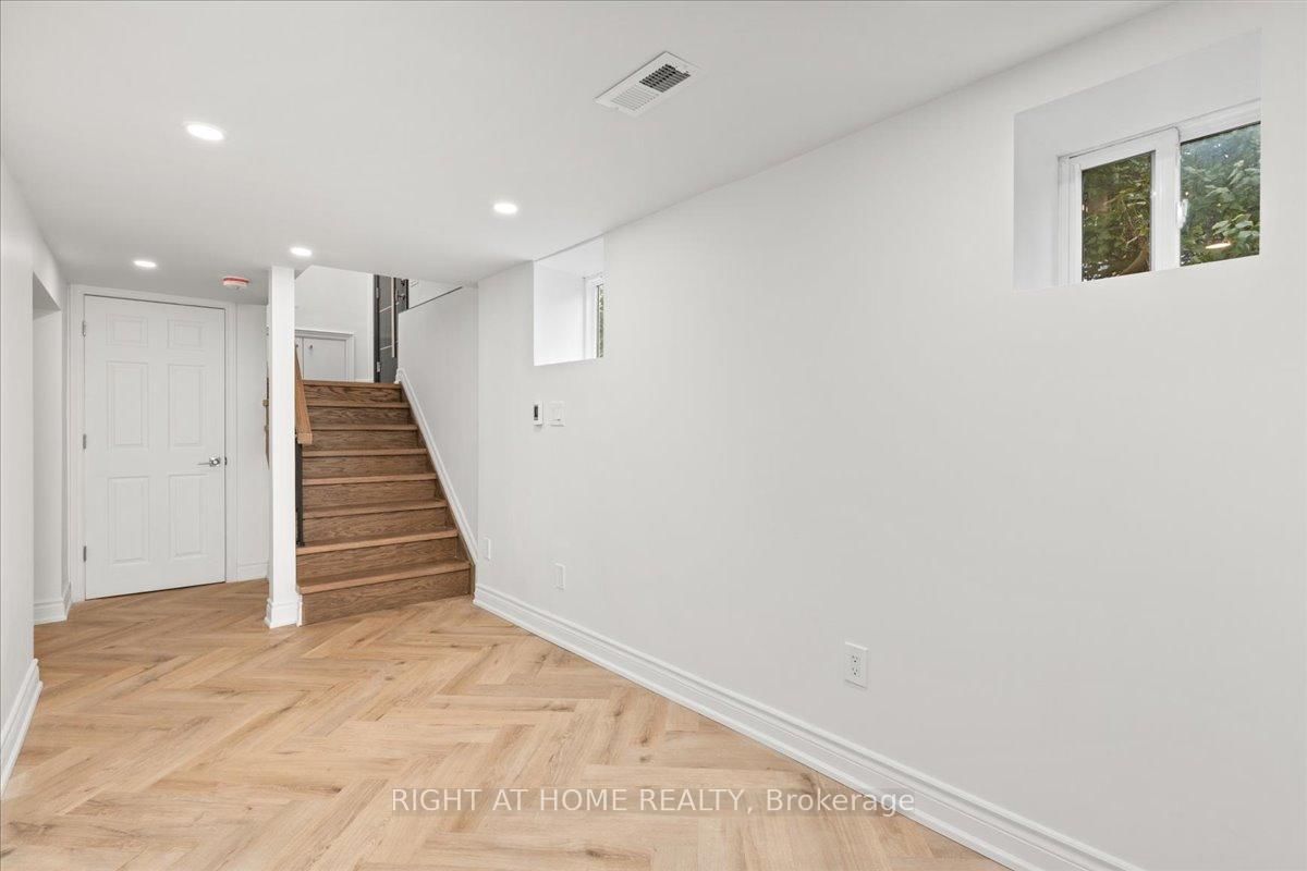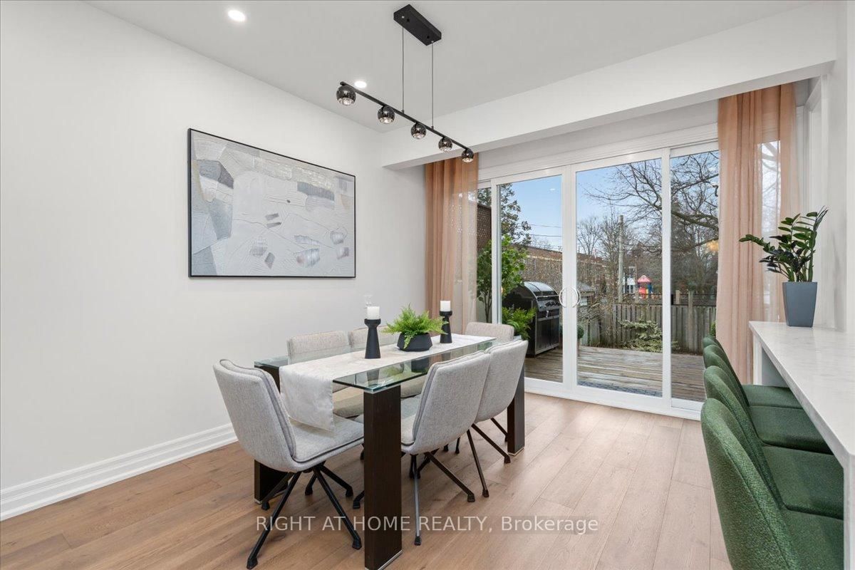North Leaside move-in-ready, fully renovated detached home with top of the line material. The 2-Storey on 497 Broadway Avenue has 3 bedrooms, 4 bathrooms, and is located on a 125 x 25 ft lot in the community of Leaside . Prime corner lot backing onto Northlea Elementary/Middle School. Perfect for people with small to middle school kids. Bright and spacious with 3+2 bedrooms and 4 baths provides a functional layout and nice flow. The custom eat-in kitchen features quartz counters and a large island. New oak flooring runs throughout, complemented by new oak stairs. 9' ceilings on the main level. The living area is enhanced by a travertine framed gas fireplace. A nook next to the living area provides a little office space. The upper level includes a primary retreat with a spa-like 5-piece ensuite and walk-in closet in the master bedroom, plus a main bath with steam sauna and heated floors. The finished lower level with heated vinyl flooring with 2 bedrooms, a 3-piece bath. Major upgrades in 2026 include all oak flooring and stairs, fiberglass front door, energy efficient patio doors, Travertine Gas Fireplace, Lennox High Efficiency furnace, A/C, tankless water heater, Upgraded 200-amp electric panel, EV charger, Smart video doorbell and Ecobee thermostat. Private two car driveway. Irrigation system in the landscape. Walking distance to Eglinton LRT and Leaside High School. **Everything is paid off. No Rental Items** **Basement photos are virtually staged**