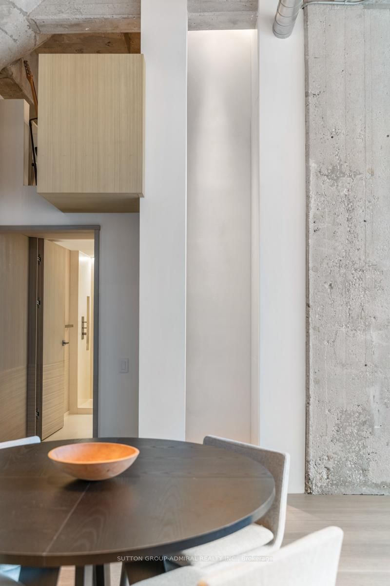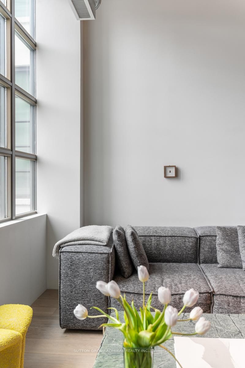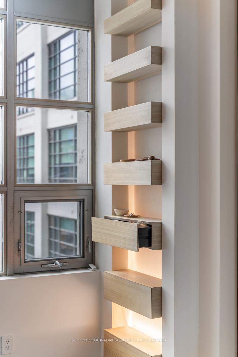 This beautifully customized loft was thoughtfully designed by a multi-ward-winning international designer, with a focus on quality, detail, and timeless style. The Loft on 434-637 Lake Shore Boulevard W has 1 bedrooms, 1 bathrooms, and is located in the community of Niagara . Wide-plank smoked European oak flooring runs throughout, complemented by extensive custom millwork, integrated lighting, and premium finishes that create a cohesive and highly considered interior. The bathroom is finished in large-format limestone with custom millwork, a marble vanity, and ultra-premium plumbing fixtures. Large south-facing windows overlook the rooftop terrace and fill the space with natural light, while automated window coverings provide everyday ease and comfort. The bedroom is bright and inviting, and the expansive mezzanine offers exceptional flexibility, ideal as a second bedroom, home office, or creative studio. The mezzanine also extends the living space beyond the stated 739 sq.ft. enhancing both functionality and the overall spatial experience of the suite. Set within Tip Top Lofts, this is a rare opportunity to own a truly one-of-a-kind designer residence in one of Toronto's most iconic buildings.