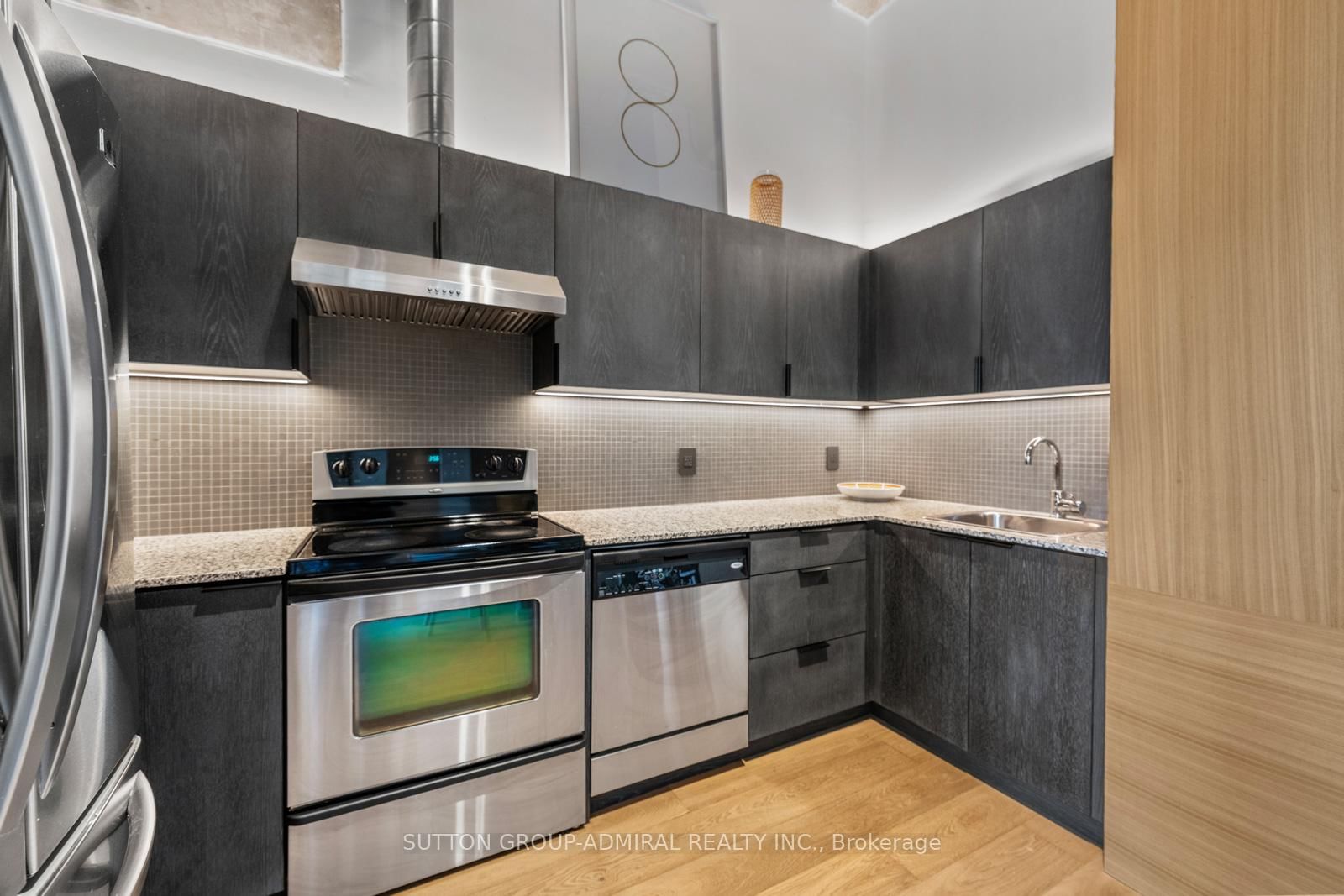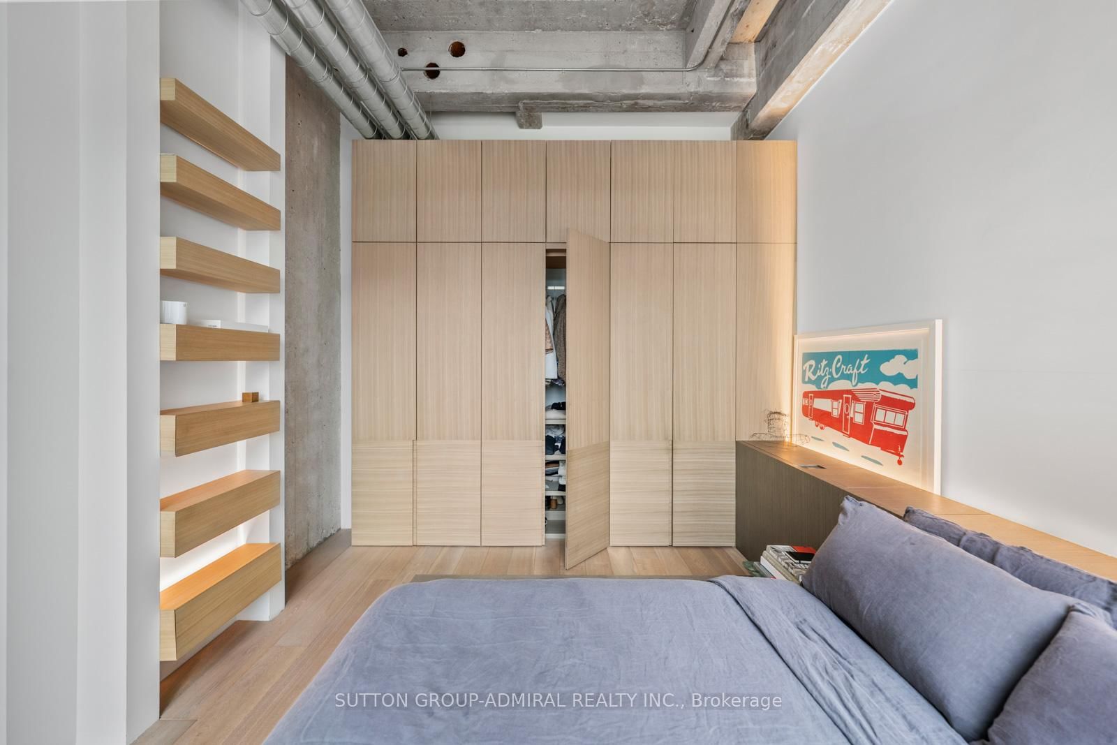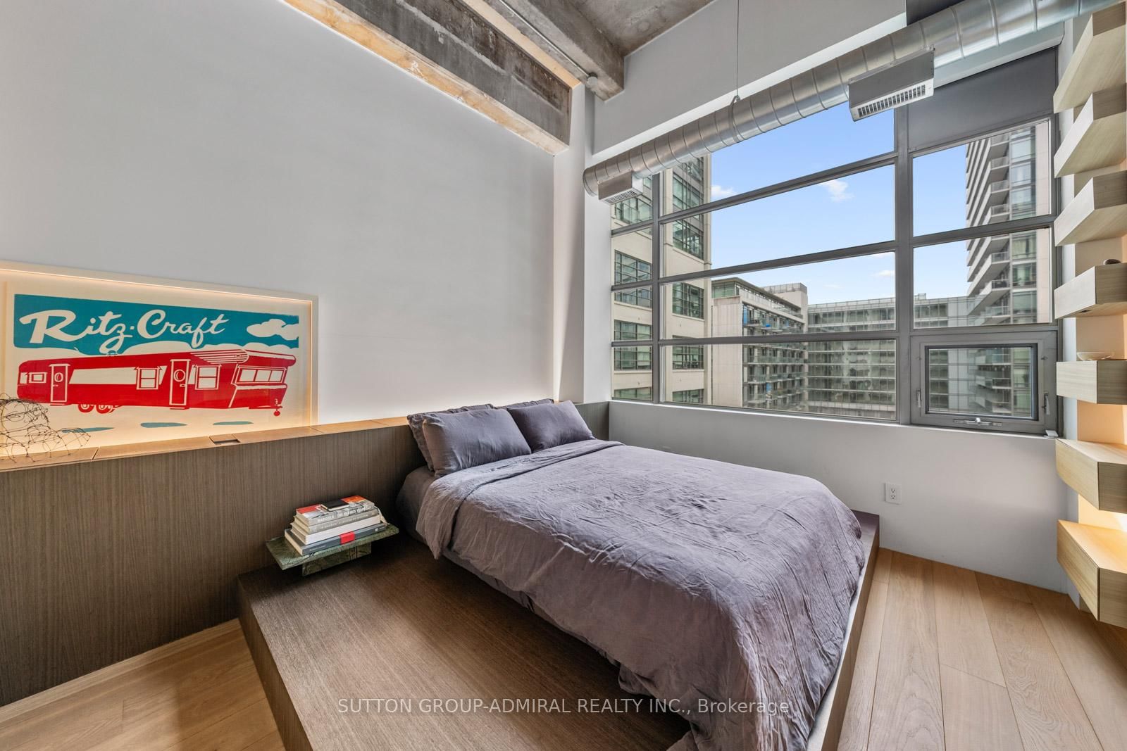 This beautifully customized loft was thoughtfully designed by a multi-ward-winning international designer, with a focus on quality, detail, and timeless style. The Loft on 434-637 Lake Shore Boulevard W has 1 bedrooms, 1 bathrooms, and is located in the community of Niagara . Wide-plank smoked European oak flooring runs throughout, complemented by extensive custom millwork, integrated lighting, and premium finishes that create a cohesive and highly considered interior. The bathroom is finished in large-format limestone with custom millwork, a marble vanity, and ultra-premium plumbing fixtures. Large south-facing windows overlook the rooftop terrace and fill the space with natural light, while automated window coverings provide everyday ease and comfort. The bedroom is bright and inviting, and the expansive mezzanine offers exceptional flexibility, ideal as a second bedroom, home office, or creative studio. The mezzanine also extends the living space beyond the stated 739 sq.ft. enhancing both functionality and the overall spatial experience of the suite. Set within Tip Top Lofts, this is a rare opportunity to own a truly one-of-a-kind designer residence in one of Toronto's most iconic buildings.