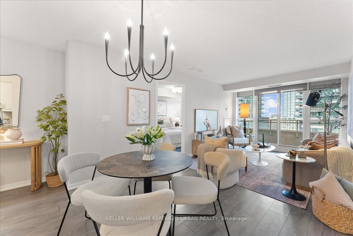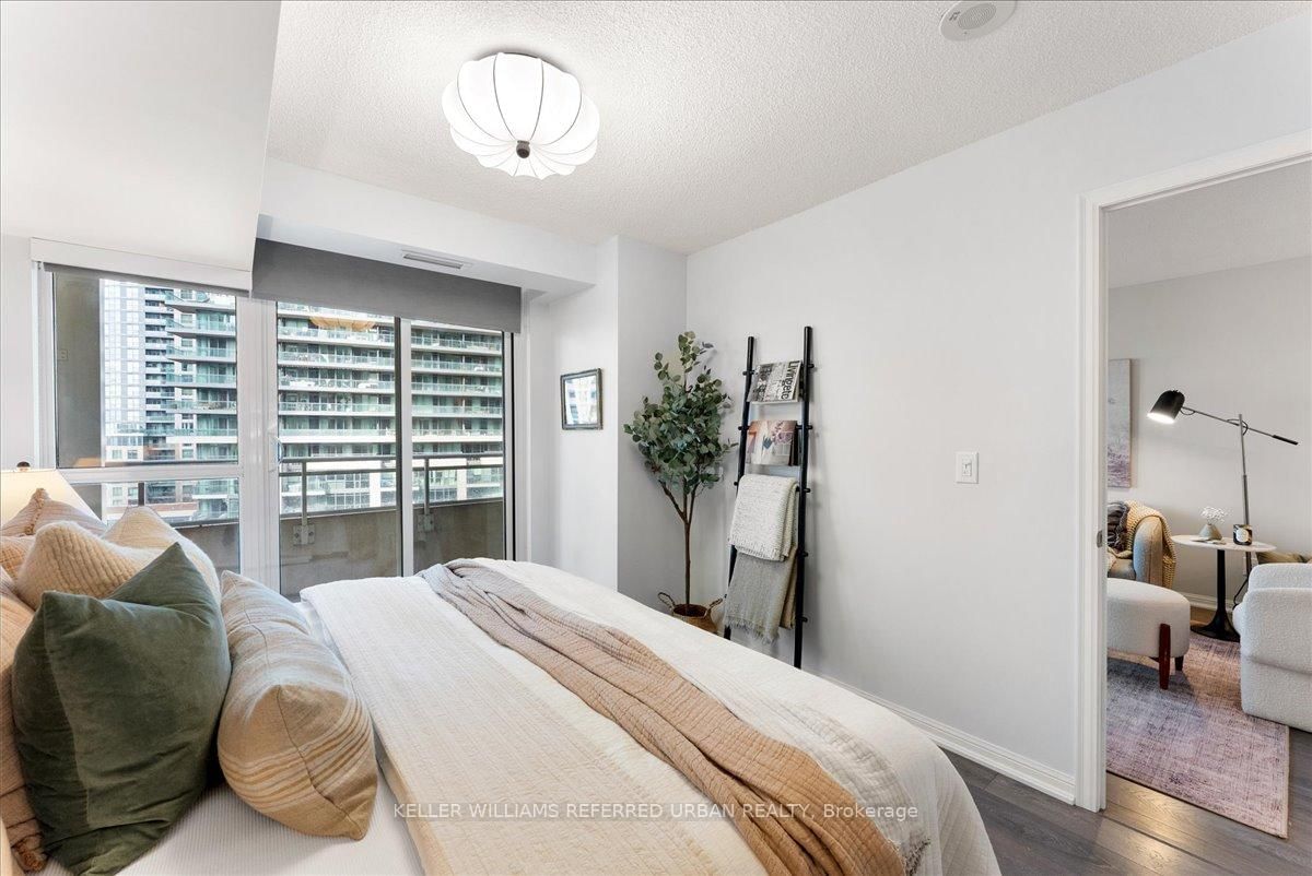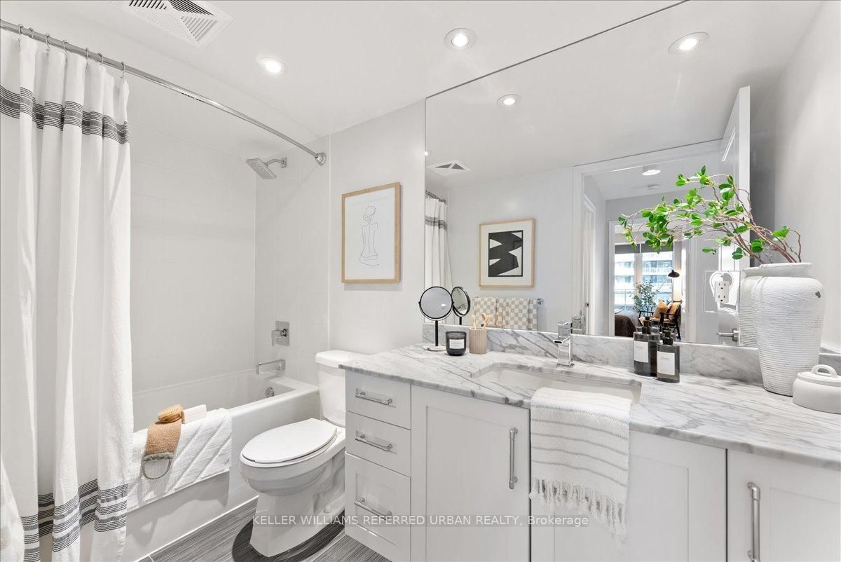 York Harbour Club is one of the better addresses in Fort York and unit 1010 is one of the best layouts in the building. The Apartment on 1010-35 Bastion Street has 2 bedrooms, 2 bathrooms, and is located in the community of Niagara . A proper primary bedroom with its own ensuite. The den adapts as life does - home office now, nursery or third bedroom when the time comes. A second bedroom that handles guests without anyone on a pullout couch. The kitchen has granite countertops and stainless steel appliances and opens into the living room so the conversation never stops while entertaining. The southwest balcony runs the full width of the unit and floor-to-ceiling windows pull afternoon light deep into the space. At 947 sq. ft., nothing is wasted. Off the foyer there is a dedicated laundry and storage room that most suites at this size simply do not have. The private locker is huge and sits right next to your parking spot - meaning gear, bikes, and strollers have a home without a long walk to reach them. Rooftop pool, fitness centre, BBQ area, concierge, and guest suites in the building. Outside, Loblaws is three minutes on foot, the Martin Goodman Trail is close for a morning run, and the Fleet Street streetcar connects you to Union Station and Downtown. This is a home that fits the way people actually live, with room for wherever life goes next.