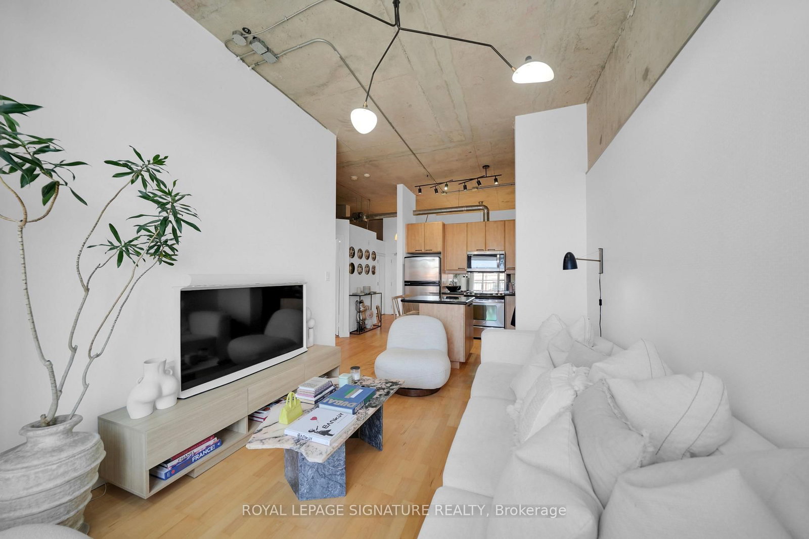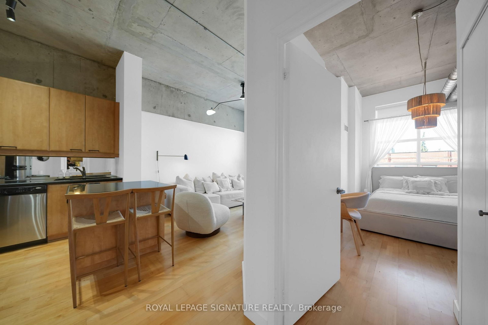 Welcome to the iconic Chocolate Company Lofts in the heart of Queen West. The Apartment on 407-955 Queen Street W has 1 bedrooms, 1 bathrooms, and is located in the community of Niagara . This stylish 1+1bedroom suite (den easily used as a second bedroom or home office) offers just under 700 sq ft of functional living space, complete with parking and locker. Featuring soaring concrete ceilings, warm wood floors, and an open-concept layout, the space blends authentic loft character with modern comfort. The kitchen with breakfast bar over looks the living area, while oversized windows and a Juliette balcony bring in natural light and city views. Live directly across from Trinity Bellwoods Park and steps to Queen West's best cafés, restaurants, boutiques, and transit. A rare opportunity to lease in one of Toronto's most sought-after loft buildings - where lifestyle and location meet.