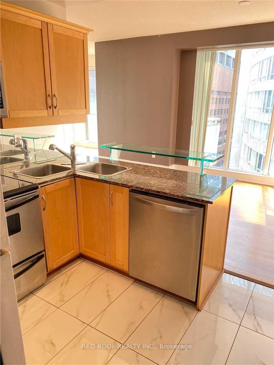 Yonge & Dundas - Elegant Corner Residence Offering Exceptional Space and Design. The Apartment on 1204-220 Victoria Street has 2 bedrooms, 2 bathrooms, and is located in the community of Church-Yonge Corridor . This expansive suite features a highly functional 921 sqft layout, enhanced by floor-to-ceiling windows that fill the home with natural light and a bright, inviting ambiance. Ideally situated across from St. Michael's Hospital, the residence includes all utilities for effortless living. Appointed with premium finishes, including granite countertops, engineered hardwood flooring, and elegant ceramic tiles. The private balcony showcases captivating east and south-facing views.Set within a boutique building in the vibrant heart of downtown Toronto, just steps to Yonge-Dundas Square, University of Toronto, and Toronto Metropolitan University. Enjoy unparalleled convenience with two subway stations, underground access to the Financial District, and immediate proximity to the CF Toronto Eaton Centre, theatres, and an array of fine dining options.