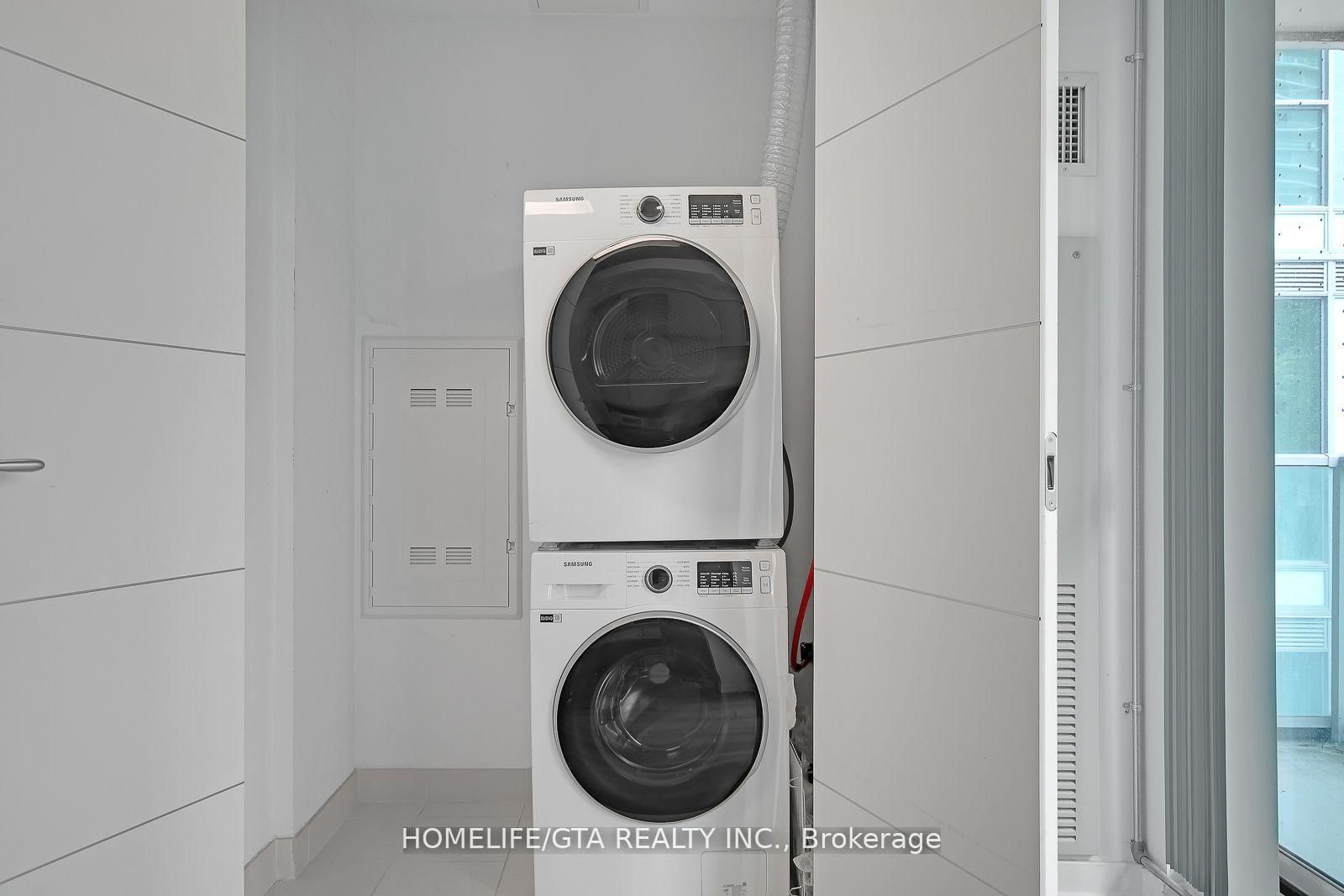 Fridge, Freezer, Stove, Microwave, Stacked Washer/ Dryer, Window Coverings, Parking, Locker. Parking to be accessed via Lift/Elevator.