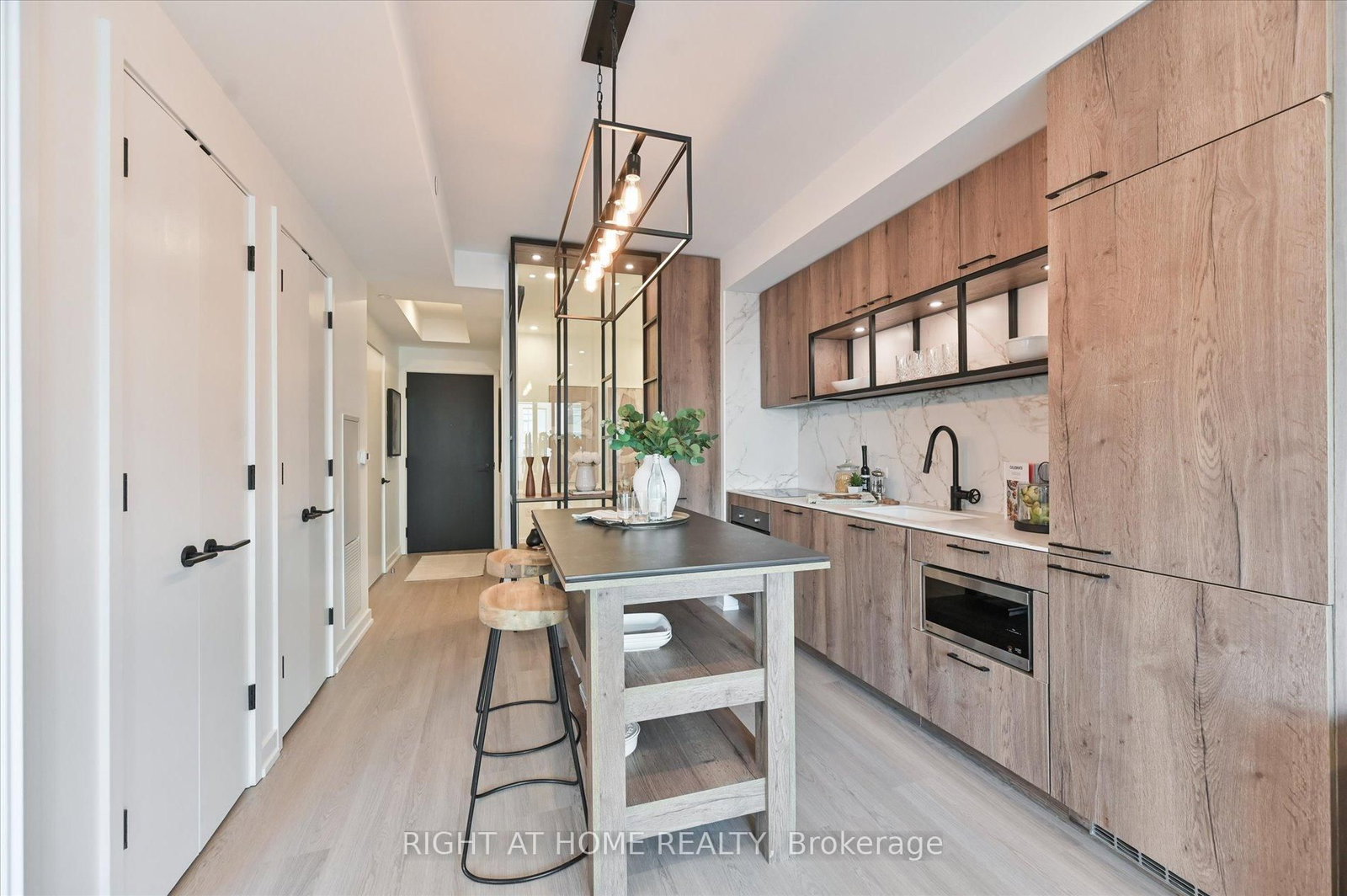 Integrated Fridge, B/I Cooktop, B/I Oven, Integrated B/I Dishwasher, Microwave, Stacked Washer & Dryer, Light fixture above kitchen island, Elfs included, Locker included.