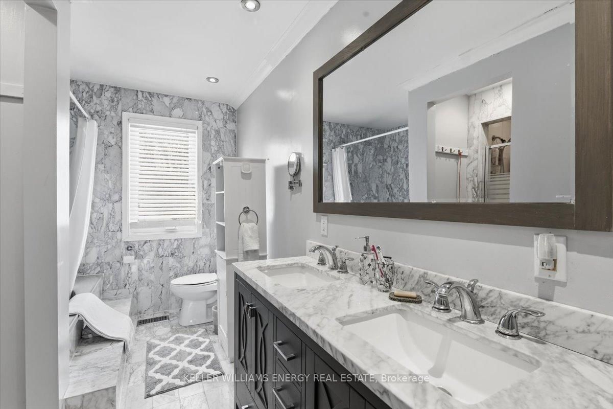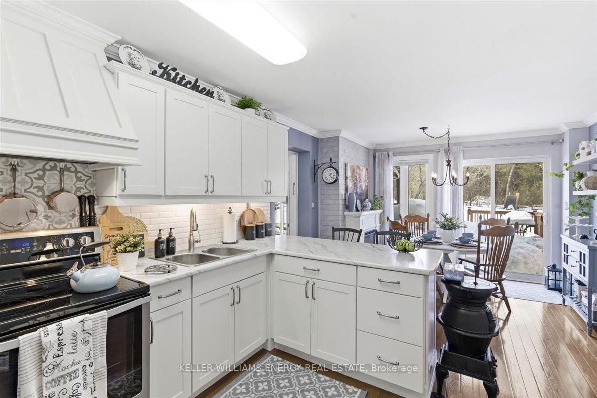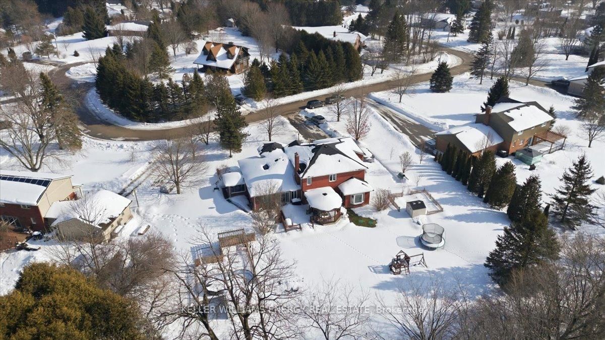 TWO HOMES IN ONE!!!A rare opportunity to own two fully independent homes side-by-side on a sprawling 1-acre lot in the sought-after hamlet of Utica, Scugog. The 2-Storey on 14 Christie Crescent has 5 bedrooms, 4 bathrooms, and is located on a 251.47 x 111.22 ft loton .50-1.99 acres in the community of Rural Scugog . This expansive residence offers exceptional versatility with 2 kitchens, 2 living rooms, and 2 dining rooms - ideal for multi-generational living, extended family stays, or investors exploring the potential for a third self-contained unit. The main home features hardwood flooring, elegant wainscoting, and crown moulding throughout the principal rooms. The spacious eat-in kitchen showcases granite countertops and a walk-out to the deck, while the family room is anchored by a cozy wood-burning fireplace. Upstairs, hardwood floors continue through four generously sized bedrooms. The primary suite is a true retreat, complete with a walk-in closet and a luxurious 6-piece ensuite. The fully self-contained in-law suite offers its own separate entrance, kitchen, living room with cathedral ceiling, 4-piece bath, spacious bedroom with walk-in closet, and a private basement. Both basements are fully separated and finished with laminate flooring, providing outstanding additional living space, including a media room, recreation room, sixth bedroom, beautiful bar area, and a second wood-burning fireplace. The home is equipped with two electrical panels (200-amp and 100-amp service), and the hot water tank is owned. Enjoy your private outdoor oasis -1 acre on a quiet cul-de-sac - featuring raised garden beds, a large deck backs off onto a tree farm and or hundreds of acres of environmentally protected woods, and an above-ground pool. The driveway accommodates parking for up to 8 vehicles, plus a 2-car attached garage. Experience peaceful rural living just 6 minutes from the Walmart shopping centre in Port Perry. A truly unique property that must be seen to be fully appreciated.