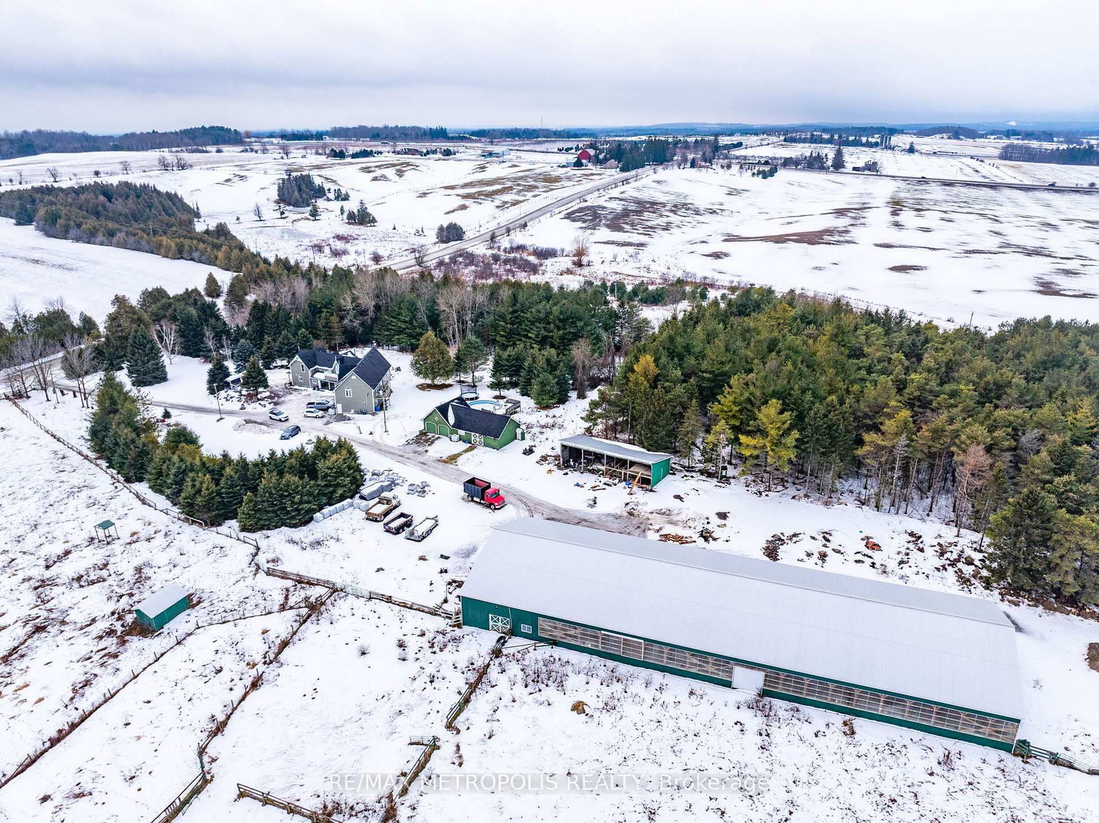 Set on 99 acres of rolling farmland, pasture, and mature woods, this exceptional country property offers space, flexibility, and income potential just minutes from Port Perry and major routes. The 2-Storey on 1315 Scugog 2 Line has 5 bedrooms, 4 bathrooms, and is located on a 3474.49 x 1968.33 ft loton 50-99.99 acres in the community of Rural Scugog . The 4,000+ sq ft home features two self-contained living areas with a total of 6 bedrooms, 2 kitchens, multiple bathrooms, and main-floor laundry-ideal for multi-generational living, guests, or rental opportunities. A three-car garage with a separate upper-level suite adds even more versatility. The land includes productive hay fields, fenced paddocks, wooded trails, and natural water features, making it perfect for agricultural or recreational use. Equestrian amenities include a large insulated 9-stall barn with indoor arena, heated tack and feed rooms, hay loft, and year-round water. A rare opportunity to own a complete country package offering privacy, functionality, and room to grow. Approx 10 minute drive to Whitby, restaurants, schools, groceries and all other amenities!