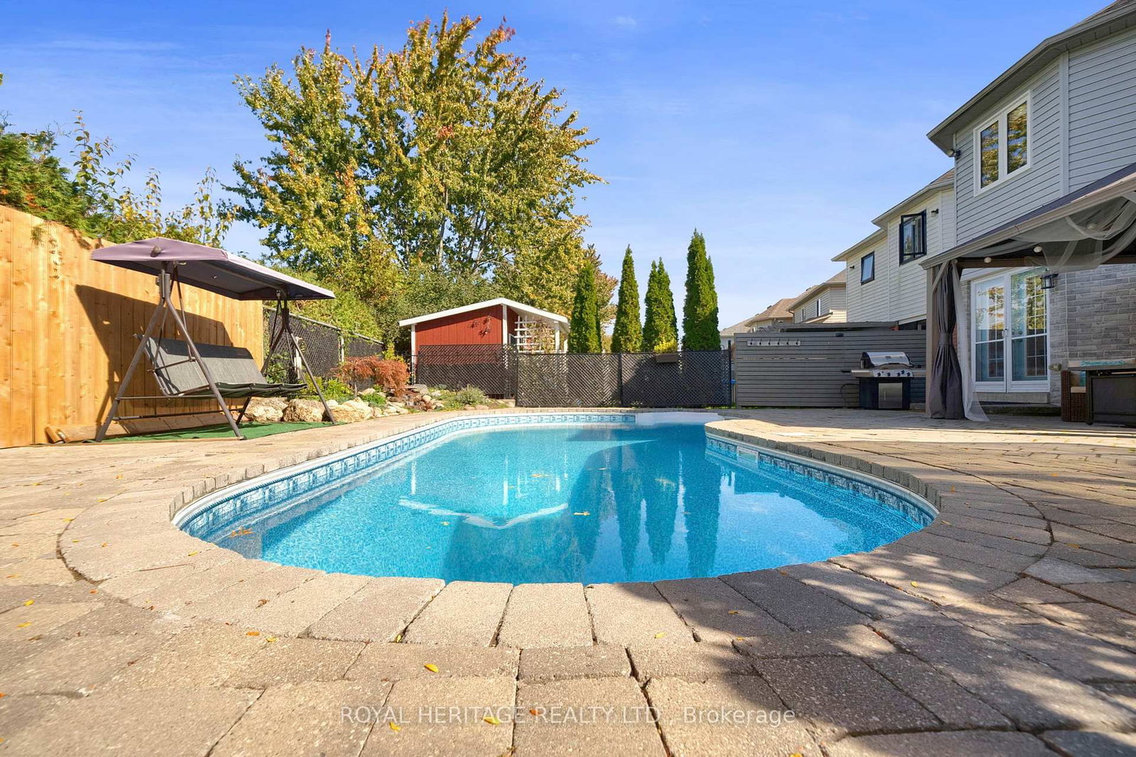 Existing stainless-steel fridge, gas stove with double convection oven, vent hood, built-in dishwasher, washer & dryer, basement fridge and microwave, all electric light fixtures, central vacuum, swimming pool solar cover and all related equipment, backyard BBQ with direct gas line, IKEA closet system in 1st bedroom, IKEA closet system in primary bedroom, and two outdoor sheds.