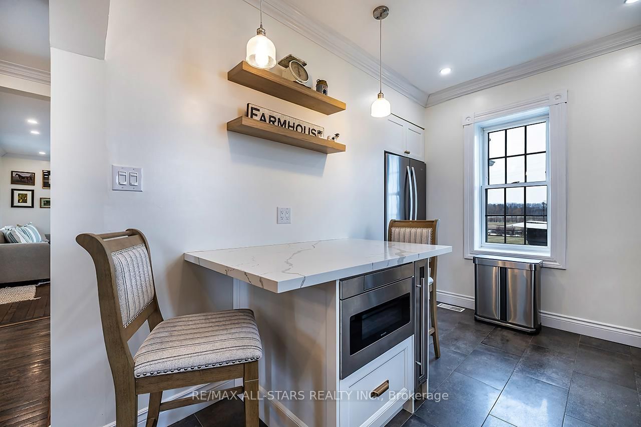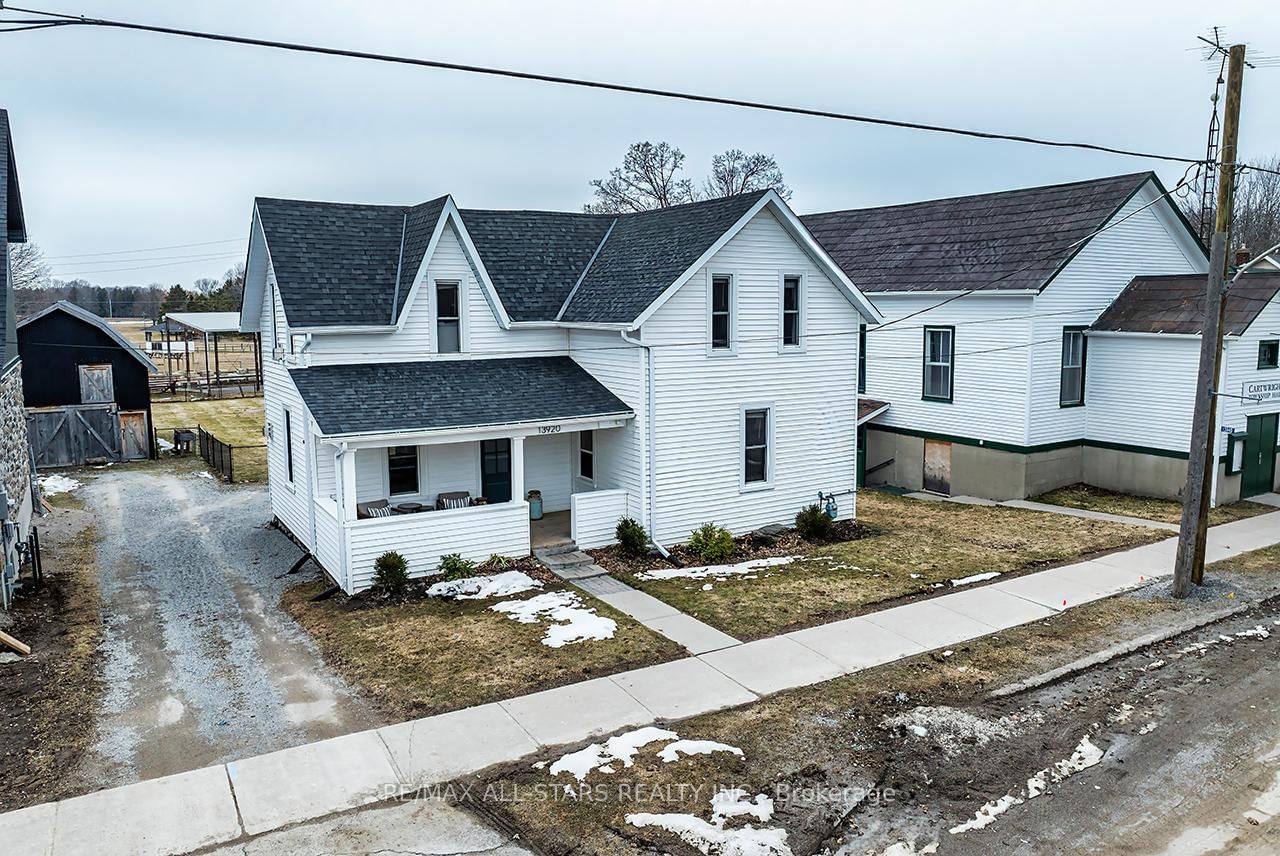 A TRUE MODERN FARMHOUSE! Absolutely Charming country home located in the quaint hamlet of Blackstock. The 2-Storey on 13920 Old Scugog Road has 3 bedrooms, 2 bathrooms, and is located on a 212.16 x 54.53 ft loton < .50 acres in the community of Blackstock . Cozy living room featuring a gas fireplace, perfect for relaxing evenings. The custom kitchen boasts a breakfast bar, granite countertops, fireclay sink, extended cabinets with built-in coffee bar, so stylish and functional! The dining room conveniently located just off the kitchen is ideal for hosting family gatherings. The generous master bedroom showcases original wide barn wood floors, a custom wall-to-wall built-in wardrobe/closet and its own gas fireplacefor added comfort. The main bathroom offers a luxurious freestanding bathtub and separate glass enclosed shower & double vanity! Other Features, Wood Floors, Pot Lights, Crown Moulding and custom trim thru-out! Main Floor Laundry, Pantry off Kitchen. Lovely Covered Front Porch to enjoy the morning sun. Walkout to the deck overlooking huge yard with peaceful countryside views. Huge Metal Barn/garage, ideal 18'x30' for the hobbyists, great storage, and workshop space. The fully fenced, irregular L-shaped yard provides plenty of outdoor space to enjoy!A perfect blend of rural charm and modern convenience! Ideal commuters location, 10+ mins to 407 and beautiful Port Perry!!
