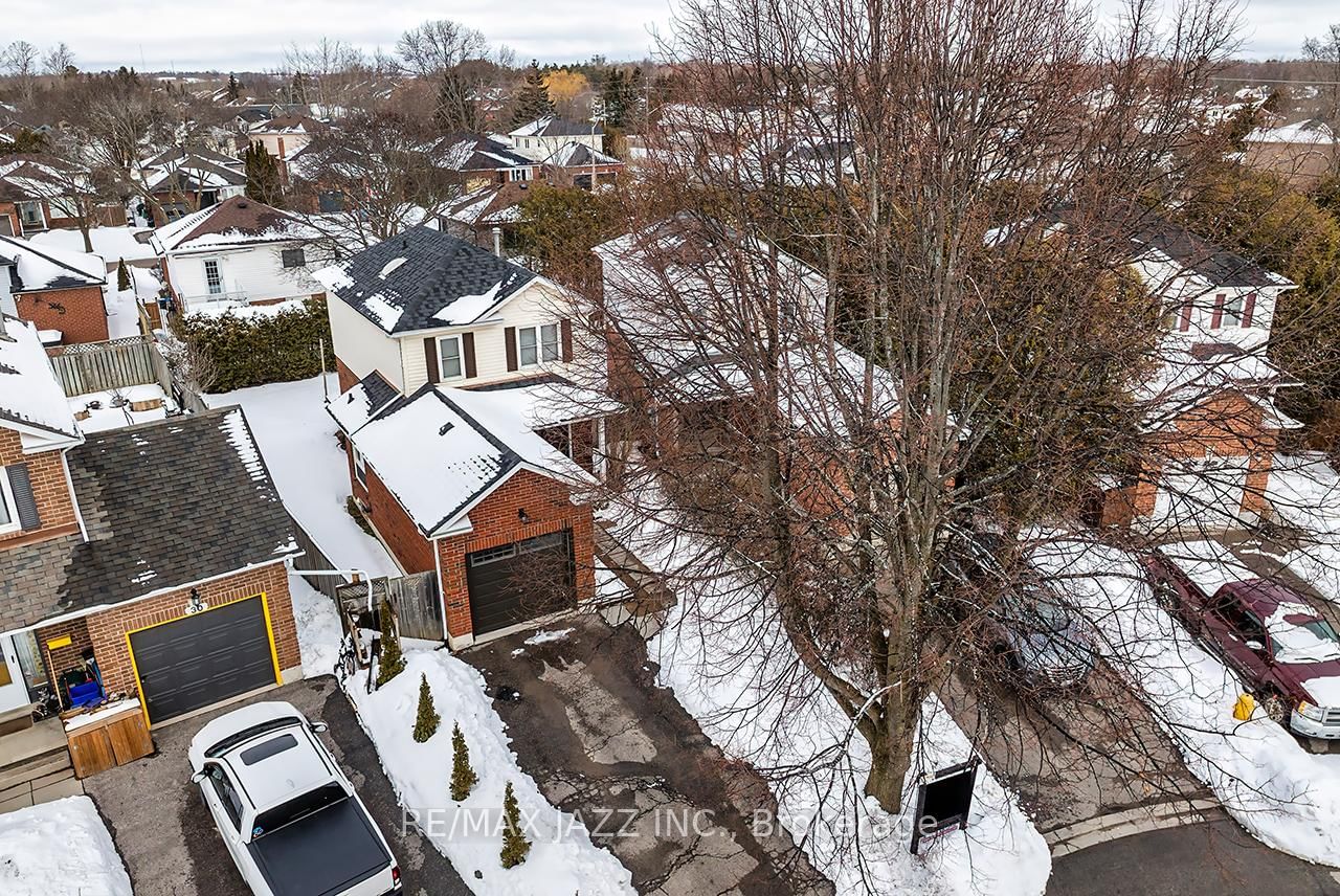 This one's a perfect start for young families! Nestled at the top of a lovely, quiet court in a beautiful and sought after Courtice neighbourhood, 33 Mossgrove sits on a maturely landscaped and very private, pie-shaped lot. The 2-Storey on 33 Mossgrove Court has 3 bedrooms, 2 bathrooms, and is located on a 98.34 x 25.95 ft lot in the community of Courtice . Welcoming you with its long driveway, attached single garage and double door entry, you'll be delighted by the bright and spacious foyer where a double closet offers loads of room for shoes, hats and coats. Bright and airy, with pot lights galore, the floor plan includes a true family-sized eating area and efficiently designed kitchen with peninsula; a generous living room where a sliding glass walk-out leads to the deck and fenced and hedged yard; 3 generous bedrooms upstairs sporting new modern flooring; an updated 4pc bath complete with ceramic floors, new tile and skylight; and a large finished basement with another 4 pc bath! Boasting upgrades that include new shingles and gas furnace (24); pot lights throughout (25); new flooring on 2nd floor (25); owned hot water tank; windows (15); A/C (14), this home is sure to please! Steps away from great schools, daycare and every convenience, 33 Mossgrove is also a commuter's dream, with easy access to the 401, 418 and 407. It's a winner!!!