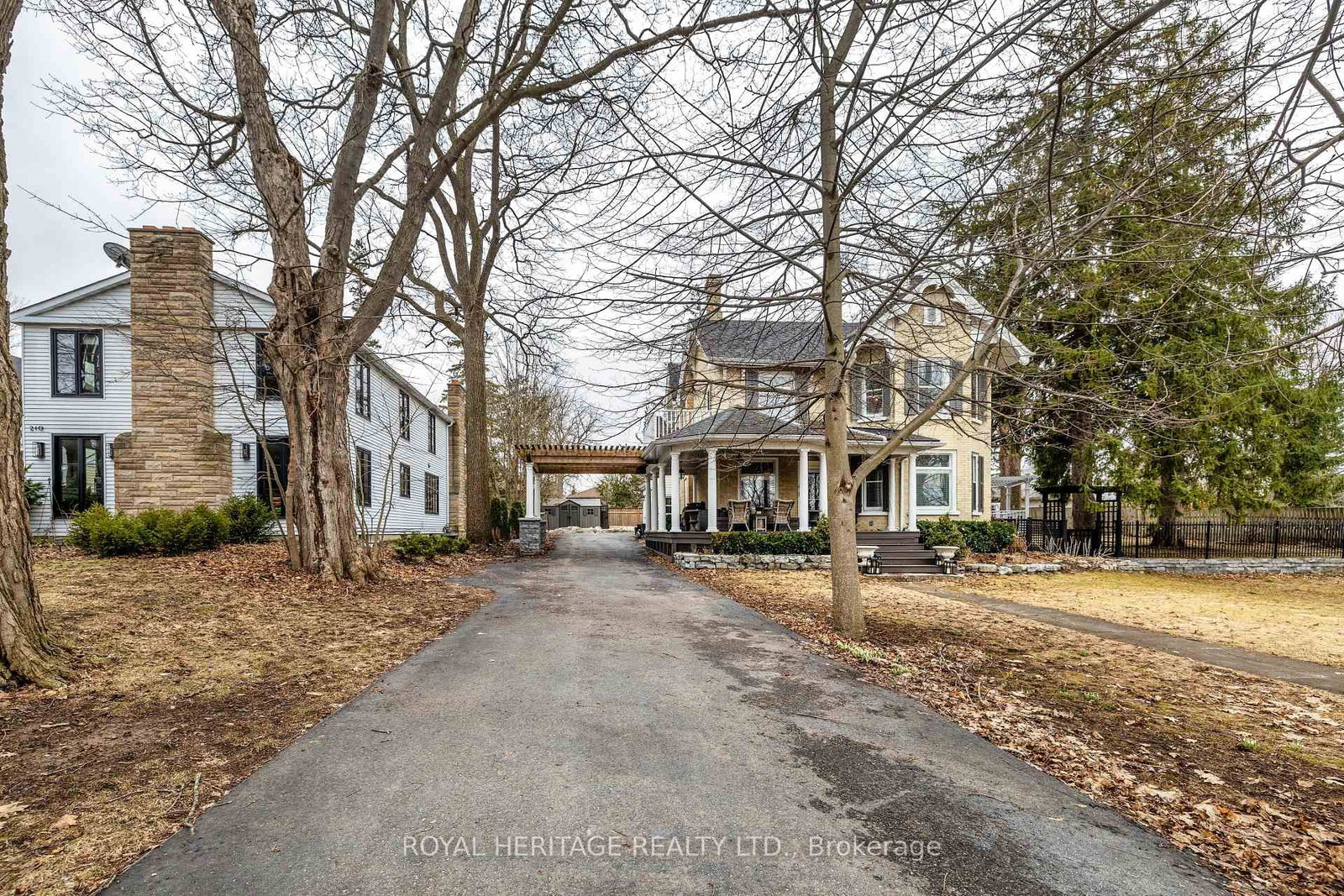 Step into a piece of Port Perry history on coveted Cochrane Street-where timeless elegance meets modern comfort. The 2-Storey on 220 Cochrane Street has 4 bedrooms, 3 bathrooms, and is located on a 154 x 123.4 ft lot in the community of Port Perry . Known as The Jeffrey House, this distinguished 1883 brick residence-built by Thomas Courtice & later home to his son-in-law Sam Jeffrey-sits proudly on an exceptional double lot - a rare offering in one of the town's most iconic locations. From the moment you arrive the charm is undeniable. A welcoming front porch, framed by original columns, overlooks the professionally landscaped grounds. Thoughtfully updated throughout, the home blends old-world craftsmanship with modern convenience. Timeless character shines throughout, with original wood floors, attractive stained glass transoms, a beautiful plaster ceiling medallion in the living room, & the original front door with beveled glass. The home features 4 bedrooms (one being used as an office) & 2 balconies, along with a flexible & inviting layout. A rare highlight is the presence of two staircases, including a secondary staircase to the kitchen. The renovated, stylish & functional kitchen features stainless steel appliances, granite countertops, and under-cabinet lighting, while the dining room walks out to a composite deck with pergola (adjustable louvres), hot tub, & a gas BBQ hookup-perfect for entertaining. Upstairs, the primary suite offers a serene retreat with a gas fireplace, private balcony, & a beautifully updated ensuite with heated floors, walk-in shower, & a 2nd laundry. Another balcony off the library, a sitting room off the second bedroom, & additional original fireplaces add to the home's charm.Bathrooms include a main floor 4-piece with restored clawfoot tub, an updated upstairs bath, & the primary ensuite. Major updates include electrical (2014), plumbing, furnace (2016), heat pump (2025), and shingles (2024).Complete with an attached 2-car garage with access to the house, & exceptional outdoor living, this is a rare opportunity to own a landmark home just steps to downtown Port Perry.