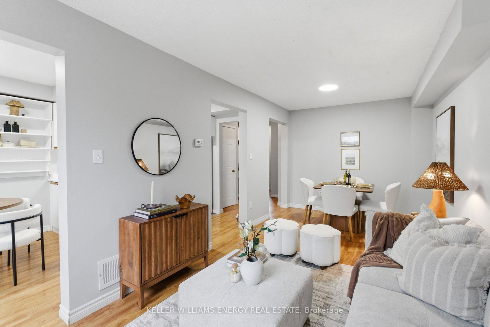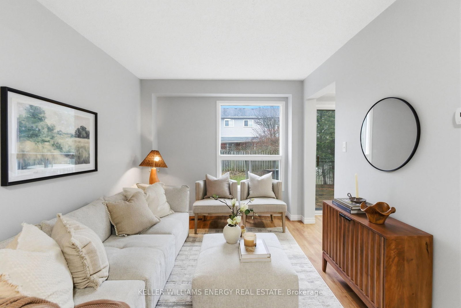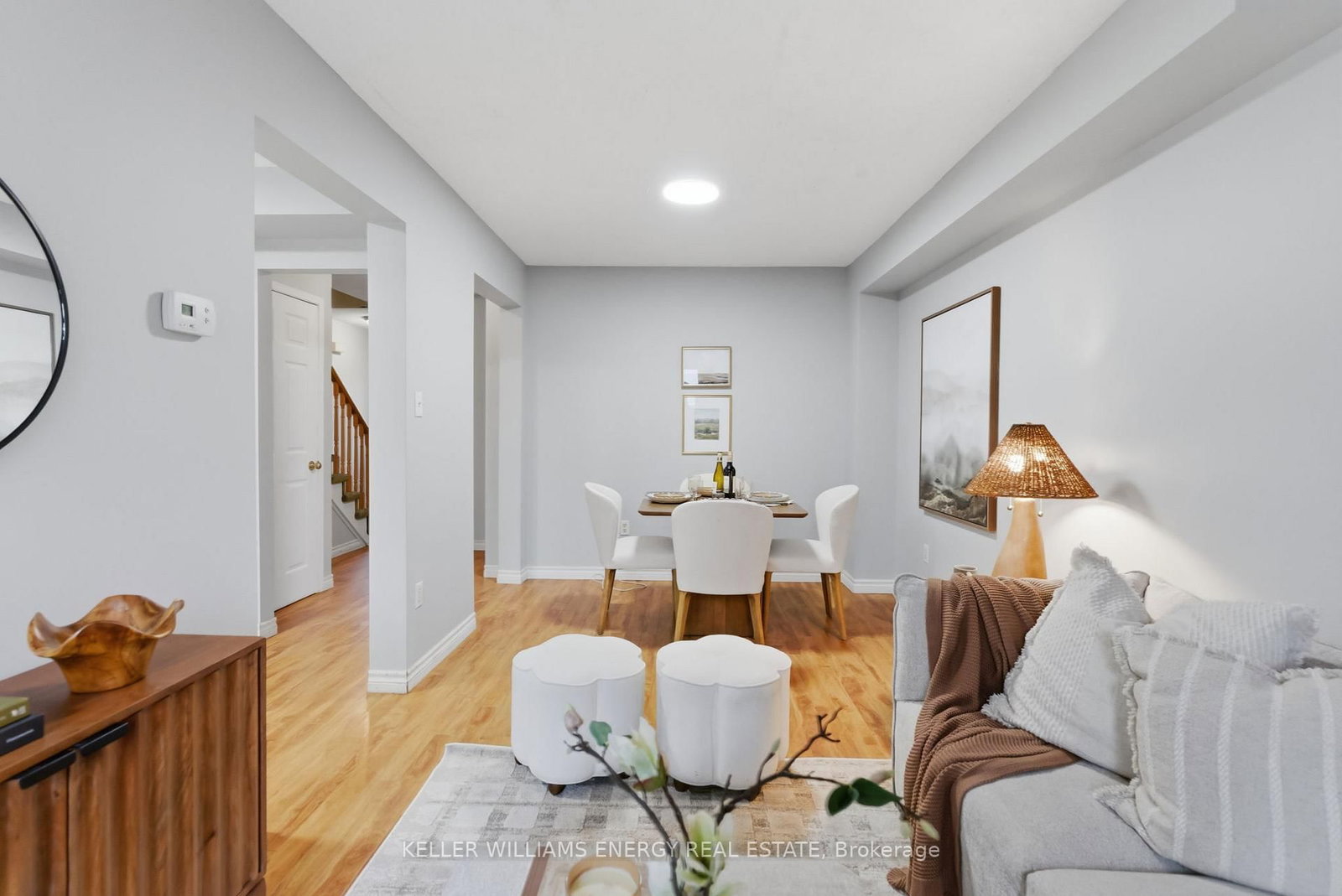 Perfectly situated at the end of a quiet court in one of Courtice's most sought-after neighbourhoods, this freehold townhome offers effortless, move-in-ready living. The 2-Storey on 37 Moulton Court has 3 bedrooms, 2 bathrooms, and is located on a 98.43 x 19.52 ft lot in the community of Courtice . The bright, open-concept main floor features a combined living and dining area with a convenient powder room, newer laminate flooring, and fresh paint throughout. Large windows fill the home with natural light, creating a warm and inviting atmosphere. The sun-filled kitchen is ideal for family meals and everyday living, with walkout access to a spacious deck and a private backyard oasis, perfect for entertaining. Upstairs, you'll find three well-designed bedrooms, including a generous primary retreat with laminate flooring, a double closet, and a semi-ensuite bath. The second level also features laminate flooring in the additional two bedrooms. The partially finished basement offers added living potential along with ample storage space. Located in a prime Courtice location overlooking beautiful pond views, you're just minutes to top-rated schools, parks, the community centre, shopping, and all essential amenities. Commuters will appreciate quick access to Hwy 418, 407, 401 and nearby public transit. Updated for style and comfort, this turnkey home is a rare opportunity in a family-friendly community-perfect for first-time buyers or anyone looking for a low-maintenance lifestyle in a desirable neighbourhood.