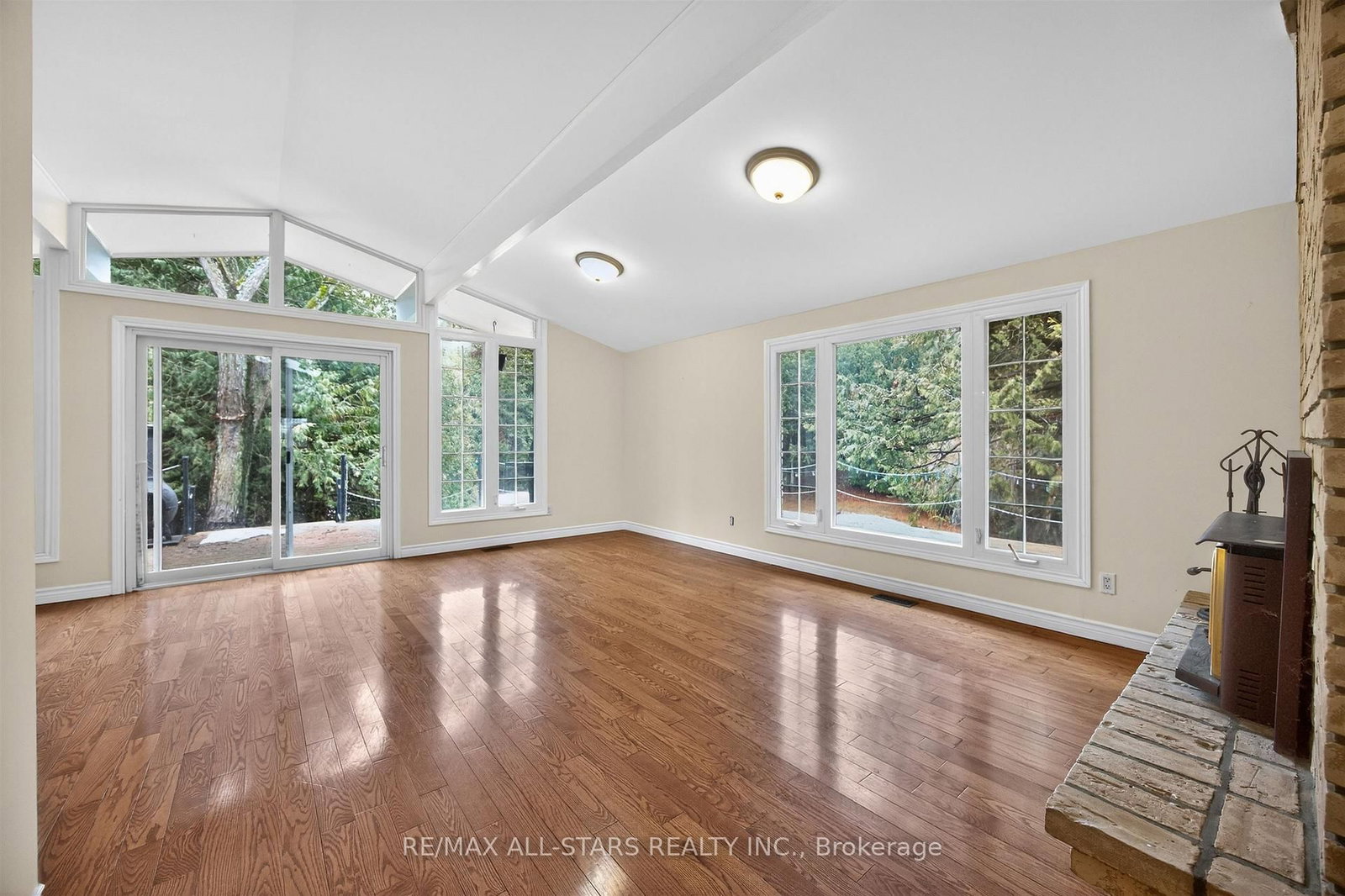 • Living Room: W/O To Deck, Vaulted Ceiling, Brick Fireplace