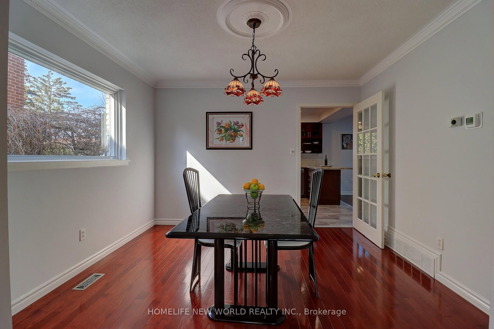 • Living Room: hardwood floor, Bay Window, Moulded Ceiling