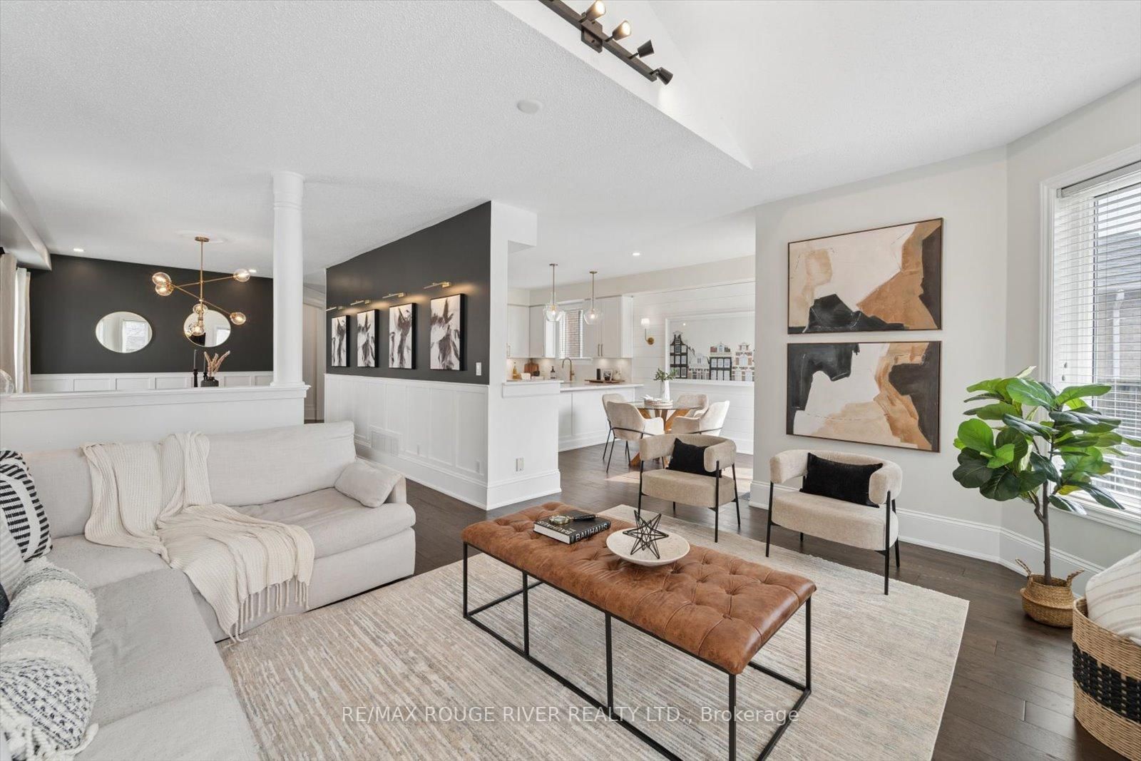 A rare blend of space, craftsmanship, and elevated finishes in the heart of Brooklin! Offering over 2,200 sqft plus a finished basement, a 3+1 bedroom layout and a home that truly stands apart. The 2-Storey on 184 Cachet Boulevard has 3 bedrooms, 3 bathrooms, and is located on a 109.42 x 39.24 ft lot in the community of Brooklin . The first thing you notice is the level of finish - wide plank hardwood floors, a striking hardwood staircase, detailed trim and mouldings and wood accent beams all coming together to create a space that feels elevated, warm, and undeniably refined. Stunning designer lighting carries throughout, adding a polished, high-end ambiance to every room.The main level is designed for both everyday living and effortless entertaining, with a spacious combined living and dining area that creates an ideal setting for hosting. Just beyond, the family room impresses with a vaulted ceiling that enhances light and scale, flowing seamlessly into the kitchen, where quartz countertops, a full-height backsplash, ample cabinetry, a dedicated desk area, and a built-in coffee station bring together style and function at the heart of the home. Upstairs, the primary suite offers a private retreat with a walk-in closet and ensuite. Two additional bedrooms are generously sized, including one with its own vaulted ceiling, while the open hallway and walkout to a balcony bring in natural light and architectural interest.The finished basement extends the living space with a dedicated media area, sleek wet bar, and a spacious office or optional fourth bedroom - ideal for guests or working from home. Freshly painted and enhanced throughout, the home feels cohesive and completely move-in ready. Main floor laundry and direct garage access add everyday convenience. Set in a sought-after, family-friendly neighbourhood close to parks, top-rated schools, and easy access to Highways 407 and 412. A home defined by craftsmanship, elevated design, and finishes rarely found at this level - offering a standard of living that truly stands apart.