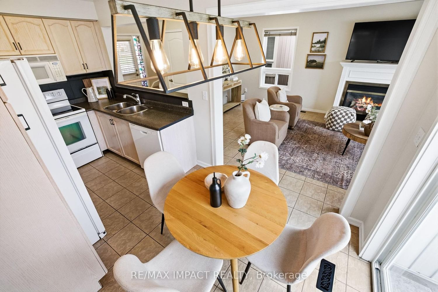 • Living Room: Combined W/Dining, Tile Floor, Gas Fireplace