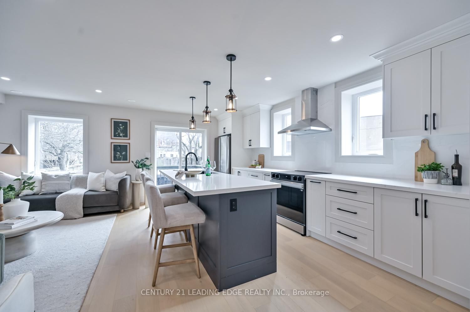 Exquisitely reimagined, this home has been completely rebuilt with the existing foundation, including a full second storey addition and a legal basement apartment with a private entrance, offering a rare blend of luxury living and exceptional investment potential. The 2-Storey on 227 Warden Avenue has 3 bedrooms, 4 bathrooms, and is located on a 113.45 x 49.49 ft lot in the community of Birchcliffe-Cliffside . Ideal for multi generational living or generating rental income, this residence showcases high end craftsmanship and upscale finishes throughout. The main level is designed for elegant living and entertaining, featuring a sun filled dining room with gleaming hardwood and a large window. The stunning open concept kitchen and family room features an electric fireplace, pot lights, sleek custom cabinetry and a large island with breakfast bar making the space both stylish and functional. A powder room and lots of closet storage complete the main floor. The wood staircase leads to the second floor, where you'll find three bedrooms, including the primary suite featuring a three-piece ensuite and a walk-in closet. The remaining two bedrooms share an additional bathroom and a separate laundry adds convenience. The self contained lower level apartment features a private side entrance, open concept living and kitchen area with breakfast bar, two bright bedrooms, a three piece bath, and separate laundry. The exterior of the home is equally impressive with a modern stucco finish, a welcoming front porch with modern aluminum railings, a rear porch with steps leading down to the yard and and expansive stone patio that's perfect for hosting family get togethers. Private parking can accommodate 2 or more vehicles. This never lived in home is a short walk to Crescentwood park overlooking the bluffs. Local amenities are just steps away. Get ready to enjoy this gem of a home.