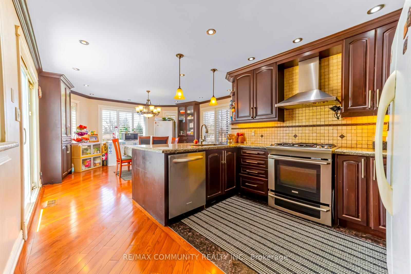 • Family Room: hardwood floor, Fireplace, Pot Lights