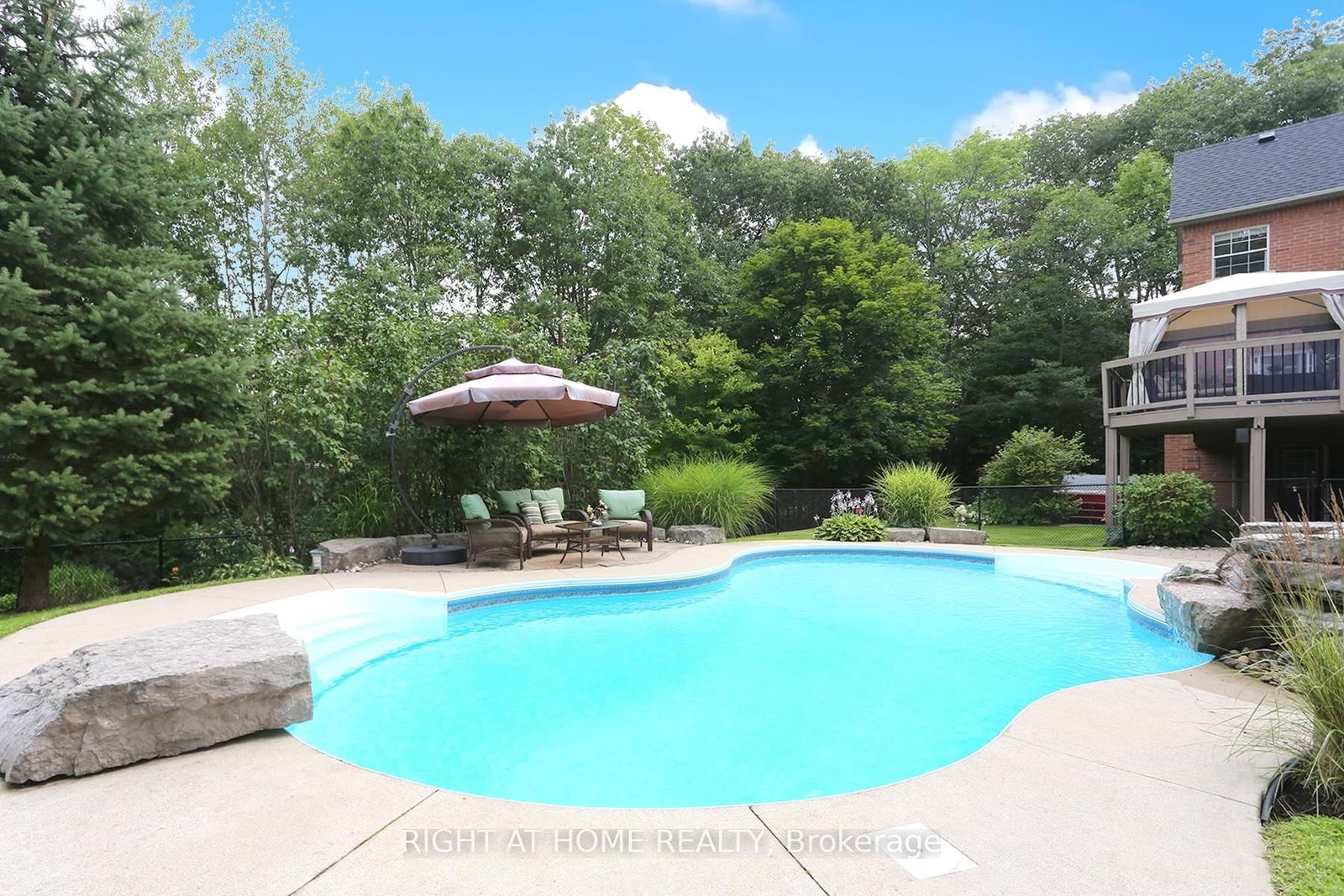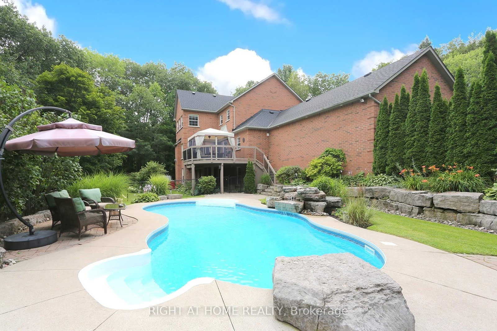 Incredible setting in the highly sought after FOXFIRE ESTATES just south of Uxbridge. The 2-Storey on 2 Oakview Place has 4 bedrooms, 4 bathrooms, and is located on 2-4.99 acres in the community of Rural Uxbridge . Welcome to your dream backyard, complete with saltwater pool, waterfall, hot tub and lower level leisure space. Walk out from two levels, seamlessly connecting the indoors into the backyard retreat, enhancing the flow of this exceptional home. Classically designed estate home blends timeless elegance with resort-style amenities. 4 bedroom, 4 bathroom (with 2 ensuites), 2 gas fireplaces, a formal dining room, separate living and family rooms, and also a separate office. Eat-in kitchen with pantry, breakfast bar, stainless steel appliances, and main floor laundry. There are 2 convenient front entrances, with the main entrance opening into a large foyer. A very spacious full walkout unfinished basement provides abundant natural light. The tranquil country porch spans the entire front of the house. A generous back deck with a charming gazebo overlooks the pool, and is perfect for entertaining, with gas BBQ hook-ups on both levels. Don't forget the private forested area for outdoor adventures. This home features extensive landscaping with several perennial gardens, beautifully maintained to be an entertainers paradise, and private sanctuary, all in one!