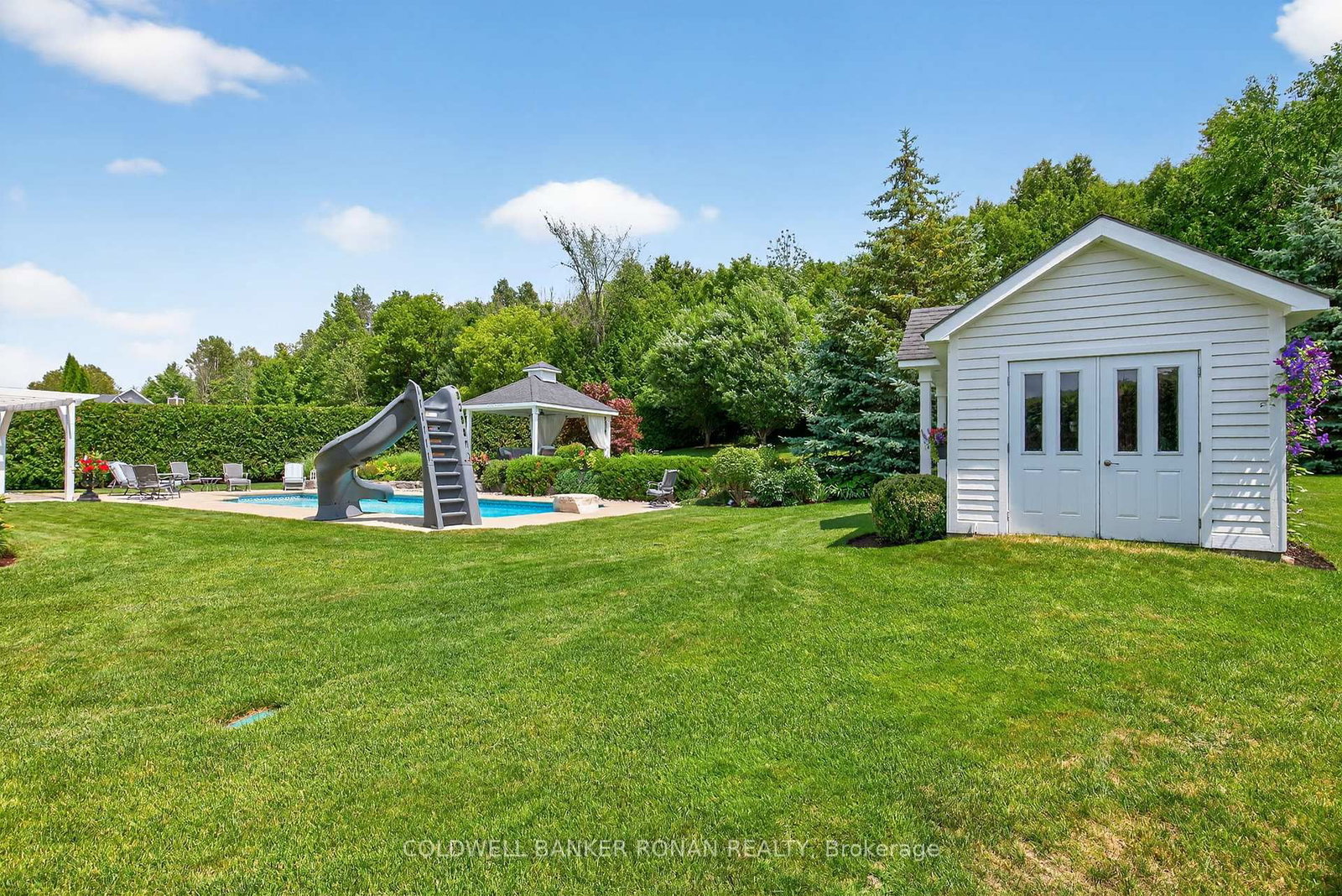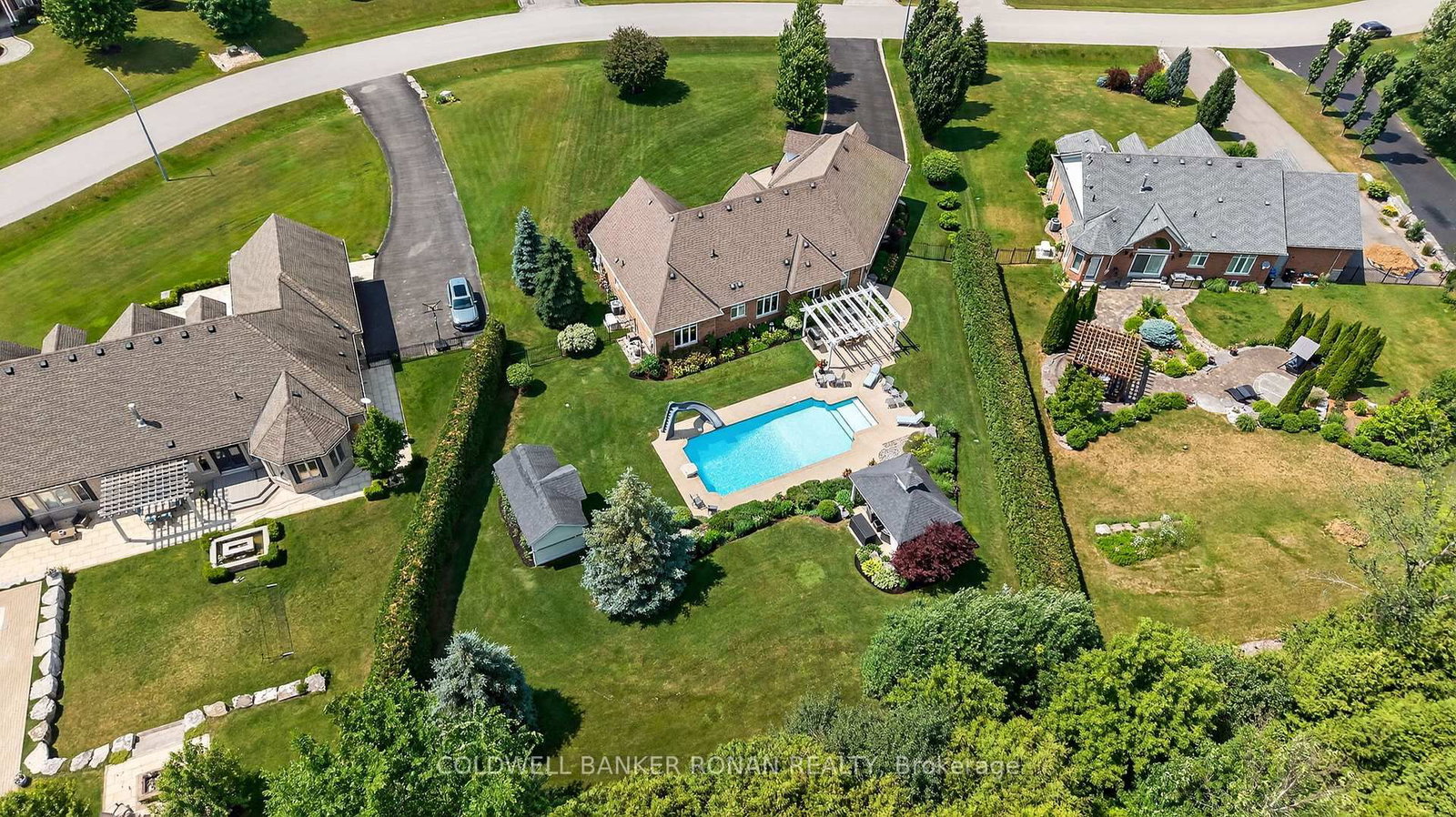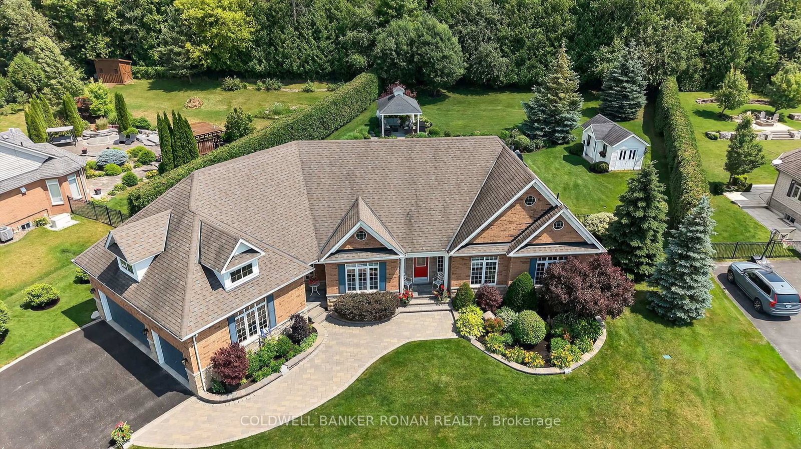 Welcome to Ridgehill Estates, located in Alliston, Ontario, where homes are rarely offered for sale. The Bungalow on 32 Underhill Court has 3 bedrooms, 4 bathrooms, and is located on a 289.73 x 124.57 ft lot in the community of Alliston . Just 45 minutes to the GTA, Alliston provides for tranquil living with all the amenities. Situated on just shy of an acre, this all brick & stone bungalow boasts luxury, elegance & beauty beginning at the tree-lined driveway that can accommodate many vehicles & boasts the most serene and completely private backyard oasis, surrounded by beautiful perennial gardens & offers an in-ground salt water pool, an elevated gazebo, a cabana/gardening shed & dining pergola. Fully fenced with privacy hedge plus in-ground sprinklers. The main floor of this bungalow has been completely renovated with high end finishes & lighting, including stunning kitchen with porcelain counters, an expansive eat at island, pantry, formal dining room with coffered ceiling, a cozy family room, a front living room /office, all three bathroom makeovers are a must see, upscale main floor laundry & mudroom off the 3 car garage & hardwood & beautiful modern porcelain tile flow throughout this sprawling 2382 sq ft home. On the lower level, you'll find another 2382 sq ft, with about half finished with an amazing rec room with kitchenette & bathroom, leaving plenty of room for a media room & nanny/in-law suite should you desire & is equipped with a backup generator. This lovely neighbourhood has 26.7 acres owned by the community & features many kilometres of exclusive forested walking trails & a social committee that organizes fun events throughout the year. Located just outside Alliston & only 10 min to Hwy 400. Award-winning golf is 5 min away, & ski hills & beaches are just a short drive. Perfectly suited for retirees or a young family looking to grow.