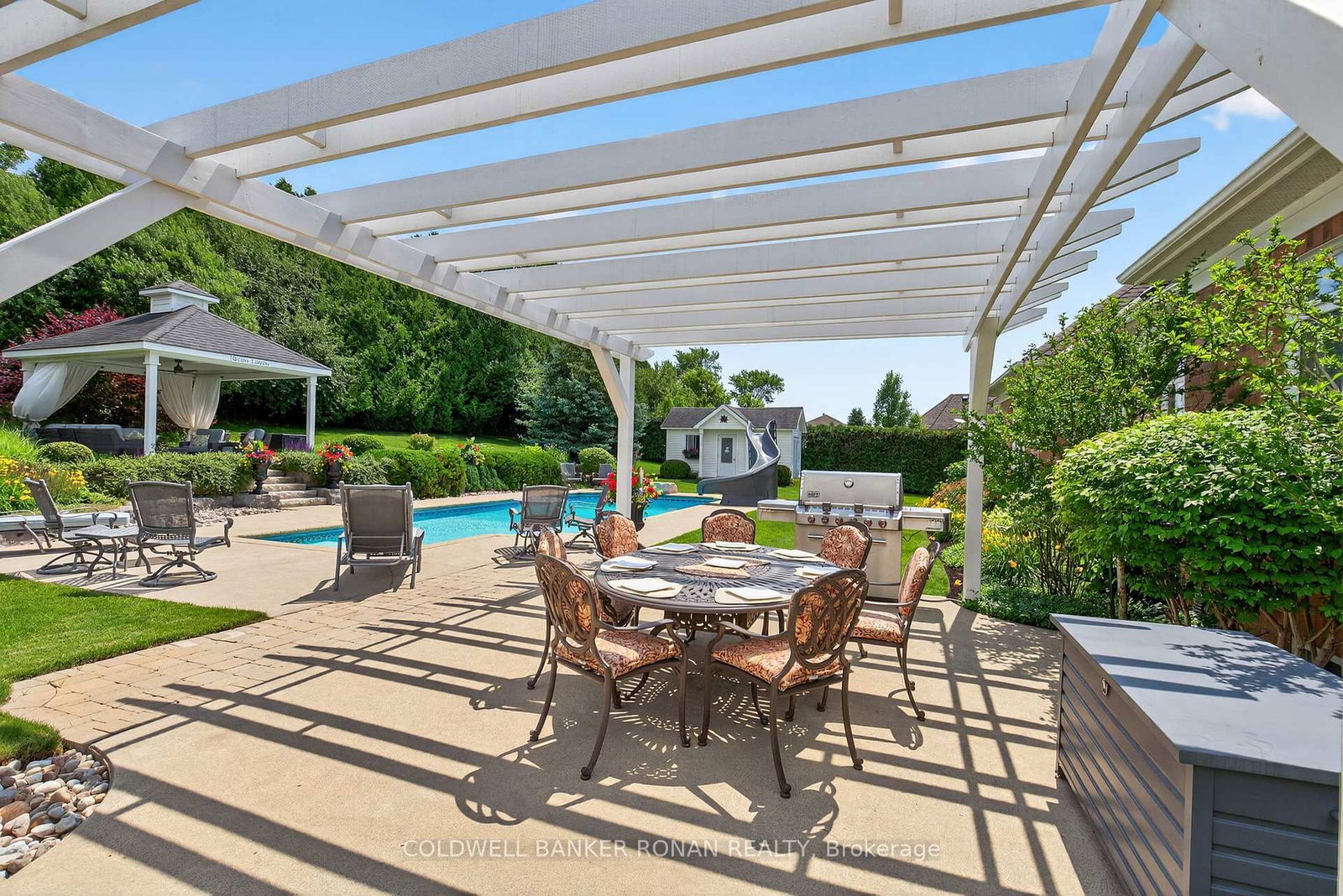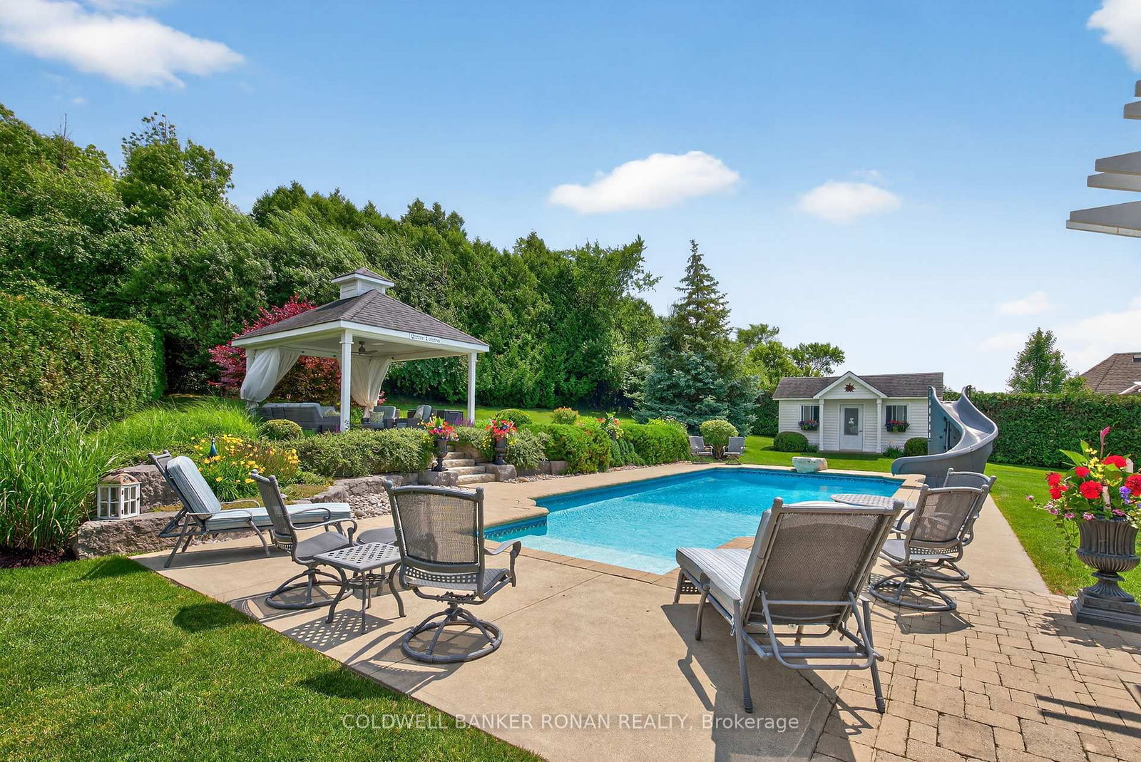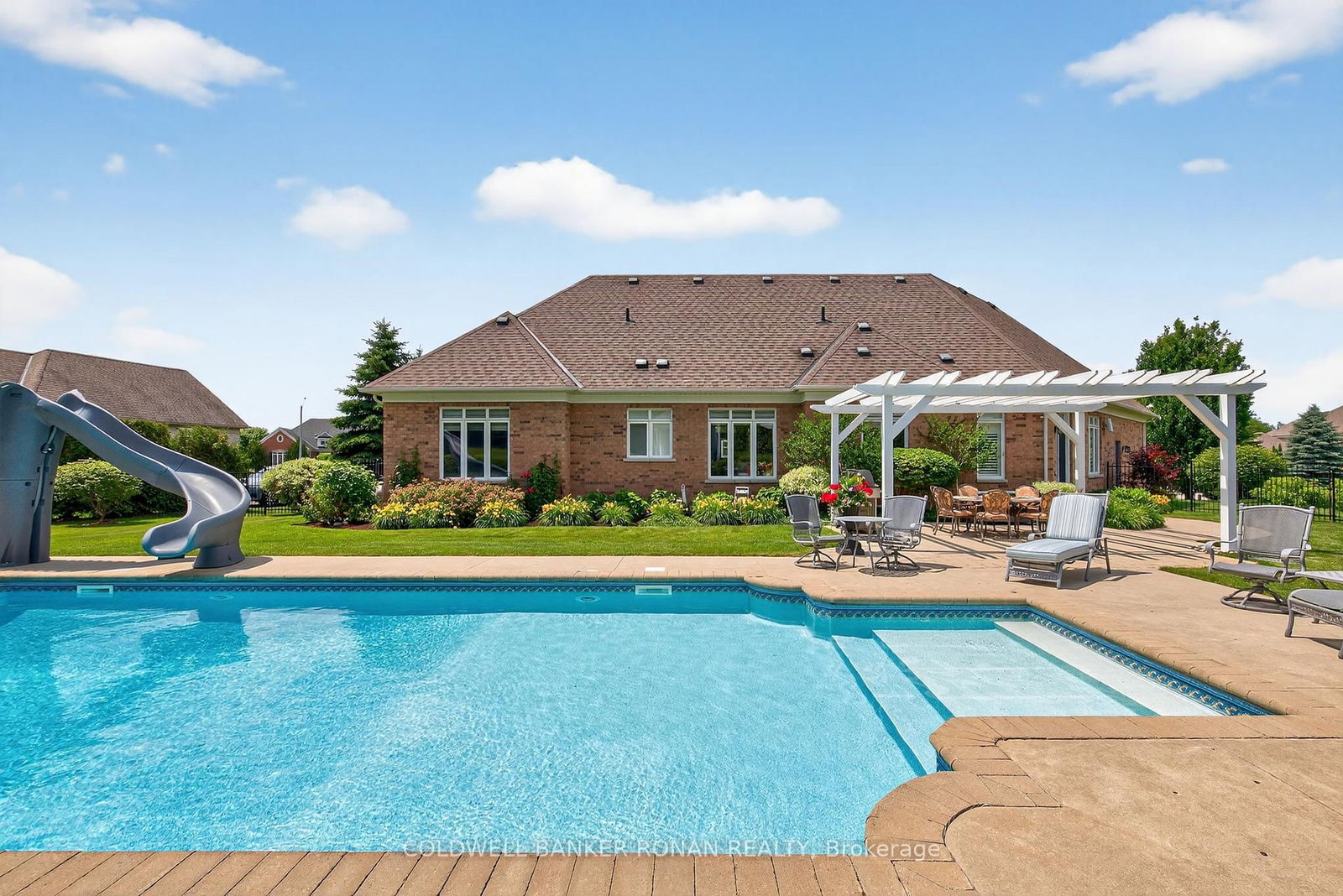Welcome to Ridgehill Estates, located in Alliston, Ontario, where homes are rarely offered for sale. The Bungalow on 32 Underhill Court has 3 bedrooms, 4 bathrooms, and is located on a 289.73 x 124.57 ft lot in the community of Alliston . Just 45 minutes to the GTA, Alliston provides for tranquil living with all the amenities. Situated on just shy of an acre, this all brick & stone bungalow boasts luxury, elegance & beauty beginning at the tree-lined driveway that can accommodate many vehicles & boasts the most serene and completely private backyard oasis, surrounded by beautiful perennial gardens & offers an in-ground salt water pool, an elevated gazebo, a cabana/gardening shed & dining pergola. Fully fenced with privacy hedge plus in-ground sprinklers. The main floor of this bungalow has been completely renovated with high end finishes & lighting, including stunning kitchen with porcelain counters, an expansive eat at island, pantry, formal dining room with coffered ceiling, a cozy family room, a front living room /office, all three bathroom makeovers are a must see, upscale main floor laundry & mudroom off the 3 car garage & hardwood & beautiful modern porcelain tile flow throughout this sprawling 2382 sq ft home. On the lower level, you'll find another 2382 sq ft, with about half finished with an amazing rec room with kitchenette & bathroom, leaving plenty of room for a media room & nanny/in-law suite should you desire & is equipped with a backup generator. This lovely neighbourhood has 26.7 acres owned by the community & features many kilometres of exclusive forested walking trails & a social committee that organizes fun events throughout the year. Located just outside Alliston & only 10 min to Hwy 400. Award-winning golf is 5 min away, & ski hills & beaches are just a short drive. Perfectly suited for retirees or a young family looking to grow.
