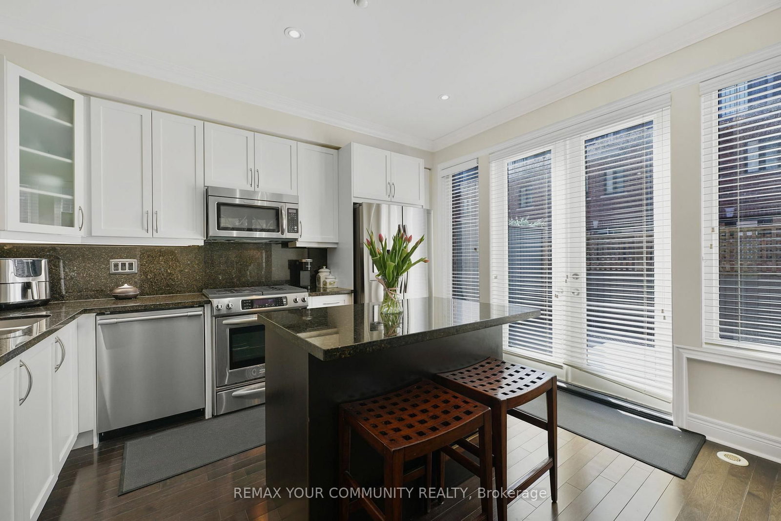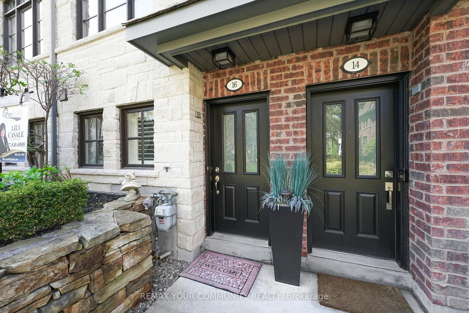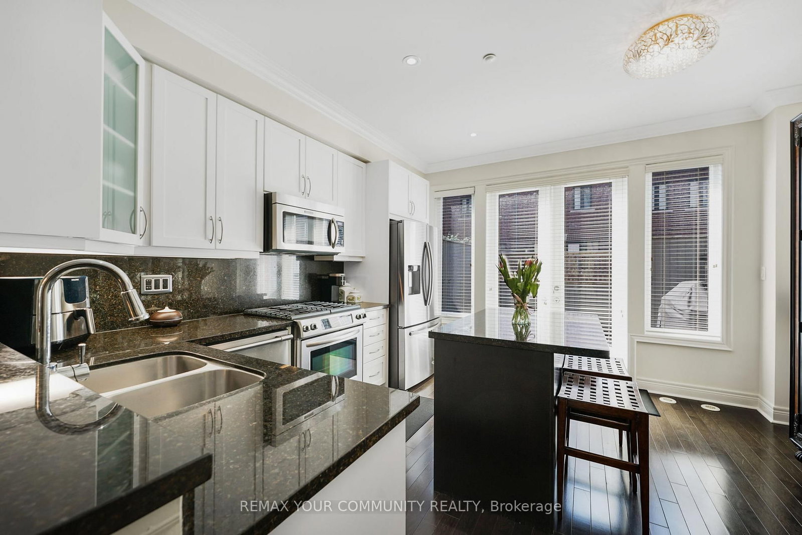 Riverside Luxury Townhouse for Sale. The 3-Storey on 16 Agar Lane has 3 bedrooms, 3 bathrooms, and is located in the community of West Woodbridge . Welcome to a peaceful luxury townhouse community in matured Woodbridge, surround by Market Lane Shops, Restaurants, Supermarkets, Public Transit, easy access to HWY 27, 427, 407 and 50. A premium lot, facing a quiet private community park. It provides a save, elegant, spacious and economical life-style-living, with security monitored, concealed ceiling fire-sprinklers throughout and an oversized indoor two-car tandem garage with generous storage space. Rich wood floors and stairs with 9ft ceilings and crow-moldings are throughout the home. The entry-level floor has heated ceramic floors, one washroom and a spacious den with large wood shutter windows facing the private park area - ideal for office, exercise or bedroom use. The primary floor level has an open-concept layout with large windows facing the private park. A gas fireplace with stone-facing enriches has spacious living and dining area. The Kitchen has generous cabinet storage and a pantry. Granite countertops, including the kitchen island has generous cabinet storage and a pantry. Granite countertops, including the kitchen island with additional storage space. The refrigerator, dishwasher and gas-stove are stainless steel, and large size microwave. Double French doors exit's the kitchen into a spacious private outdoor patio balcony. The secondary floor level has 2 spacious bedrooms, one with wall-to-wall windows for a breathtaking view of the community private park. A full bathroom services the floor level, along with the laundry room with ample storage space. The grand master bedroom has a walk-out balcony, a custom-built walk-in closet and a large spa-like 5 pcs ensuite with double-sink and a jacuzzi.