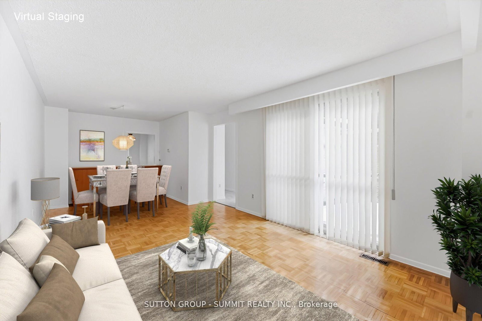 • Living Room: Combined W/Dining, Sliding Doors, Parquet Floor