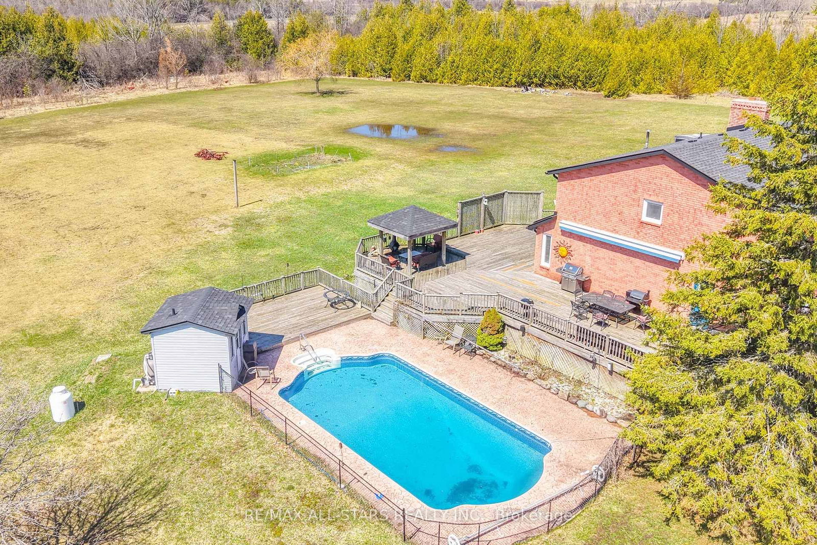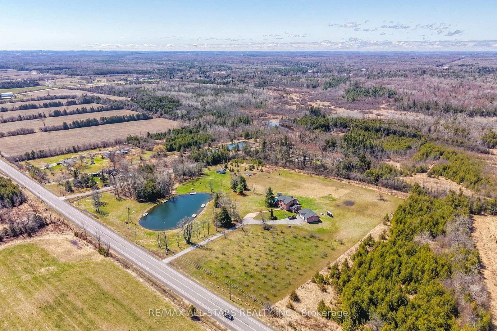 A rare and exceptional offering set on 10 picturesque acres, this country estate combines privacy, functionality, and resort-style living. The 2-Storey on 25472 Lakeridge Road has 4 bedrooms, 4 bathrooms, and is located on a 659.96 x 660.57 ft loton 10-24.99 acres in the community of Pefferlaw . Featuring a beautiful, clean pond stocked with fish (approx 18' deep), complete with a water aerator, a floating dock, windmill and charming apple orchard, this property offers a serene setting just minutes from town. A long paved driveway leads to the custom-built home, complemented by a detached 3-car garage with hydro and a separate second driveway providing access to the bunkie/workshop also equipped with hydro-ideal for hobbyists, guests, or additional workspace. The home offers 4+1 bedrooms, perfect for family living & entertaining. The updated kitchen features granite countertops, a centre island, and a walkout to the deck overlooking the private yard. Step outside to your own outdoor oasis with a heated inground pool, pool house, gazebo, and automatic awning-perfect for relaxing or hosting. Inside, enjoy both an eat-in kitchen and a separate formal dining room with French doors. The cozy family rm is anchored by a wood-burning fireplace, while convenient main floor bedroom offers a 3 pc bathroom, direct access to the basement and side yard-ideal for in-law potential or home office use. A main flr laundry rm with walkout to the deck adds everyday convenience. Upstairs, an oak staircase leads to three generously sized bedrooms. The primary suite features hardwood floors, walk-in closet, and an updated 5-piece ensuite with heated floors and a large glass shower. The fin basement expands your living space with a rec room, games, pellet stove, additional bedroom, rough-in for a 3-piece bath, and cold cellar. Pond has been licensed by the ministry of natural resources to qualify as a fish out pond for species of trout and bass. License is transferable. If buyer had desire to market and tend to this business, it could be quite profitable. Assistance regarding the basics could be taught to new owner by current owner.