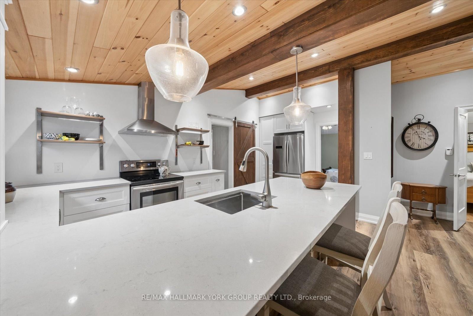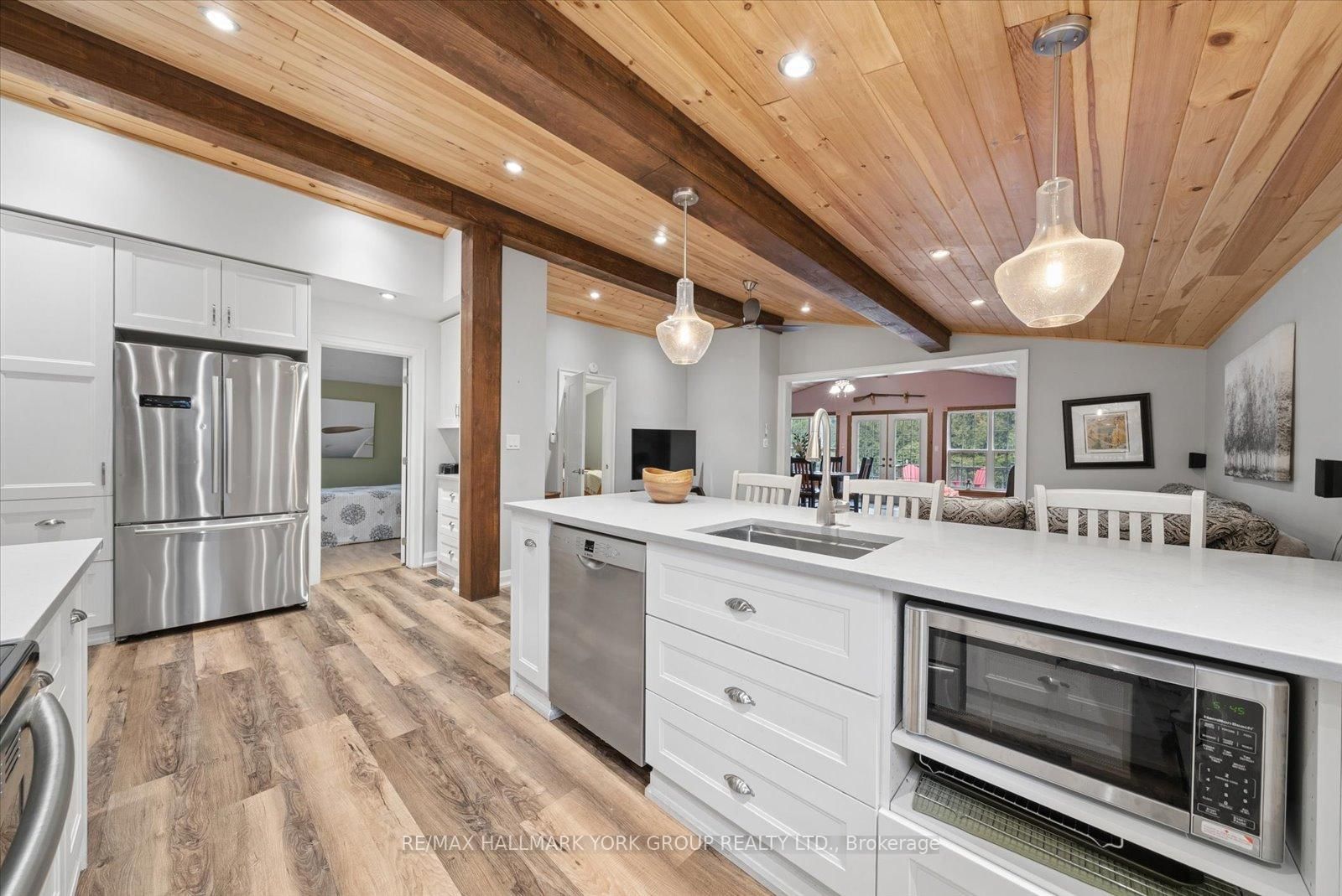 Welcome to this stunning, move-in ready 2-bedroom bungalow, ideally located on a quiet no-exit street with deeded beach access. The Bungalow on 836 Crescent Beach Road has 2 bedrooms, 1 bathrooms, and is located on a 183.25 x 50 ft lot in the community of Historic Lakeshore Communities . Situated on a large 50' x 183' fully hedged lot, this property offers exceptional privacy and a serene outdoor setting. The home features impressive high beamed cathedral ceilings and hardwood floors throughout the main living area, creating a bright and airy atmosphere. The renovated centre island kitchen is both stylish and functional, complete with a breakfast bar, stainless steel appliances, quartz countertops and open sightlines to the family room-also showcasing soaring cathedral ceilings. Enjoy outdoor living on the covered deck overlooking the private backyard, perfect for relaxing or entertaining. Additional highlights include a one-car garage with convenient walk-through access to the home. Located close to all amenities, including schools, parks, transit and shopping, this home combines comfort, style, and an unbeatable location.