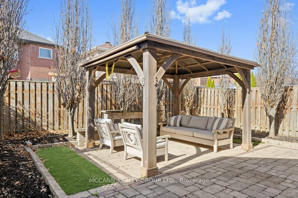 An absolutely stunning, updated family home nestled on a quiet crescent in Maple, showcasing tasteful high-end finishes throughout. The 2-Storey on 75 Shetland Crescent has 3 bedrooms, 4 bathrooms, and is located on a 98.12 x 29.54 ft lot in the community of Maple . Features include engineered hardwood flooring, crown moulding, upgraded trim + baseboards, elegant doors + hardware, and pot lights throughout the home.The spacious gourmet kitchen is an entertainer's dream, complete with newer stainless steel appliances, a centre island, and a bright eat-in area. It walks out to a beautifully landscaped, professionally finished private backyard oasis featuring a gazebo, elegant interlocking patio, and lush gardens. The kitchen flows seamlessly into a generously sized family room highlighted by a beautiful gas fireplace. Ascend the elegant hardwood staircase with upgraded pickets to the second level, offering three spacious bedrooms. The primary suite features built-in closets and a beautifully renovated 4-piece ensuite with heated flooring. The main shared bath has also been tastefully updated with marble finishes, including the shower, flooring, and countertop.The fully renovated lower level offers additional living space with durable vinyl flooring and a cozy electric fireplace that is perfect for relaxing or entertaining. Ideally located near the GO Station in the highly sought after Maple community, this home is close to schools, shopping, restaurants, the library, Maple Community Centre, and Highway 400. This home is truly turnkey, move in ready and one you won't want to miss.