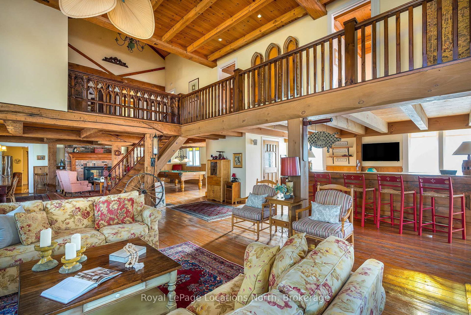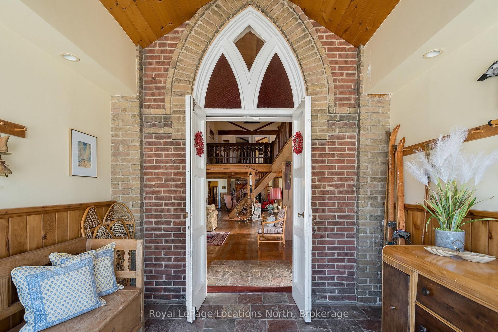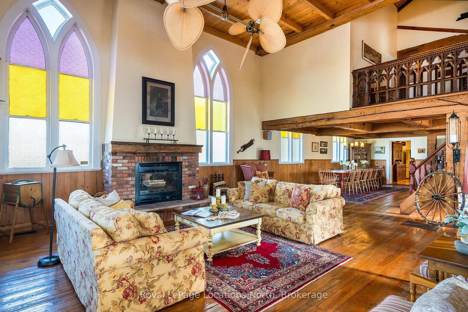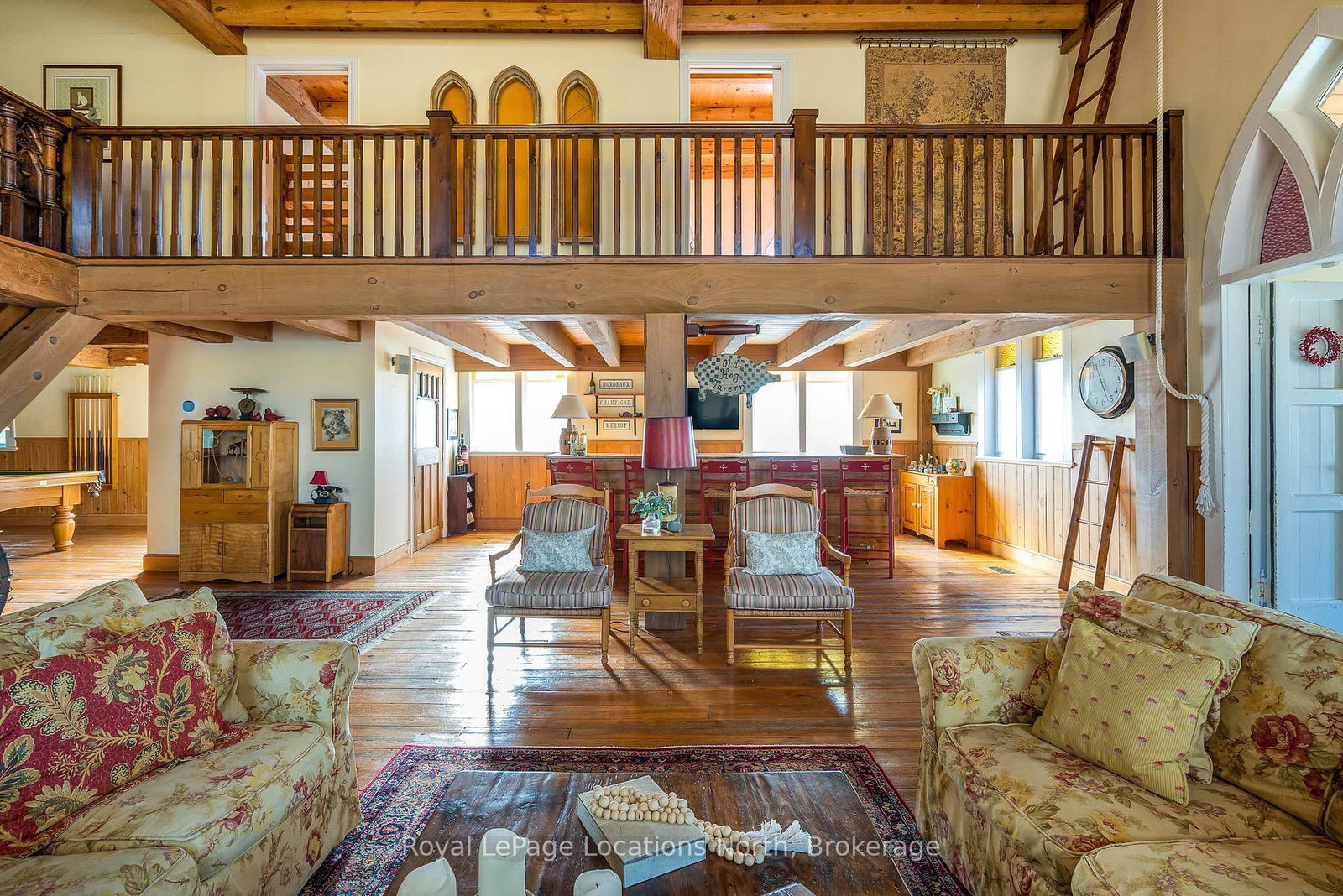 When you step inside this unique, renovated 1897 church, you can't help but imagine the fabulous holidays your family and friends would enjoy here. The 2-Storey on 4177 County Road 124 Road has 5 bedrooms, 2 bathrooms, and is located on a 165 x 66 ft loton < .50 acres in the community of Nottawa . On the main street of the charming village of Nottawa, this is a home meant for gathering. This rare opportunity is absolutely full of thoughtful touches and decor lavished on it by its current owners, and all those touches are included in the sale. Furnishings, linens, rugs, art, lamps, antiques, even the dishes, all come with the house so moving in will be easy. Your family will enjoy the restful and restorative atmosphere of the main floor with the soft light of stained glass. The sprawling living space under post and beam cathedral ceilings has a chalet like feel. It features a primary seating area in front of a wood burning fireplace with a wonderful long and welcoming bar for entertaining. The bar itself was recovered from an old general store. An adjoining space houses another seating area in front of a gas fireplace and a large billiards table. The dining table seats 14 so no card tables will be necessary. Each space is wide open yet beautifully defined with a combination of historic details and new improvements. You will have room for all your guests in the five upstairs bedrooms, all stylishly decorated and all enjoying the comforting glow of stained glass windows.The main floor den has a pull out sofa bed and an ensuite bathroom for additional sleeping quarters. It is a home to wander in, explore, and bask in its warmth and coziness. Outside, a large backyard deck allows space for an oversized bbq and an enormous hot tub, all under a beautiful canopy of mature trees. Multiple sheds for storage and potting make maintenance easy -- and even the garden equipment is included.