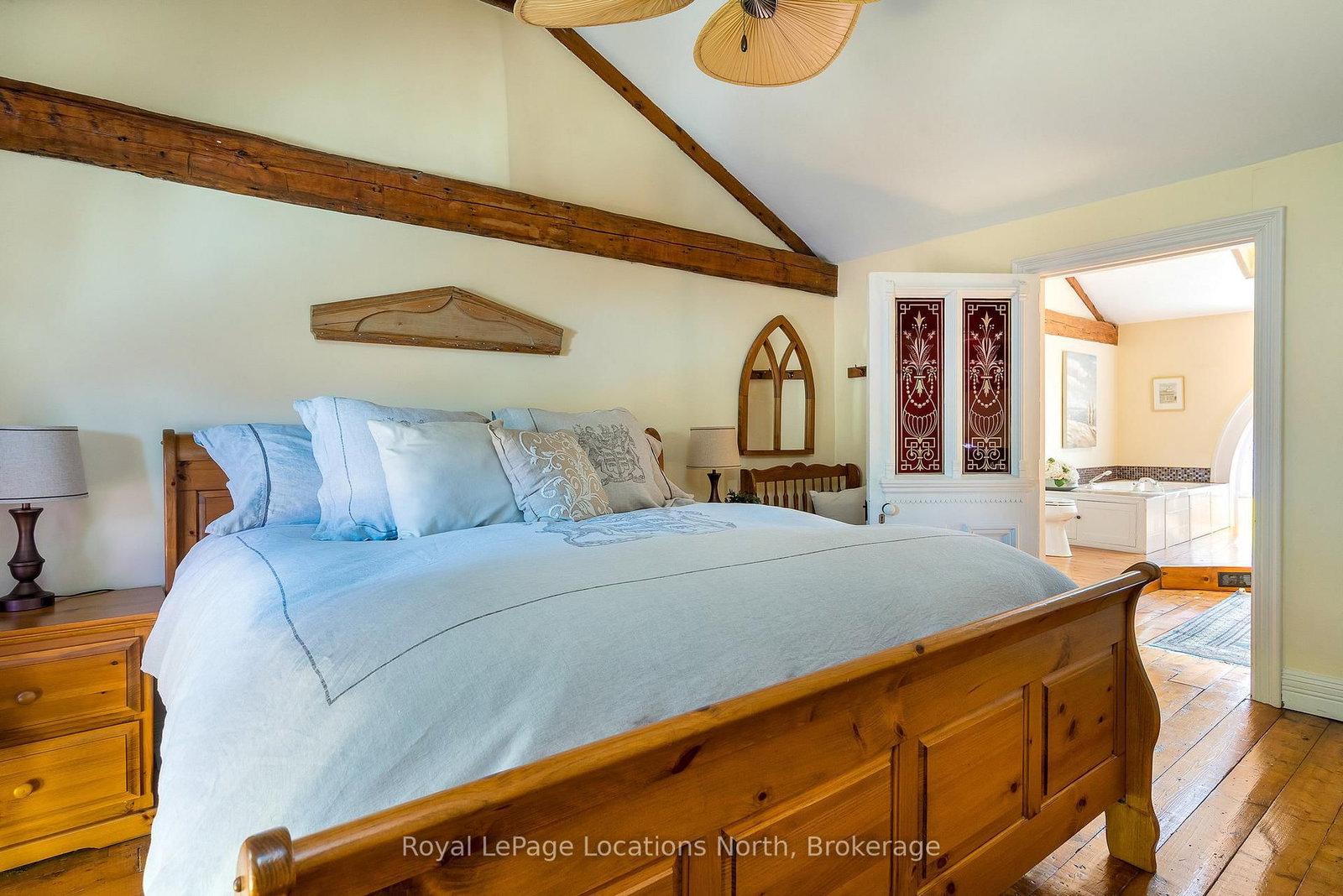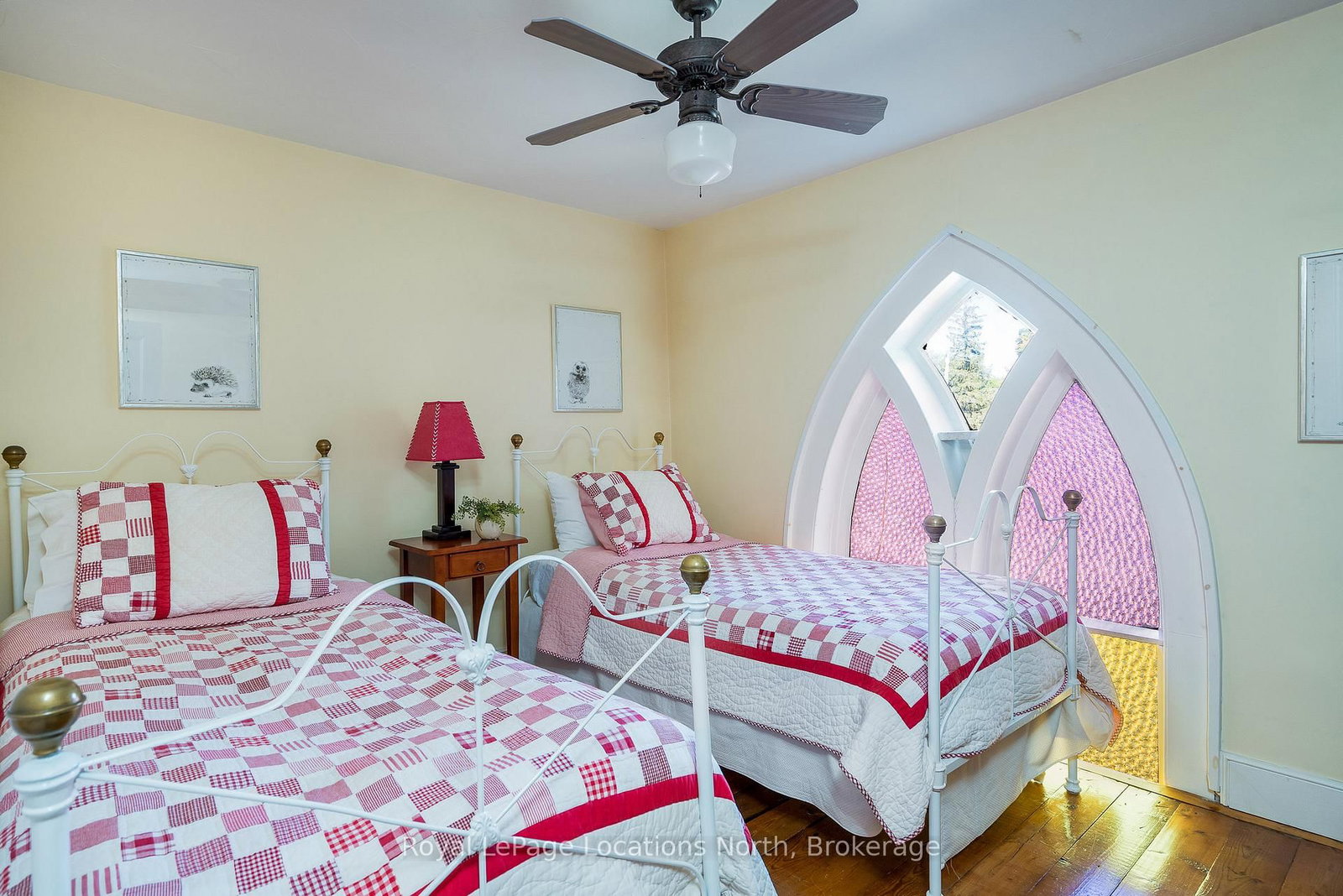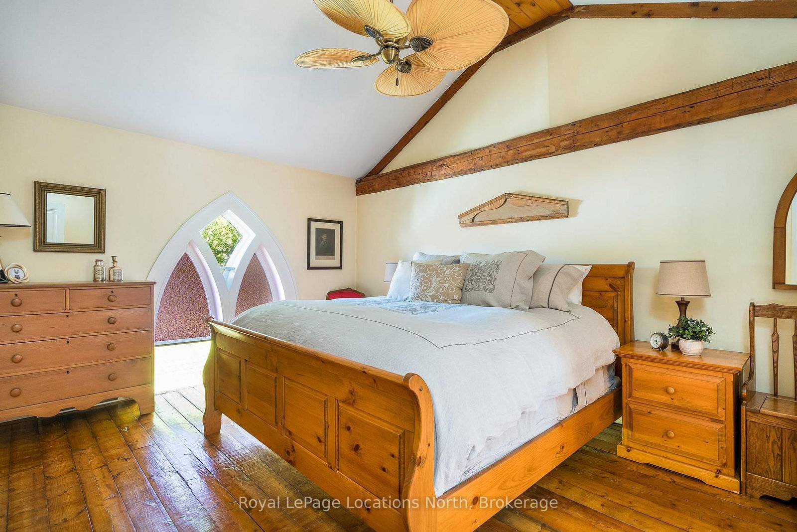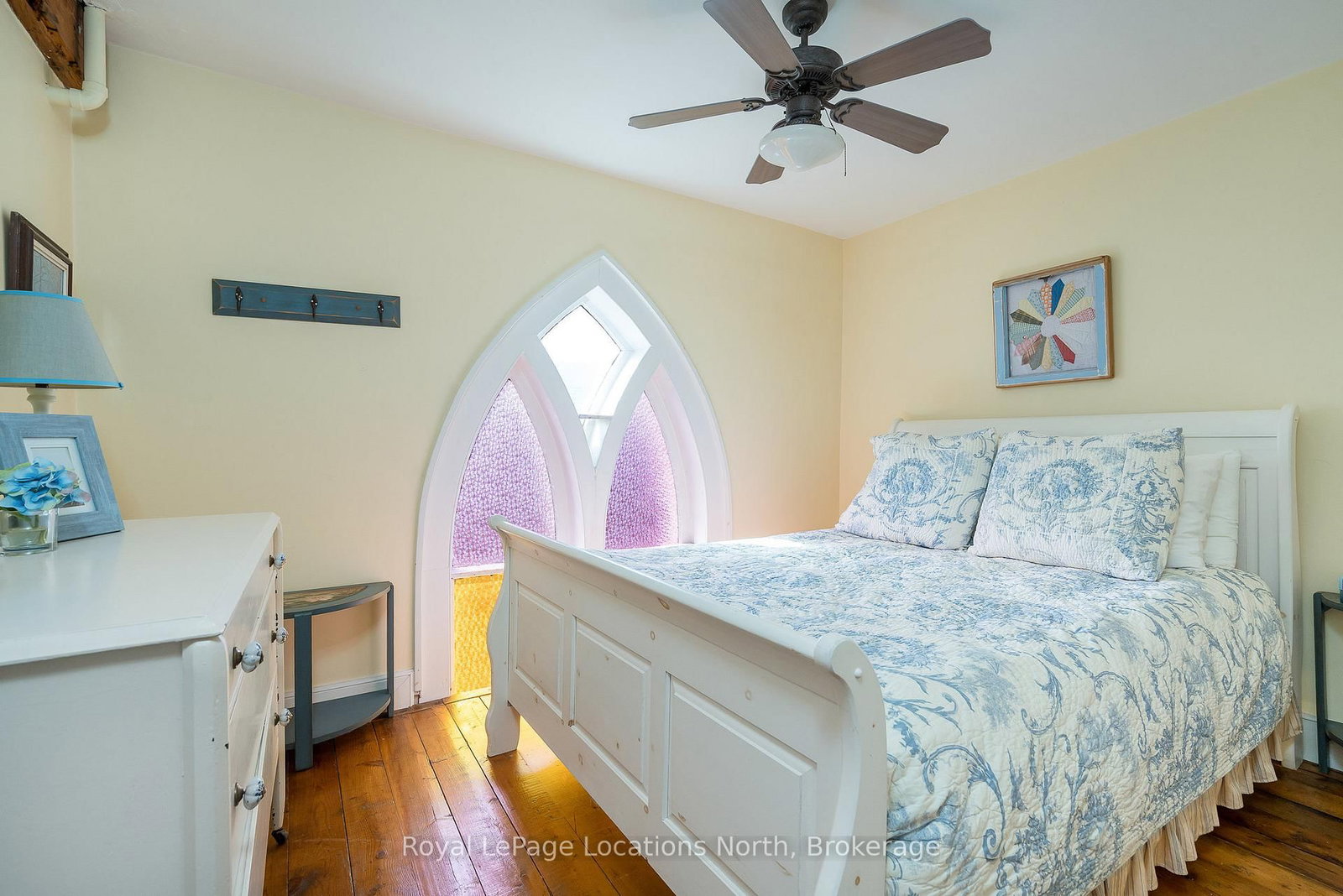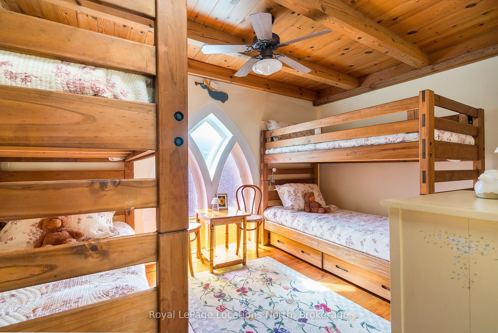 When you step inside this unique, renovated 1897 church, you can't help but imagine the fabulous holidays your family and friends would enjoy here. The 2-Storey on 4177 County Road 124 Road has 5 bedrooms, 2 bathrooms, and is located on a 165 x 66 ft loton < .50 acres in the community of Nottawa . On the main street of the charming village of Nottawa, this is a home meant for gathering. This rare opportunity is absolutely full of thoughtful touches and decor lavished on it by its current owners, and all those touches are included in the sale. Furnishings, linens, rugs, art, lamps, antiques, even the dishes, all come with the house so moving in will be easy. Your family will enjoy the restful and restorative atmosphere of the main floor with the soft light of stained glass. The sprawling living space under post and beam cathedral ceilings has a chalet like feel. It features a primary seating area in front of a wood burning fireplace with a wonderful long and welcoming bar for entertaining. The bar itself was recovered from an old general store. An adjoining space houses another seating area in front of a gas fireplace and a large billiards table. The dining table seats 14 so no card tables will be necessary. Each space is wide open yet beautifully defined with a combination of historic details and new improvements. You will have room for all your guests in the five upstairs bedrooms, all stylishly decorated and all enjoying the comforting glow of stained glass windows.The main floor den has a pull out sofa bed and an ensuite bathroom for additional sleeping quarters. It is a home to wander in, explore, and bask in its warmth and coziness. Outside, a large backyard deck allows space for an oversized bbq and an enormous hot tub, all under a beautiful canopy of mature trees. Multiple sheds for storage and potting make maintenance easy -- and even the garden equipment is included.