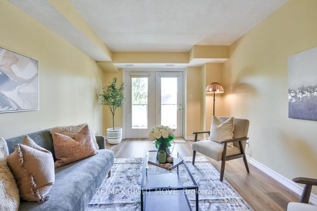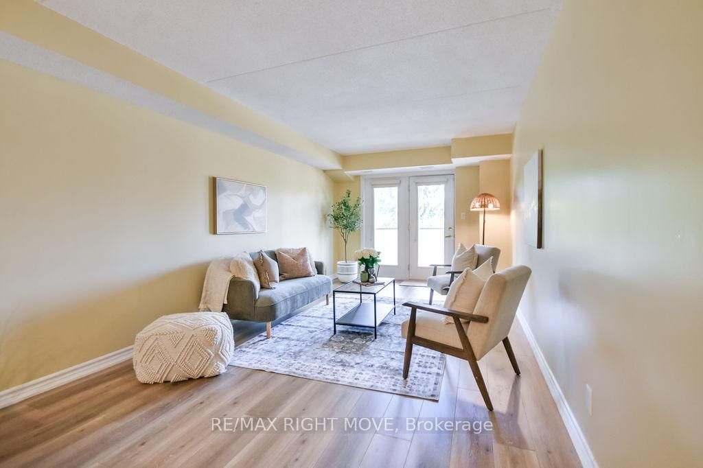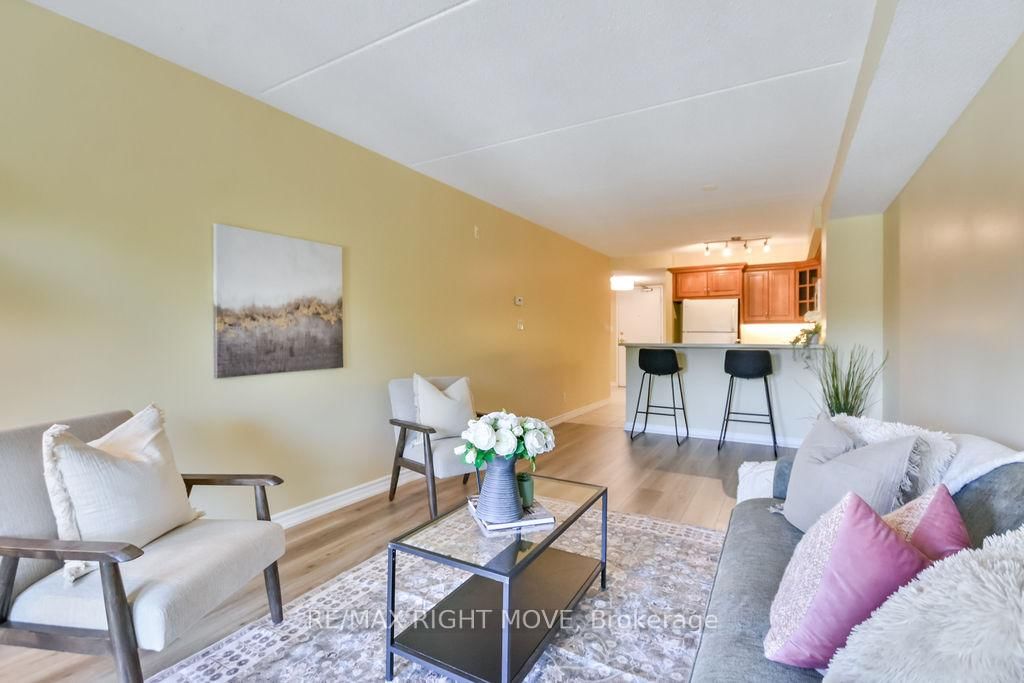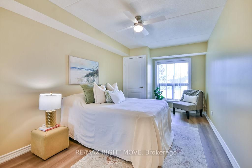 Welcome to a highly sought-after condominium community nestled in Orillia's desirable North Ward, Maple Arbour. The 1 Storey/Apt on 313-486 Laclie Street has 2 bedrooms, 2 bathrooms, and is located in the community of Orillia . This quiet, pet-friendly community offers a perfect blend of comfort, convenience, and connection close to golf courses, trails, parks, shopping, and beautiful Lake Couchiching. This bright, open-concept 2-bedroom plus separate dining room or den, 2-bathroom condo offers approximately 1,230 sq. ft. of thoughtfully designed living space featuring new flooring, updated light fixtures, and neutral paint throughout. The spacious layout includes a separate dining area, kitchen with breakfast bar, and a comfortable living room that opens onto a private balcony. The primary bedroom features a walk-in closet and 3-piece ensuite, while in-suite laundry adds everyday convenience. Residents enjoy access to well-maintained common areas ideal for socializing and hosting gatherings, as well as one outdoor parking space. Whether you're downsizing or seeking low-maintenance living in a welcoming community, Maple Arbour offers the lifestyle you've been looking for. This is a turn key property and ready for you to enjoy.