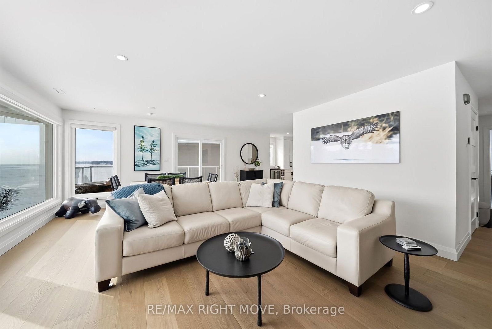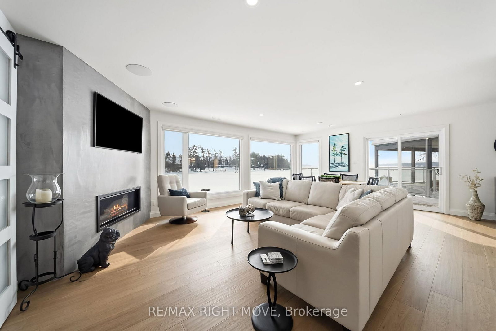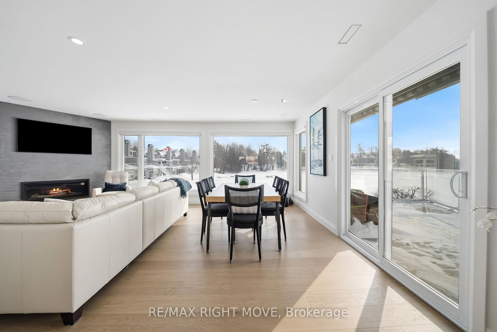 Spectacularly remodelled and exceptionally well finished, this waterfront condominium offers approximately 1,460 square feet of refined living space with breathtaking views of Lake Simcoe from the principal rooms. The Bungalow on 205-585 Atherley Road has 2 bedrooms, 2 bathrooms, and is located in the community of Orillia . Extensive renovations were completed in 2023 with careful attention to both function and design, resulting in one of the nicest condominium offerings in Orillia. The kitchen, living, and dining areas are all oriented toward the water, allowing the views to remain the focal point of the home, while a private balcony provides an ideal place to relax and enjoy the lakefront setting.The custom kitchen is both stylish and functional, complemented by quality appliances and a layout well suited for entertaining. The living area features a gas fireplace and in ceiling speakers, creating a comfortable and inviting atmosphere. One of the bedrooms is currently set up as a media room and has been designed specifically for movie nights, while still offering flexibility for other uses. The primary bedroom enjoys a peaceful outlook and custom window coverings. Engineered hardwood flooring, ceramic tile in key areas, custom closets, updated lighting, doors, trim, and hardware reflect the level of care taken throughout the unit. Residents enjoy access to a lakeside pool, spa area with sauna, and social room, along with two parking spaces, one garage and one outdoor, making this a rare opportunity to secure a meticulously updated waterfront condominium with outstanding views and lifestyle appeal.