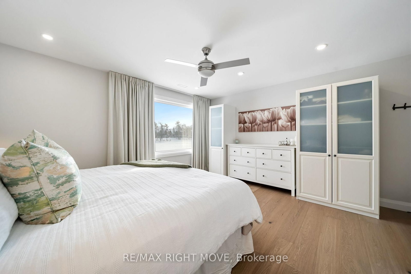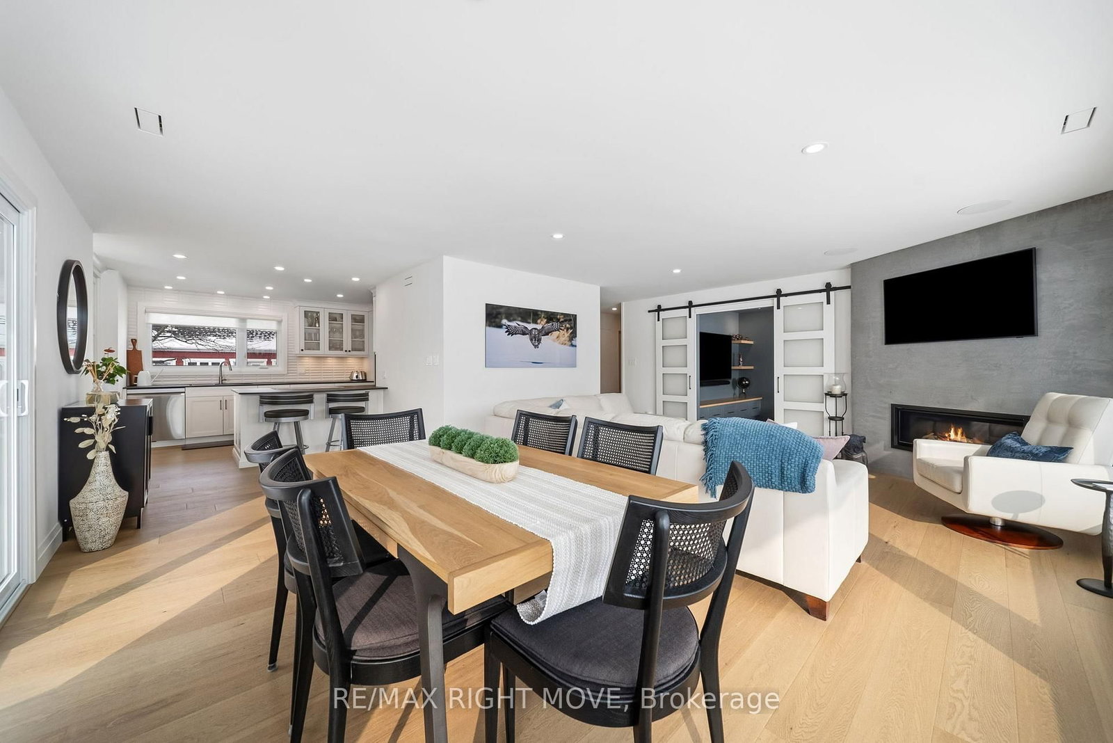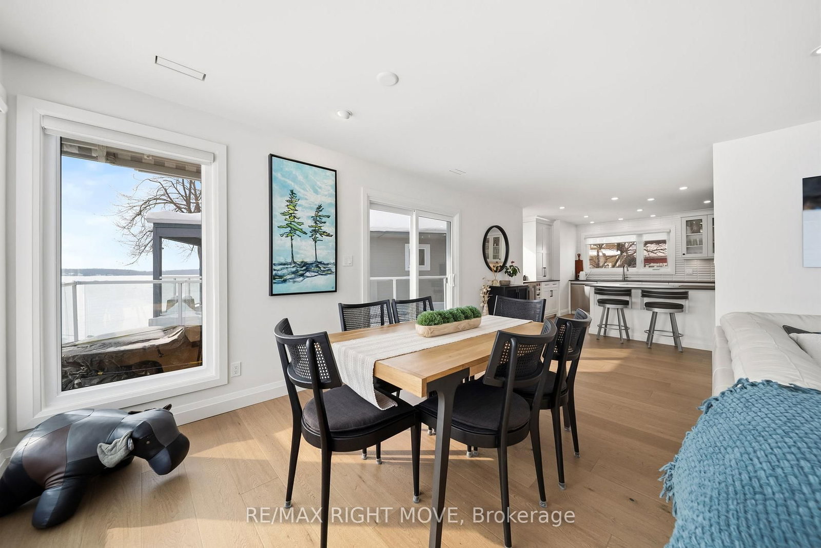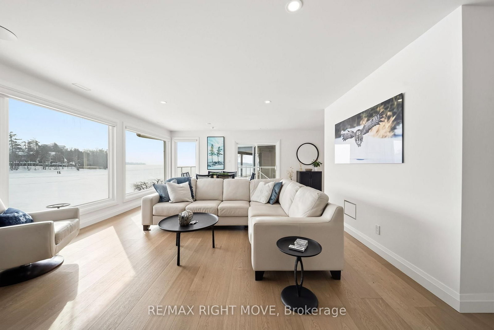 Spectacularly remodelled and exceptionally well finished, this waterfront condominium offers approximately 1,460 square feet of refined living space with breathtaking views of Lake Simcoe from the principal rooms. The Bungalow on 205-585 Atherley Road has 2 bedrooms, 2 bathrooms, and is located in the community of Orillia . Extensive renovations were completed in 2023 with careful attention to both function and design, resulting in one of the nicest condominium offerings in Orillia. The kitchen, living, and dining areas are all oriented toward the water, allowing the views to remain the focal point of the home, while a private balcony provides an ideal place to relax and enjoy the lakefront setting.The custom kitchen is both stylish and functional, complemented by quality appliances and a layout well suited for entertaining. The living area features a gas fireplace and in ceiling speakers, creating a comfortable and inviting atmosphere. One of the bedrooms is currently set up as a media room and has been designed specifically for movie nights, while still offering flexibility for other uses. The primary bedroom enjoys a peaceful outlook and custom window coverings. Engineered hardwood flooring, ceramic tile in key areas, custom closets, updated lighting, doors, trim, and hardware reflect the level of care taken throughout the unit. Residents enjoy access to a lakeside pool, spa area with sauna, and social room, along with two parking spaces, one garage and one outdoor, making this a rare opportunity to secure a meticulously updated waterfront condominium with outstanding views and lifestyle appeal.
