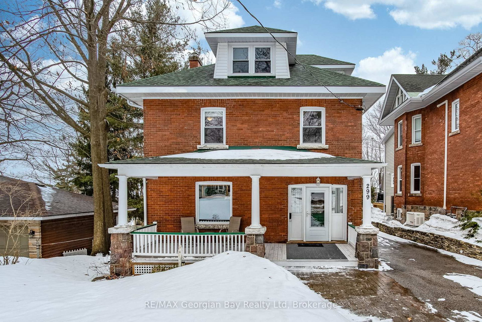 Have you been dreaming of a character-filled redbrick in one of the most sought-after locations in Midland? Well look no further than this Fifth Street beauty nestled between Yonge and Hugel Avenue, near the shores of sparkling Georgian Bay. The 2 1/2 Storey on 299 Fifth Street has 3 bedrooms, 2 bathrooms, and is located on a 150 x 50 ft lot in the community of Midland . This classic 2 1/2-storey home is a short stroll to beautiful Little Lake Park with playgrounds, ball diamond, dog run, frisbee golf, theatre area for summertime music, festivals and the lake, of course - for outdoor fun all year around. And how about this? There are original hardwood floors on 2 levels, 3 spacious bedrooms, plenty of closets and other storage including cedar-lined drawers and cabinet in the second floor sunroom which extends across the back of the home, plus amazing bonus space in the form of a rec room in the finished attic. The principal rooms are generously sized, there's a gas fireplace in the living room, main-floor bathroom and family room, and walkouts to a large wrap-around rear deck for entertaining, barbequing, or just relaxing throughout the warmer months. You also have a double garage, a lovely covered porch at the front, and spacious foyer to welcome family and friends. Enjoy being situated in an established and very desirable neighbourhood with plenty of trees and centrally located with great walk-ability to some of the best schools in town, our many downtown shops, restaurants, the YMCA, rec centre, arena, curling club, close to the waterfront, miles of trails, the marina, the library, the hospital, golf courses and all the other amenities our wonderful shoreline community has to offer you. Commuting distance to Barrie, Wasaga Beach, Orillia, and 90 minutes to the Toronto area.This is the perfect opportunity for couples or families to build memories here! Overall square footage is based on exterior dimensions and includes the heated sunroom. Call today to schedule your personal visit.