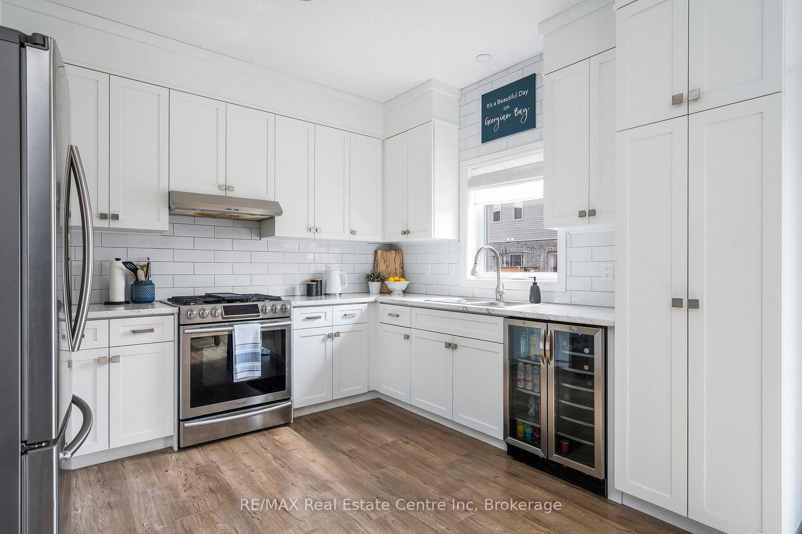 24 George Zubek Dr is a beautifully designed 3-bdrm, 2. The 2-Storey on 24 GEORGE ZUBEK Drive has 3 bedrooms, 3 bathrooms, and is located on a 90.68 x 37.16 ft loton < .50 acres in the community of Collingwood .5-bath end-unit townhouse W/large greenspace & upscale finishes in an incredible Collingwood location perfect for families or investors! Enjoy the best of 4-season living W/beaches, ski hills & amenities just mins from your doorstep. Step inside to open-concept main floor W/living room anchored by gas fireplace-an exclusive feature available only to end units-creating a warm & inviting atmosphere. Large windows & sliding doors allow natural light to pour in while seamlessly connecting indoor & outdoor living. Kitchen offers white cabinetry, S/S appliances, backsplash, ample counter space & B/I beverage fridge. Dedicated dining area W/stylish light fixture overlooks backyard & offers ideal setting for family dinners. 2pc bath completes main level. Upstairs you'll find spacious primary bdrm with W/I closet & 3pc ensuite W/beautifully tiled W/I glass shower. 2 add'l bdrms offer excellent flexibility for family, guests or home office-one offers vaulted ceilings, large window & its own W/I closet! 4pc main bath W/vanity & shower/tub serves this level along W/upper-level workspace nook-perfect for remote work or study. Unfinished bsmt offers excellent storage & future potential with 2 large windows that make the space bright & inviting. Whether you're looking to create add'l bdrms or a rec room, the possibilities are endless. Step outside & enjoy the lovely backyard, perfect for kids, pets or summer evenings with friends. With lots of space to relax, play & entertain it's a true extension of the home. Located in a growing family-friendly neighbourhood you're just mins from downtown Collingwood, shops, restaurants, trails & amenities. Spend winters at Blue Mountain & summers exploring Georgian Bay & Wasaga Beach-about 20-min away. Enjoy nearby Scandinavian-inspired spa experiences, golf courses & Blue Mountain Village offering boutiques, dining & yr-round entertainment. This is more than just a home; it's a lifestyle