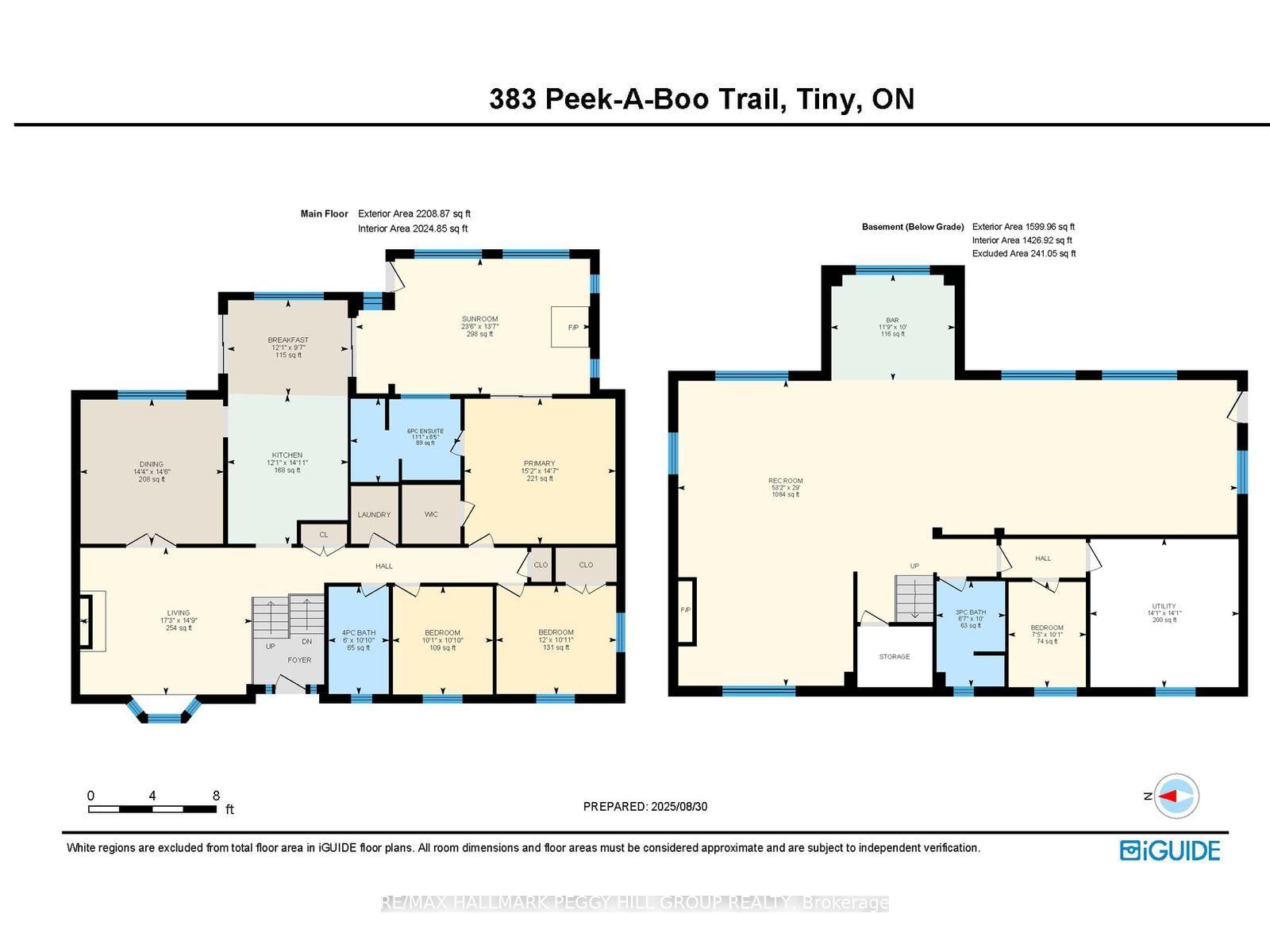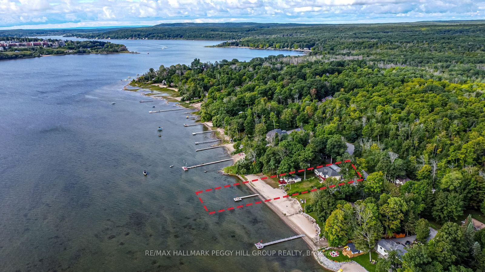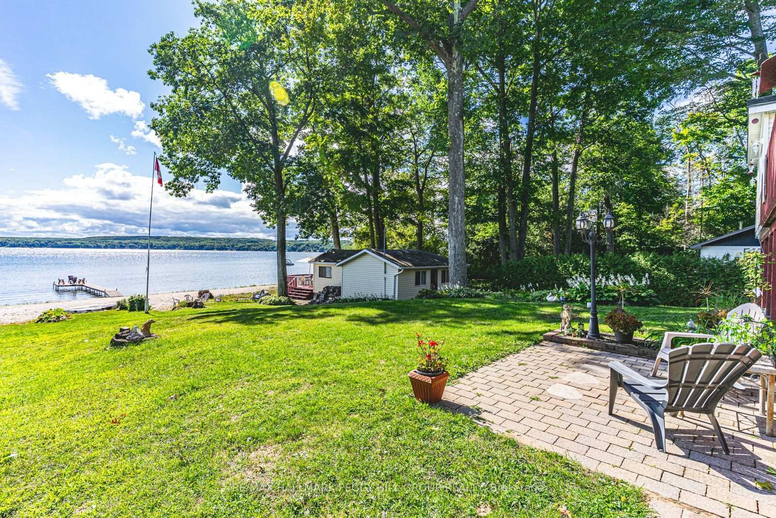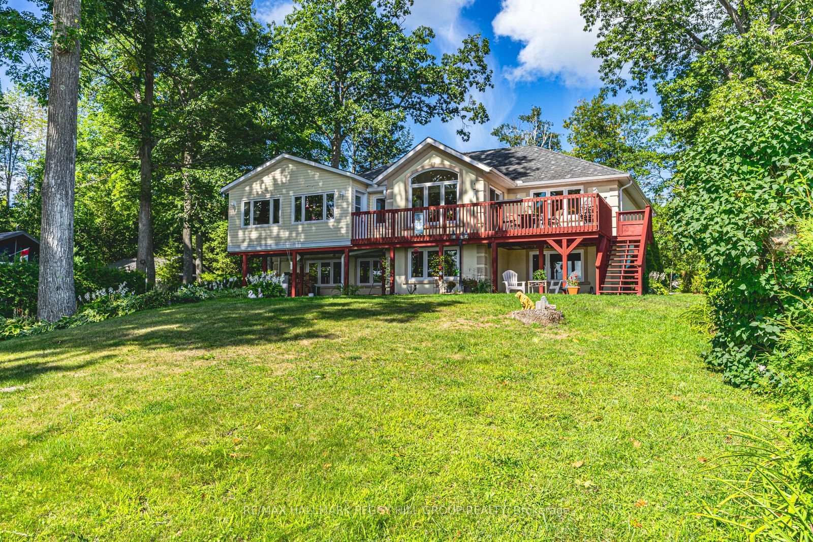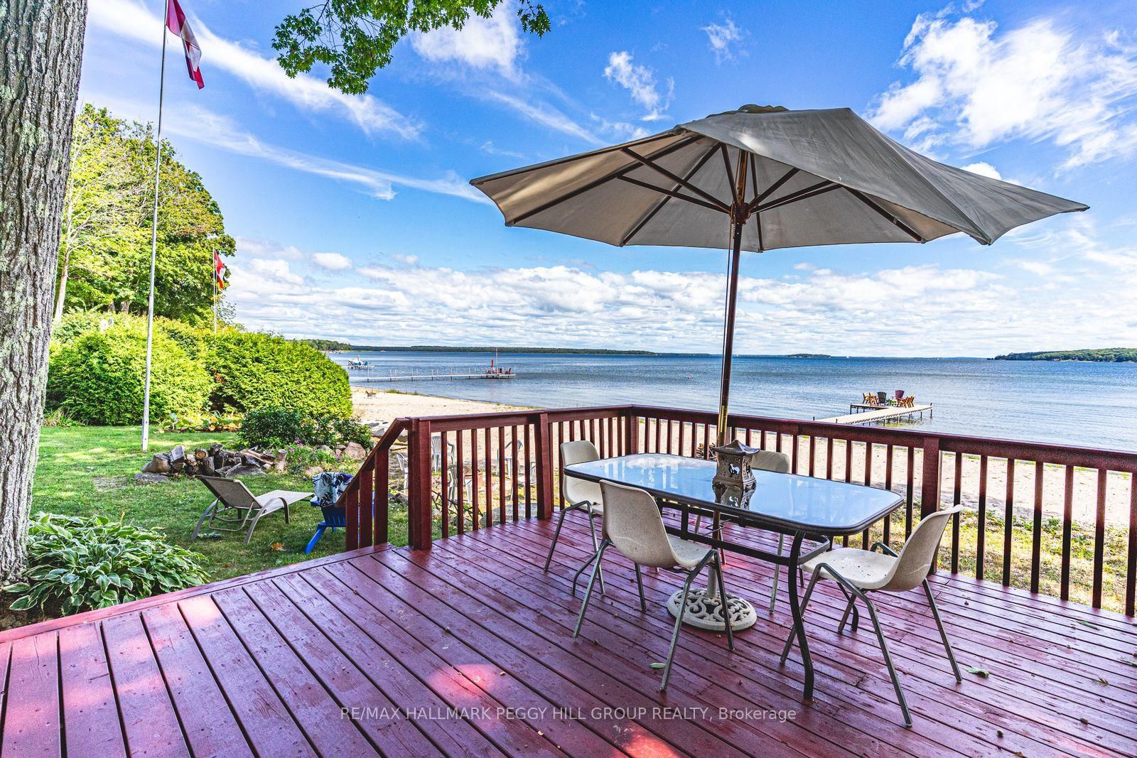 LUXURIOUS GEORGIAN BAY ESTATE WITH 83 FT OF SANDY SHORELINE, SECOND COTTAGE, DETACHED GARAGE & ALMOST HALF AN ACRE! 83 feet of Georgian Bay frontage with eastern exposure presents a private sandy beach with gradual entry, clear waters, and sunrise views that define the waterfront lifestyle. The Bungalow-Raised on 383 Peek-A-Boo Trail has 5 bedrooms, 4 bathrooms, and is located on a 190.34 x 83.01 ft loton < .50 acres in the community of Rural Tiny . Set on nearly half an acre with a large back deck, the property is further enhanced by an expansive L-shaped dock with a bump-out that extends into the bay, offering an impressive setting for entertaining, lounging, and docking motorcraft. Located on a coveted cul-de-sac along sought-after Peek-A-Boo Trail and just steps from Tee Pee Point Park, the property delivers exclusivity and tranquillity while remaining approximately 10 minutes to local essentials and a short drive to Penetanguishene and Midland for expanded amenities. The primary residence introduces itself with a stately front entry, covered porch, manicured landscaping, and a detached two-car garage with six-car driveway parking. The kitchen is appointed with rich wood cabinetry topped with crown, granite counters, stainless steel appliances, and a built-in desk area. The living room features a bay window, crown moulding, fireplace, and French doors, while the spectacular sunroom boasts soaring ceilings, shiplap accents, pot lights, a dramatic fireplace, and a walkout. The primary bedroom highlights its own walkout to the sunroom, a walk-in closet, and a spa-like 6-piece ensuite. Extending the living space, the finished walkout basement showcases a massive rec room with a third fireplace, pot lights, and room for a pool table, along with a fourth bedroom and full bath, with the entire level opening directly to the yard and waterfront. A versatile second cottage with two bedrooms, a bathroom, a kitchen and a living area, and a private deck enhances the property's functionality for family and guests, while main floor laundry, in-floor radiant heating, central vac, and ERV/HRV systems add to the overall comfort.