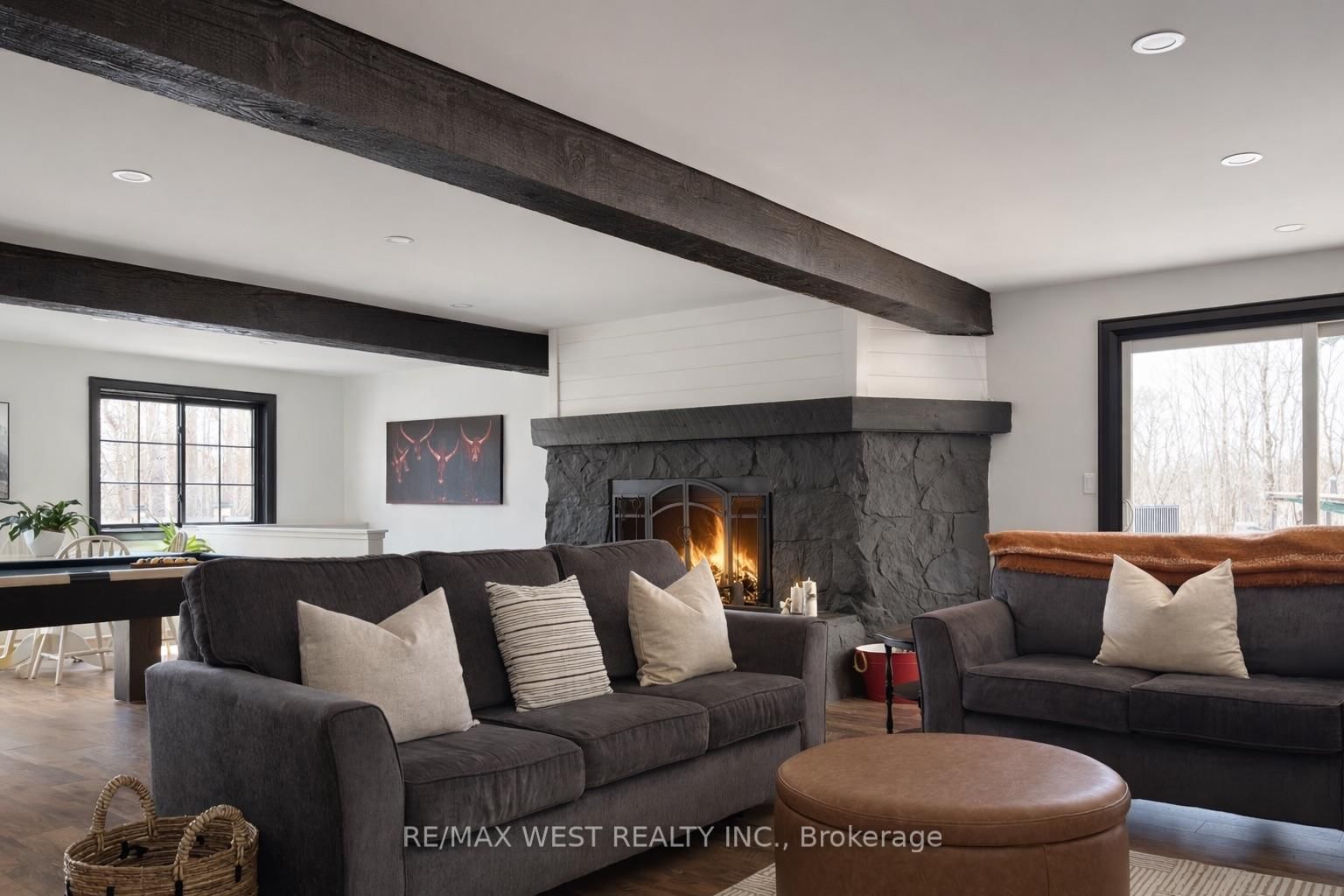 Stunning Modern Country Residence Ideally Situated Minutes From Mount St. The 2-Storey on 4532 Line 5 null N has 4 bedrooms, 5 bathrooms, and is located on a 278.5 x 158 ft lot in the community of Moonstone . Louis Moonstone, Offering Over 4,500 Square Feet Of Beautifully Reimagined Living Space On A Private One-Acre Setting. This Extensively Renovated Home Blends Timeless Character With Refined Contemporary Design, Featuring Seven Bedrooms And Five Elegant Bathrooms. A Showstopping Chef's Kitchen Anchors The Main Level With An Expansive Island And Seamless Flow Into A Generous Dining Area, Perfect For Memorable Gatherings. The Open Concept Great Room Showcases A Striking Wood Burning Fireplace And Multiple Conversation Zones, Creating A Warm And Inviting Atmosphere. The Primary Suite Is A Luxurious Retreat With A Spa-Inspired Five Piece Ensuite And Walk-In Closet, Complemented By Three Additional Bedrooms, A Bright Sunroom Or Office, And Convenient Upper Level Laundry. The Fully Self-Contained Lower Level Offers Exceptional Flexibility With A Modern Eat-In Kitchen, Spacious Living Area, Three Bedrooms, One And A Half Bathrooms, Abundant Storage, And A Walkout To The Grounds. A Substantial Barn Or Garage With 60 Amp Service And 240 Volt Power Comfortably Accommodates Two Trucks. Enjoy Proximity To Horseshoe Valley Resort, Along With Easy Access To Barrie And Orillia. Notable Features Include A Durable Steel Roof, Updated Windows, 200 Amp Electrical Service, Enhanced Insulation, Upgraded Plumbing And HVAC Systems, A 14 By 24 Foot Deck, Distinctive Brick And Wood Beam Accents, Two Fireplaces, And An Impressive 17 Foot Swim Spa Designed For Year Round Enjoyment Under The Stars.