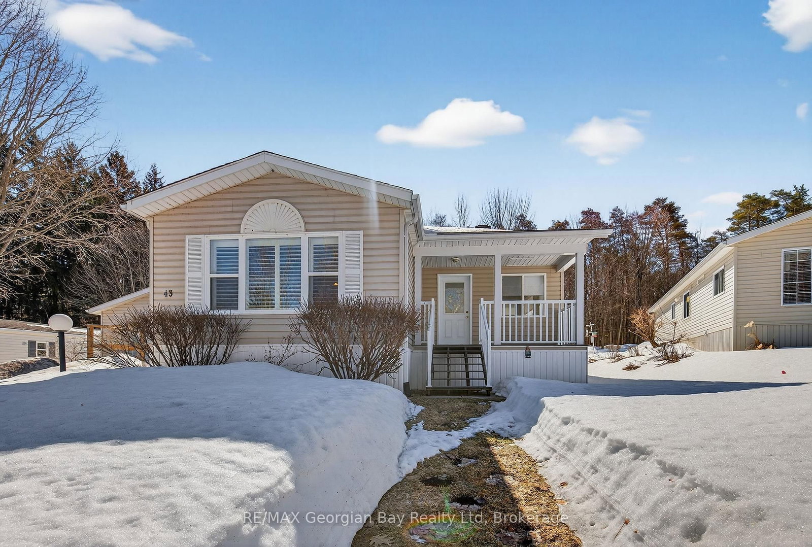 Welcome to 5411 Elliott Side Road #43 in Tay, located in a great retirement community known for its peaceful setting and strong sense of pride of ownership. The Bungalow on 43 Highland Ave-5411 Elliott Sideroad has 2 bedrooms, 2 bathrooms, and is located in the community of Rural Tay . This well-cared-for home features a bright kitchen with island, a spacious living room, and a beautiful sunroom/family room-perfect for relaxing and enjoying the surroundings. Offering two bedrooms and two bathrooms, along with the convenience of main floor laundry, this home is designed for comfortable, easy living. Forced air heating and central air provide year-round comfort, and a full generator adds peace of mind. Additional highlights include a detached garage and a location just 10 minutes from all local amenities and the scenic shores of Beautiful Georgian Bay, making this an ideal option for those looking to enjoy a relaxed lifestyle close to nature.