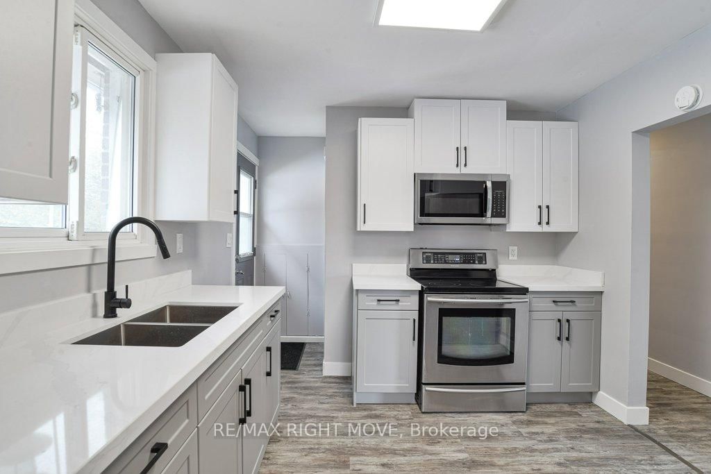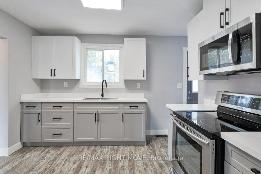 Updated brick ranch bungalow in the west ward of Orillia. The Bungalow on 636 Mississaga Street W has 3 bedrooms, 2 bathrooms, and is located on a 123.5 x 65 ft lot in the community of Orillia . Highway access minutes away makes this a convenient location for commuting. The layout includes an open concept L-shaped living/dining room with vinyl floors; kitchen with quartz countertops, stainless steel double sink, stainless steel refrigerator, stove and built-in microwave; 3 bedrooms; a new main 4pc. bathroom with a floating vanity, dual flush toilet and vinyl laminate floor. There's a main floor laundry closet to accommodate a stacking washer/dryer and a rear door off the kitchen leads to the partially fenced backyard. The basement includes a finished family room with Napoleon gas fireplace, LED pot lights and new Berber carpet; a new 4pc. bathroom with ceramic floor and an unfinished laundry/utility room for storage. The attached single garage measures 13' 9" x 23' 3" and has inside entrance to the family room. 100 amp hydro service. Newly paved double driveway (2025) with parking for up to 4 vehicles. This home is move-in ready and easy to show. Quick closing available.