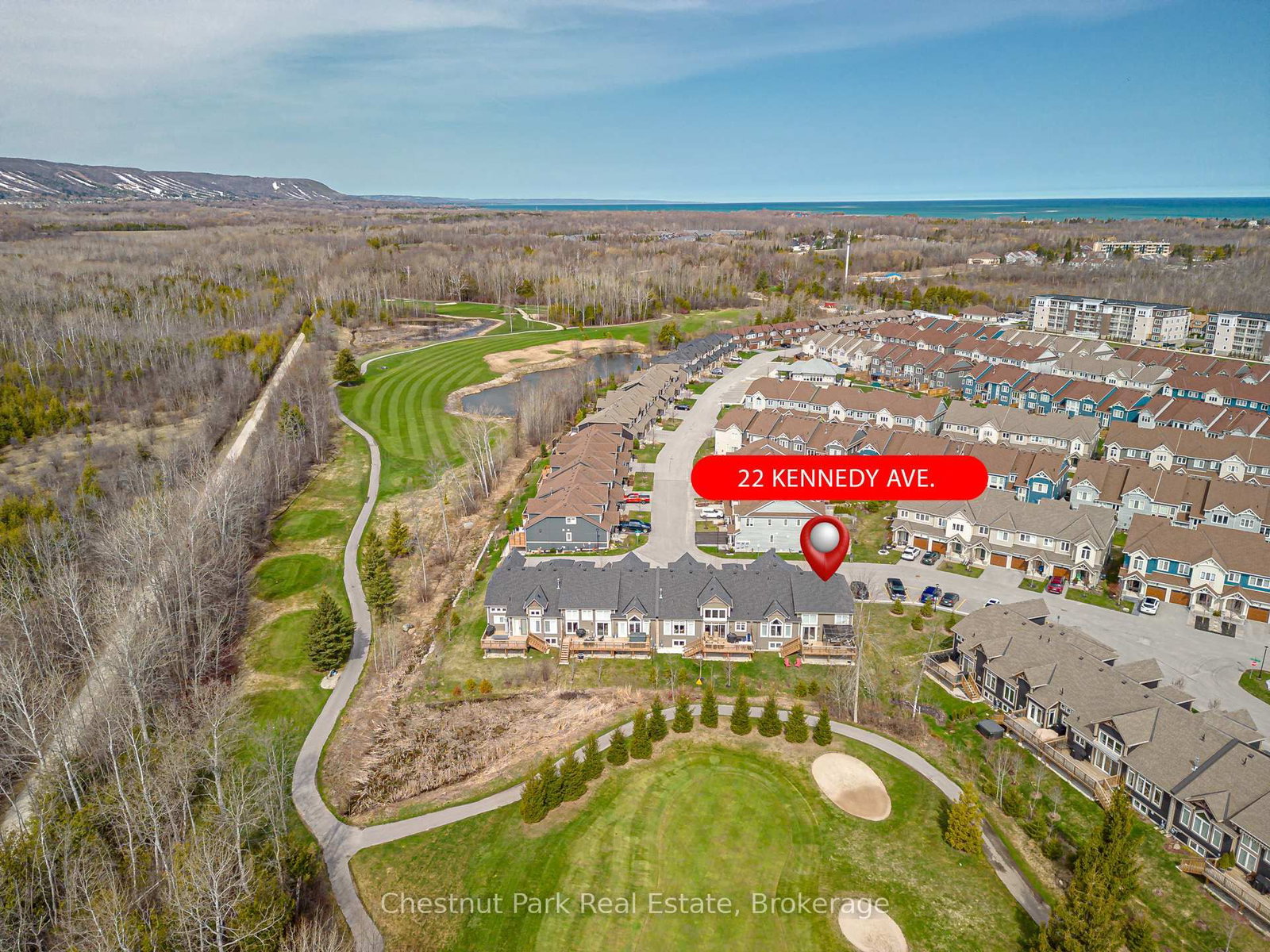 Welcome to your perfect Collingwood retreat! This beautifully designed 5-bedroom end-unit townhouse offers the ideal blend of space, natural light, and unbeatable-location nestled right along the fairways of the Cranberry Golf Course and just minutes from the area's premier beaches, scenic trails, and ski clubs/resorts. The 2-Storey on 22 Kennedy Avenue has 4 bedrooms, 4 bathrooms, and is located on a 95.09 x 63.86 ft loton < .50 acres in the community of Collingwood . Step inside to an airy open-concept layout, where floor-to-ceiling windows flood the home with sunlight and frame picturesque views of the lush green space beyond. The main floor features a generous primary suite with a private ensuite, a bright and versatile den/home office, and a functional kitchen outfitted with stainless steel appliances. The living and dining areas flow effortlessly together, creating a perfect space for both relaxed family living and stylish entertaining. Walk out to your private deck and enjoy peaceful mornings overlooking the golf course - now complete with a brand new hot tub, perfect for relaxing after a day on the slopes or trails. Upstairs, you'll find three spacious bedrooms with ample closet space and a 4-piece bath. The fully finished lower level offers even more room to relax or host guests, complete with a large recreation room, additional bedroom, full bathroom, and a bonus yoga/gym room. This home truly shines in every season. Enjoy quick access to the Georgian Trail, nearby private and public ski and golf clubs, beaches and a community recreation centre with outdoor pool. The large 2-car garage provides ample storage and parking, while visitor parking is just steps away. Whether you're seeking a luxurious weekend getaway or a full-time residence that embraces Collingwood's year-round lifestyle, this home delivers it all.
