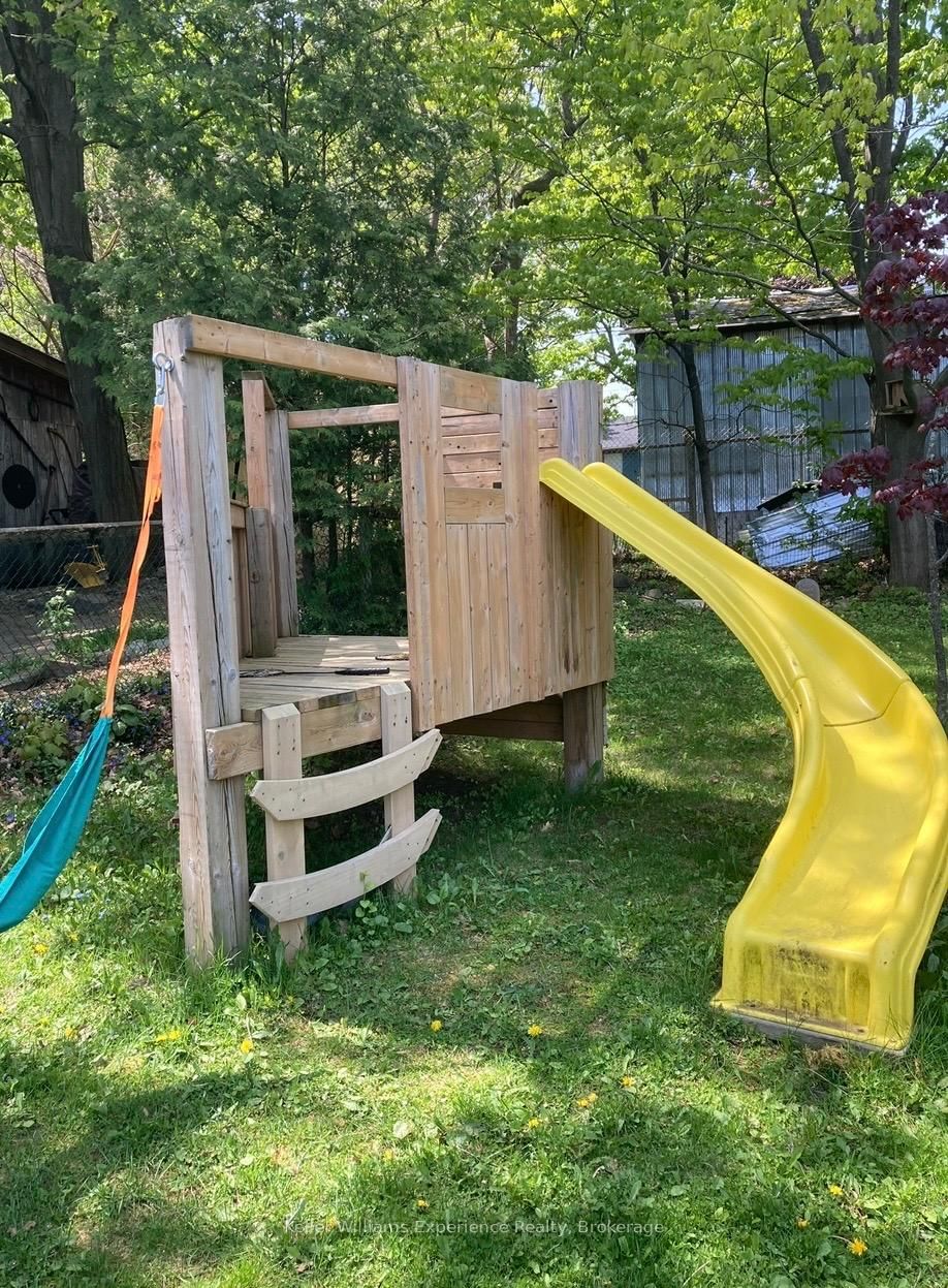 Move-in ready all-brick century home offers space, function, and a lot that gives you options. The 2-Storey on 128 Seventh Street has 4 bedrooms, 1 bathrooms, and is located on a 200.75 x 49.98 ft lot in the community of Midland .Set at the top of the hill, the elevated position provides a key advantage-better drainage and a consistently dry basement. The home sits on a 49.98 x 200 ft fully fenced lot with room to build a garage, expand outdoor living, or keep as open green space.Inside, the home maintains its character with crown moulding, large baseboards, and solid construction, paired with a bright, clean interior. The layout features a functional kitchen, a separate dining room, and comfortable living space for everyday use.With 3 bedrooms and 1 bath, plus an upper-level primary suite in the converted attic, there's flexibility for families, guests, or a home office.Recent updates include a new owned water heater and new eavestroughs, adding practical value and reducing ongoing costs.The backyard is set up for real use, with decks, a gazebo, and a storage building with a lean-to. Children's play equipment and a covered sandbox will remain making this perfect for young families or grandma / grandpa's day care. Close to waterfront trails, parks, schools, and downtown, this is a practical choice for buyers who want a move-in ready home with a large lot and the ability to add value over time.
