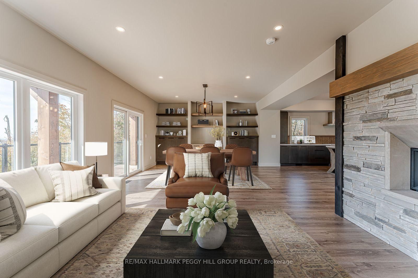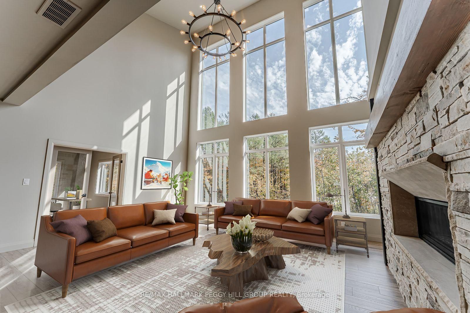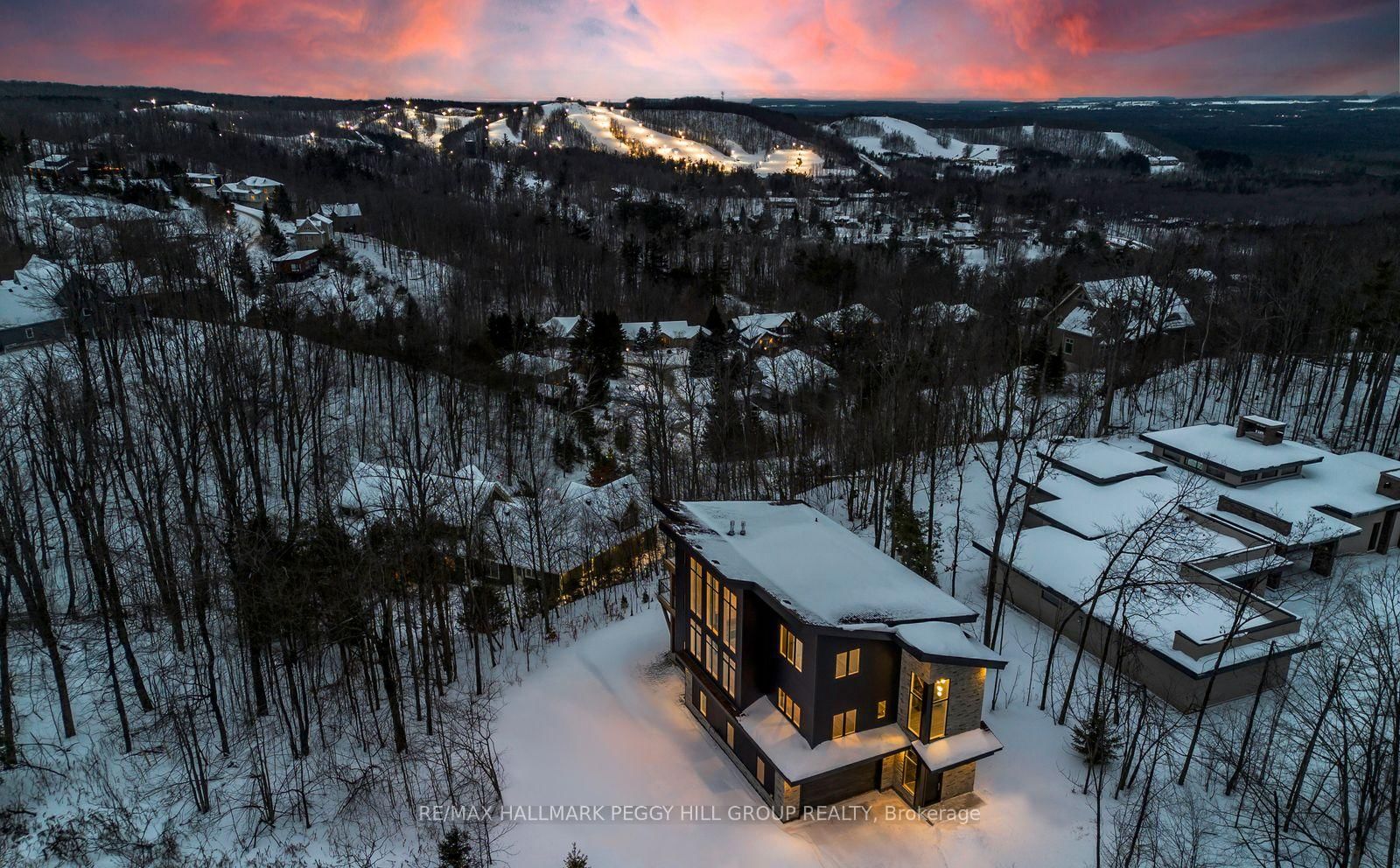 2024-BUILT 4,200+ SQ FT CHALET-STYLE RESIDENCE MEETS FOUR-SEASON ADVENTURE IN HORSESHOE VALLEY! Indulge in the artistry of modern design at this custom-built 2024 home in Horseshoe Valley, capturing panoramic western views and sunsets from its commanding hilltop setting. The 3-Storey on 3316 Line 4 null N has 4 bedrooms, 4 bathrooms, and is located on a 65.62 x 206.79 ft loton < .50 acres in the community of Horseshoe Valley . Boasting over 4,200 sq ft of above-grade living space, this modern chalet showcases striking black Hardie Board siding, stone facade accents, a fibreglass roof, and multiple glass-railed decks designed to celebrate the surrounding scenery. The open-concept main level is ideal for entertaining, highlighted by a 24-ft vaulted ceiling, floor-to-ceiling windows, and a double-sided Napoleon fireplace connecting the great room to the dining/family areas. The gourmet kitchen features Caesarstone quartz countertops, custom two-tone cabinetry, a dramatic X-leg island, a chevron tile backsplash, a pantry, and modern lighting, all flowing to a dining area with built-in shelving and a walkout. A private main-floor office provides a peaceful workspace, while the third level hosts the luxurious primary suite with its own fireplace, balcony, walk-in closet, and spa-inspired ensuite with a freestanding tub, double vanity, and glass shower, along with two additional bedrooms, a full bathroom, and a laundry room. The ground level extends the home's versatility with 9'9" ceilings, a bright rec room, an additional bedroom, and a full bathroom. Engineered hardwood, ceramic tile finishes, and meticulous craftsmanship are complemented by superior construction featuring an ICF foundation, LVL beams, and double-studded 2x6 walls. Within walking or golf cart distance to Horseshoe Resort, The Valley Club, tennis courts, and scenic trails, and just minutes to Vetta Nordic Spa, Copeland Forest, Lake Horseshoe, local dining, and Highway 400, this exceptional home is also near a new school, community centre, clinic, and fire station, defining sophisticated four-season living in one of Ontario's most prestigious destinations.