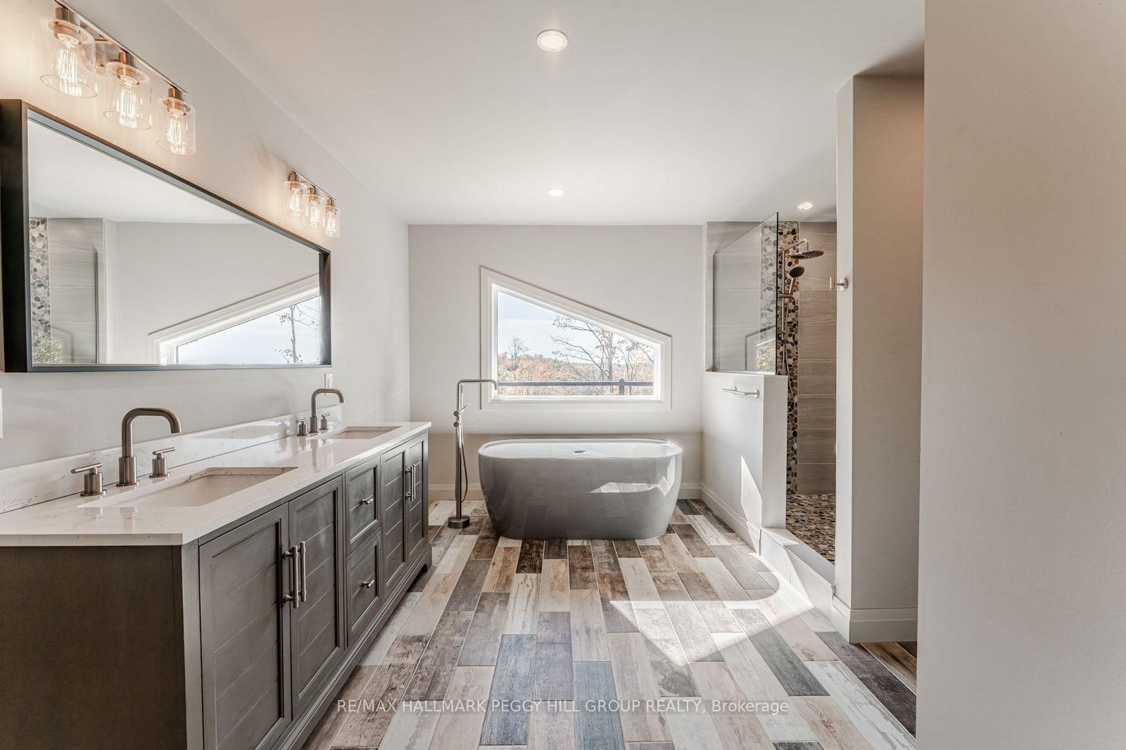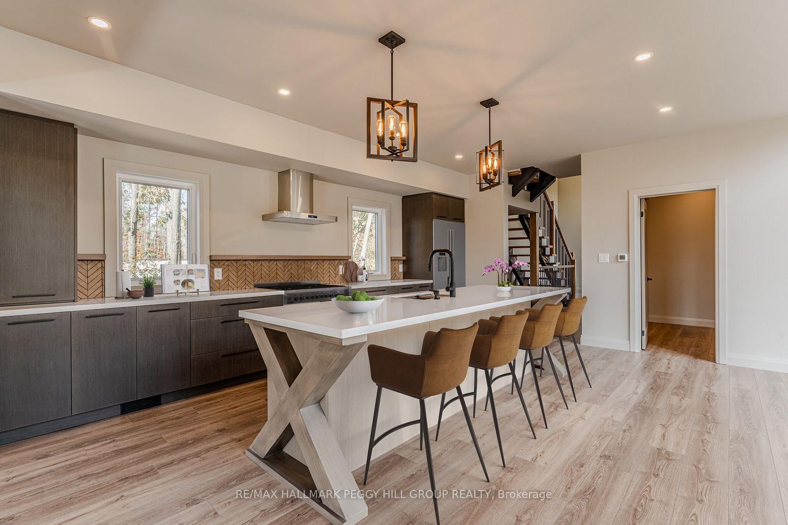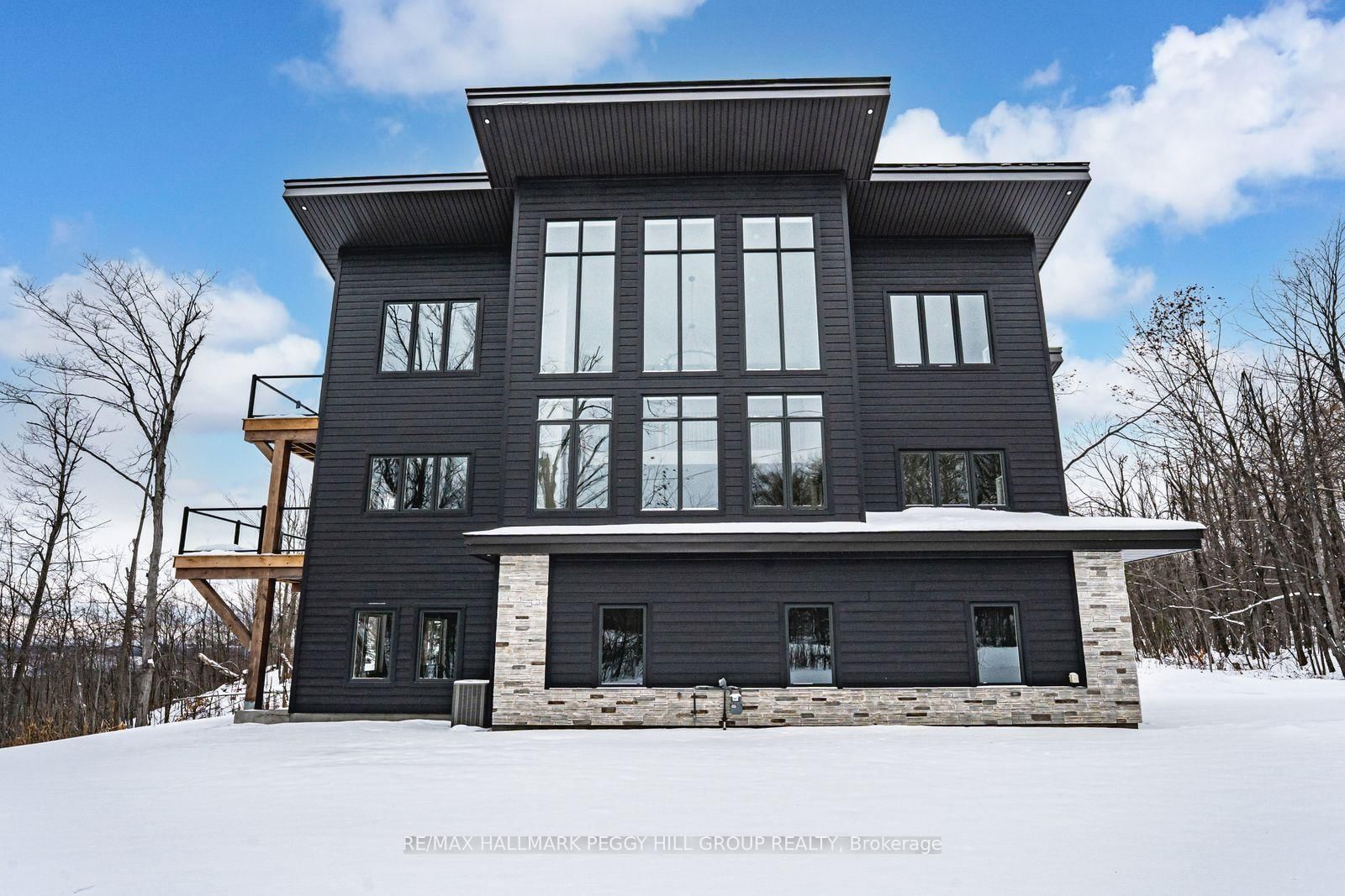 2024-BUILT 4,200+ SQ FT CHALET-STYLE RESIDENCE MEETS FOUR-SEASON ADVENTURE IN HORSESHOE VALLEY! Indulge in the artistry of modern design at this custom-built 2024 home in Horseshoe Valley, capturing panoramic western views and sunsets from its commanding hilltop setting. The 3-Storey on 3316 Line 4 null N has 4 bedrooms, 4 bathrooms, and is located on a 65.62 x 206.79 ft loton < .50 acres in the community of Horseshoe Valley . Boasting over 4,200 sq ft of above-grade living space, this modern chalet showcases striking black Hardie Board siding, stone facade accents, a fibreglass roof, and multiple glass-railed decks designed to celebrate the surrounding scenery. The open-concept main level is ideal for entertaining, highlighted by a 24-ft vaulted ceiling, floor-to-ceiling windows, and a double-sided Napoleon fireplace connecting the great room to the dining/family areas. The gourmet kitchen features Caesarstone quartz countertops, custom two-tone cabinetry, a dramatic X-leg island, a chevron tile backsplash, a pantry, and modern lighting, all flowing to a dining area with built-in shelving and a walkout. A private main-floor office provides a peaceful workspace, while the third level hosts the luxurious primary suite with its own fireplace, balcony, walk-in closet, and spa-inspired ensuite with a freestanding tub, double vanity, and glass shower, along with two additional bedrooms, a full bathroom, and a laundry room. The ground level extends the home's versatility with 9'9" ceilings, a bright rec room, an additional bedroom, and a full bathroom. Engineered hardwood, ceramic tile finishes, and meticulous craftsmanship are complemented by superior construction featuring an ICF foundation, LVL beams, and double-studded 2x6 walls. Within walking or golf cart distance to Horseshoe Resort, The Valley Club, tennis courts, and scenic trails, and just minutes to Vetta Nordic Spa, Copeland Forest, Lake Horseshoe, local dining, and Highway 400, this exceptional home is also near a new school, community centre, clinic, and fire station, defining sophisticated four-season living in one of Ontario's most prestigious destinations.
