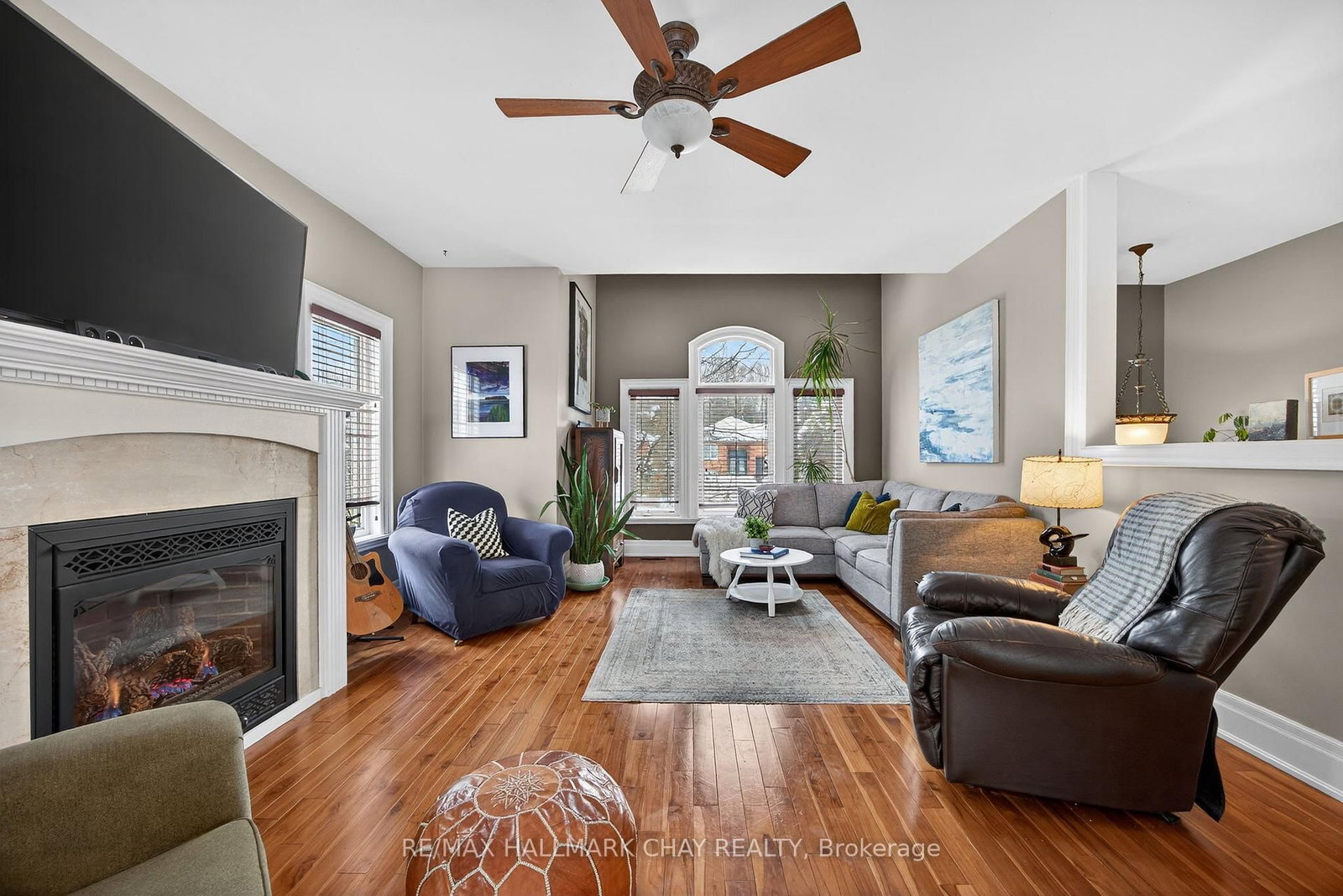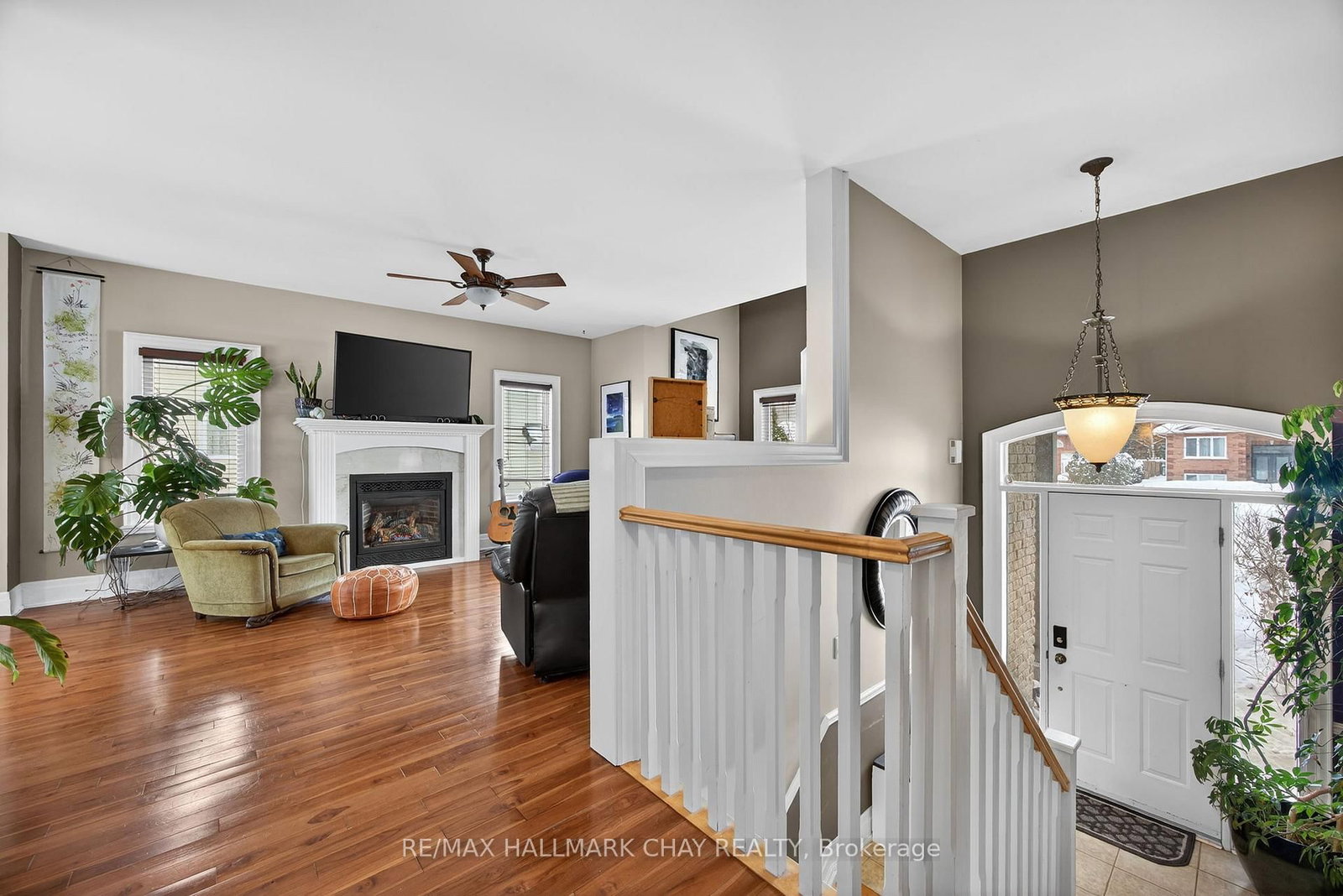 • Living Room: hardwood floor, Fireplace, Open Concept