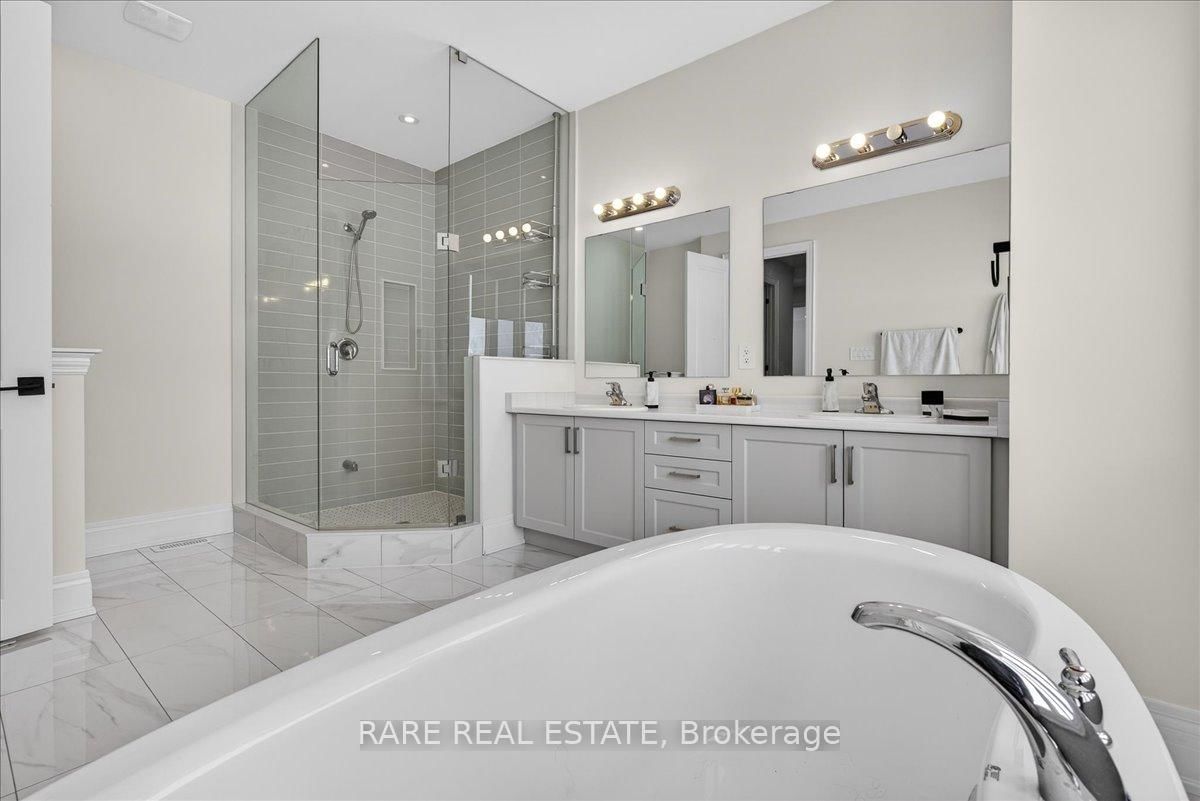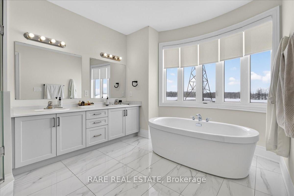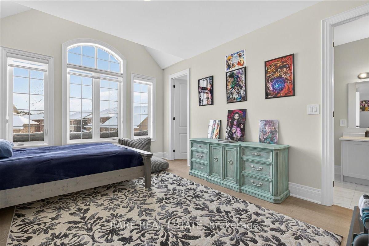 Experience the pinnacle of turnkey luxury in this immaculate 3,945 sq. The 2-Storey on 17 Sanford Circle has 5 bedrooms, 4 bathrooms, and is located on a 118.37 x 44.23 ft loton < .50 acres in the community of Centre Vespra . ft. "Lilac" model by Yorkwood Homes (2023). Situated on a premium lot in the prestigious Stonemanor Woods community of Springwater, this residence blends sophisticated design with modern functionality. Step inside to 9' ceilings across all three levels and 3/4" wide-plank engineered Oak hardwood flooring. The main floor is a sun-drenched sanctuary featuring a private office with French doors and an expansive open-concept great room designed for grand-scale entertaining. The chef-inspired kitchen is a showstopper, boasting premium built-in KitchenAid appliances, quartz waterfall countertops, and a matching quartz backsplash. The living area, anchored by a sleek gas fireplace, leads out to a newly installed PVC deck and professional interlocking stone walkways. The second floor offers five generous bedrooms and three full bathrooms. The Primary Suite is a true retreat, overlooking peaceful farm fields and featuring dual walk-in closets and a spa-like 5-piece ensuite with upgraded porcelain tiles and a deep soaker tub. Added convenience is found in the second-floor laundry and two Jack-and-Jill bathrooms, providing direct ensuite access for every bedroom. For those seeking multi-generational living or income potential, the unfinished basement is a blank canvas. It features a separate entrance with a dedicated interlocking stone walkway, plus rough-ins for a kitchen and bathroom-perfect for an in-law suite or secondary apartment. The oversized double garage provides lots of added storage and direct inside access. This home offers an elite lifestyle in Stonemanor Woods, a family-oriented enclave known for its expansive trails and parks. While enjoying the tranquility of Springwater, you remain just minutes from Barrie's North End, providing quick access to RVH Hospital, Georgian College, Highway 400, and the Barrie North GO Station for an easy commute.