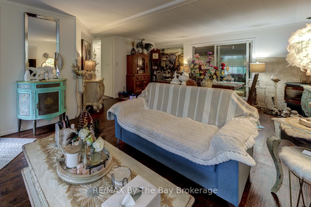 Wake up to the sounds of nature and enjoy the views from your bright sunroom as you drink your morning coffee. The Bungalow on 9 ALLEN Drive N has 2 bedrooms, 2 bathrooms, and is located in the community of Wasaga Beach . Play a round of golf at the onsite course and enjoy afternoon fun by the pool. That's what living is like here. Welcome to 9 Allan Drive. This home and community offer everything you could ask for! Located in Home Town community on a cul-d-sac. This home features its own enclosed studio/workshop area off of driveway, private yard, sheds with plenty of storage and plenty of parking. Inside this spacious and bright home you have a large kitchen, living room and dining area all great for entertaining family and friends. New flooring and paint throughout. 2 Bedrooms and 2 recently renovated bathrooms make this home a pleasure to be in. Enjoy golf, rec hall, outdoor pool all included when living here. Land Lease amount $750 per month and estimated monthly taxes site$36.69 home $102.54