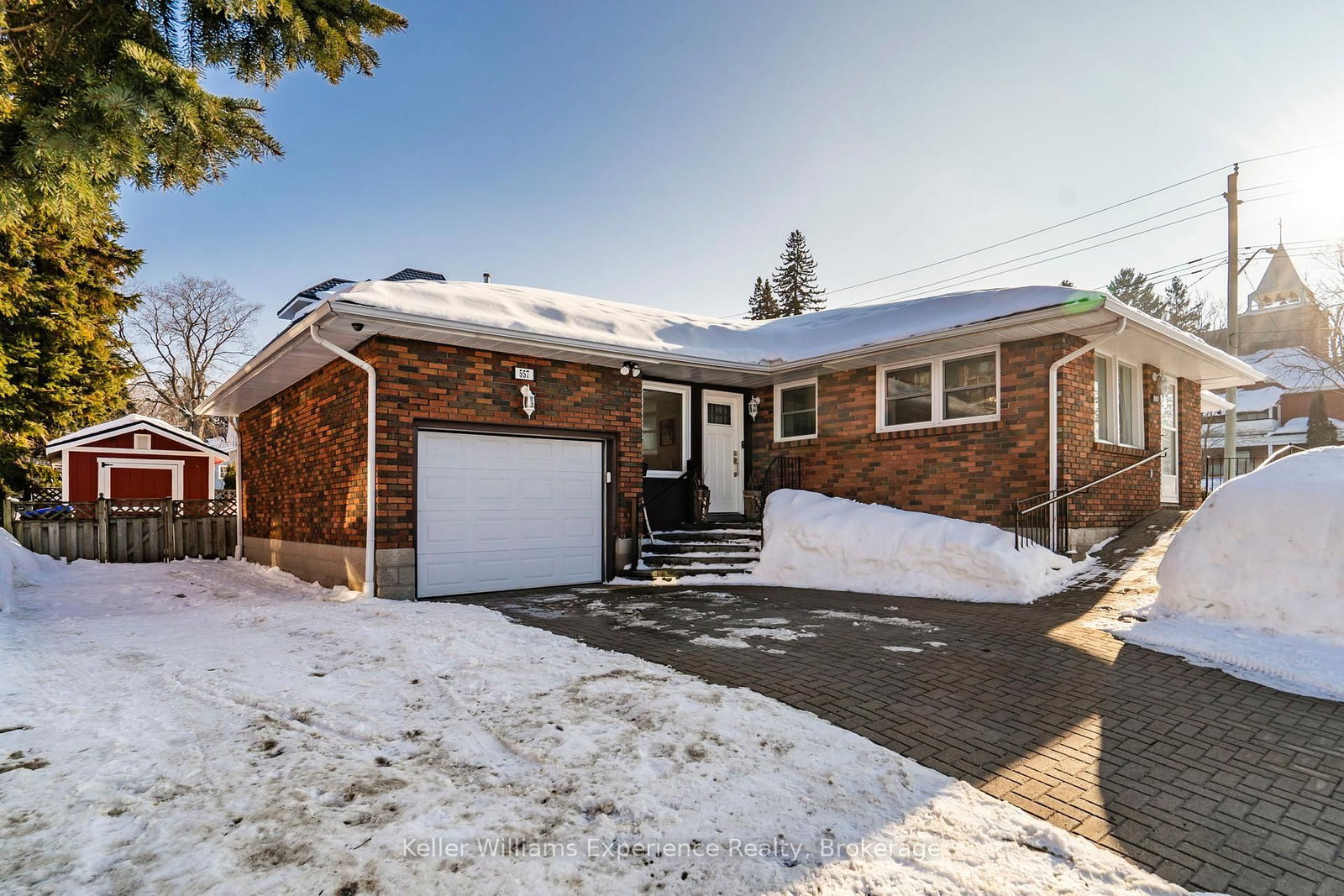 Well cared for, thoughtfully updated, and full of charm-this is one you won't want to miss!. The Bungalow on 557 Hugel Avenue has 2 bedrooms, 2 bathrooms, and is located on a 87 x 75 ft lot in the community of Midland . This solid all-brick bungalow offers approximately 2,200 sq ft of finished living space and shows an A+. Freshly painted with new lighting fixtures and window coverings throughout, this home blends classic charm with thoughtful updates. Featuring 3 spacious bedrooms and 2 full bathrooms, there's plenty of room for families or downsizers. The bright main-floor living room features a cozy gas fireplace, while the fully finished basement offers a warm, inviting family room-perfect for movie nights, hobbies, or extra living space-along with a convenient office nook ideal for working from home or tackling daily tasks. The primary bedroom includes his-and-hers closets and is accented by a Napoleon Electric Fireplace. Situated on a corner lot, you'll love the impressive triple-wide interlocked driveway with matching entry and exit stairs. Parking for up to 7 vehicles and a 26' deep garage provides excellent storage and workspace. Step outside from a 3-season sunroom to a fully-fenced backyard retreat featuring a brick fire pit and a solar string-lit pergola, perfect for entertaining. Mature gardens with beautiful lilac trees and newly planted spruce trees create a picturesque setting. Major updates include: Attic insulation (R50) - 2023; Central A/C and appliances - 2022; Roof - 2017; Furnace - 2013; Oversized shed/workshop and Garage Door Opener (2025). Walk to groceries, restaurants, pharmacy, entertainment, and waterfront parks and trails - quiet - neighbouring 60+ year-old facility. Hard-wired 7,500W Generac included.