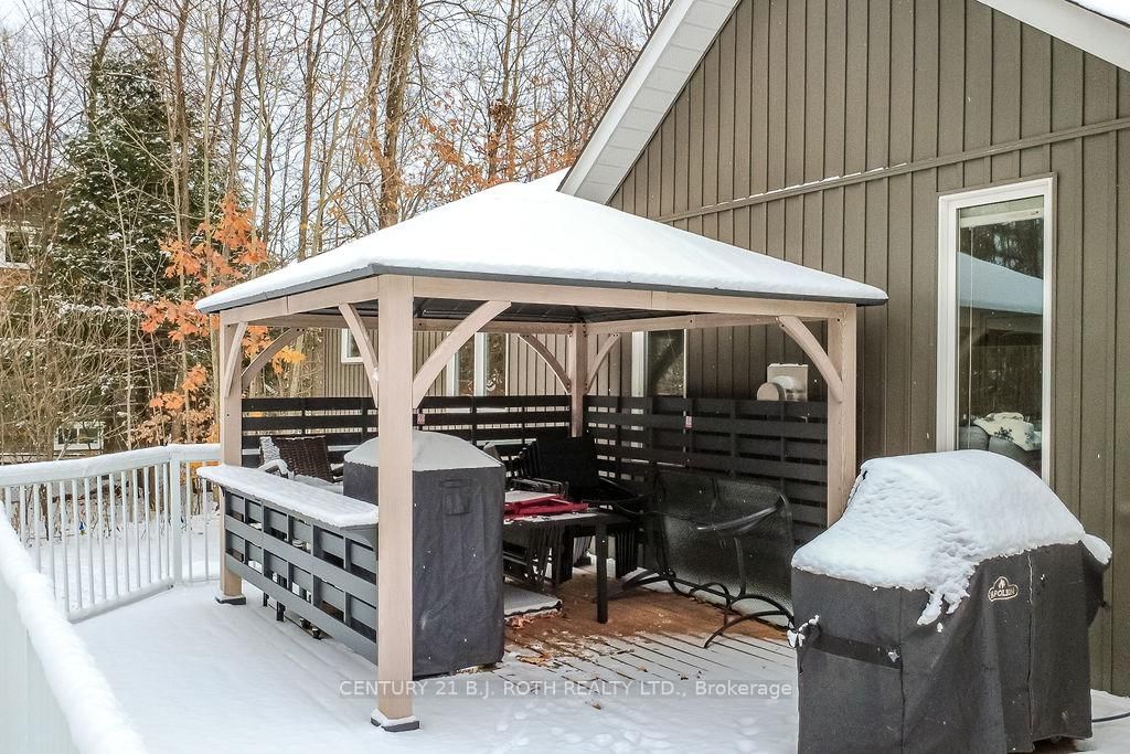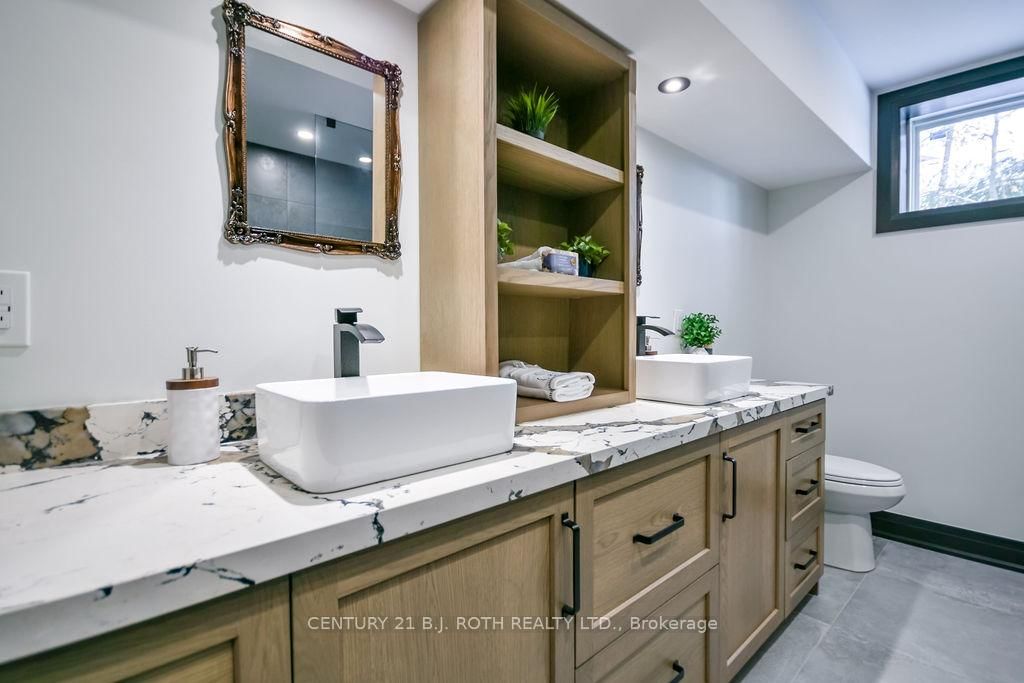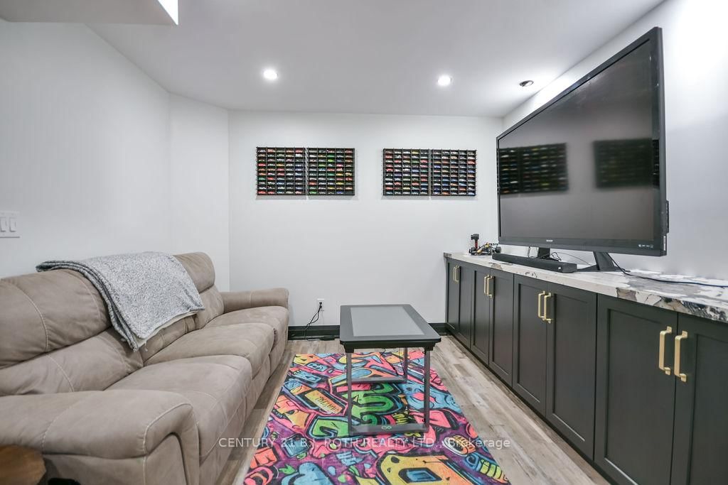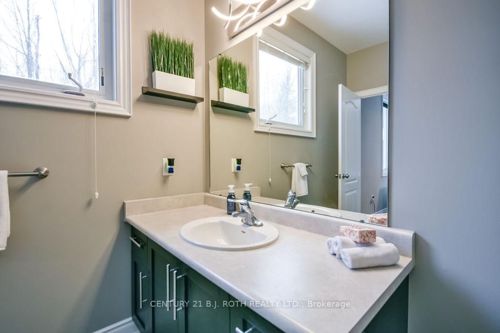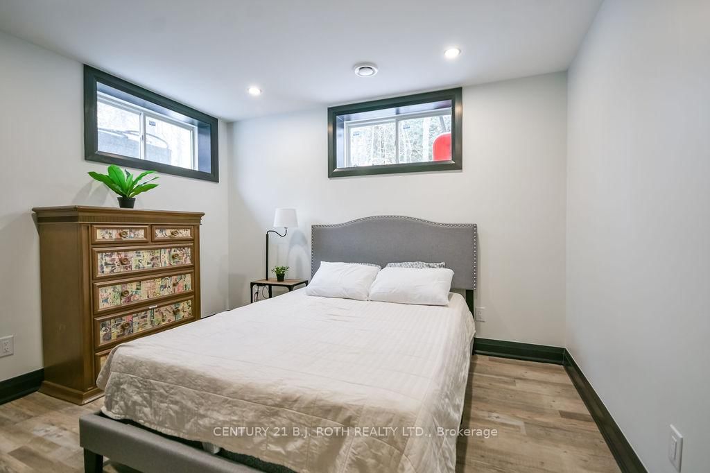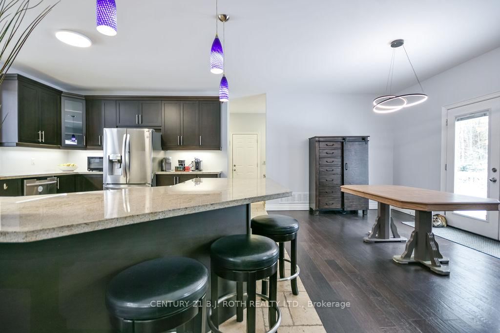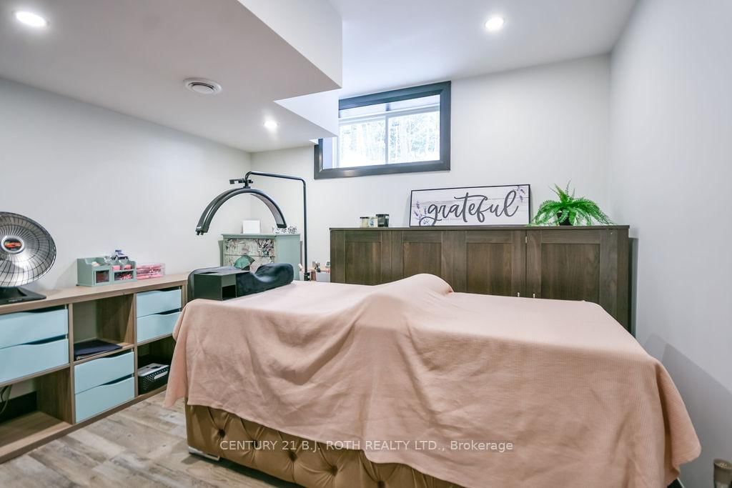 Welcome to this beautiful custom-built bungalow nestled in the sought-after community of Warminster, set on a 1. The Bungalow on 8 Merrington Avenue has 3 bedrooms, 3 bathrooms, and is located on a 390 x 131 ft lot in the community of Warminster .15-acre treed lot offering privacy, elegance, and resort-style living. This impressive 5 bedroom, 4 bathroom home showcases over $250,000 in upgrades and a thoughtful open-concept design featuring 9-foot ceilings and an abundance of natural light throughout. The entertainment-sized kitchen is a chef's dream with granite countertops, travertine tile, breakfast bar, and stainless steel appliances including a gas range, beverage refrigerator, and dishwasher. The inviting Primary Suite offers a luxurious ensuite and tranquil views, while the main floor laundry and 2-piece powder room add convenience and functionality. Hardwood floors flow seamlessly through the main living areas, enhancing the home's warmth and character. The finished lower level is designed for entertainment and relaxation, featuring two large bedrooms, a spa-inspired bathroom with walk-in shower, a home theatre, video gaming area, and a spacious family room with custom bar area - perfect for hosting friends and family. Step outside to your private oasis: a large entertainment-sized deck overlooks the landscaped yard and a stunning 16' x 32' heated inground pool (2023), creating the ultimate backyard retreat. The attached double tandem oversized garage provides ample space for vehicles, tools, and toys. This beautiful home is also wired for generator power for added security during power outages. Ideally located near parks, soccer fields, baseball diamonds, pickleball courts, and the new Xposed Ball Hockey League Courts, this home offers the perfect balance of luxury, recreation, and community living. Experience the best of country charm and modern sophistication in this exceptional Warminster bungalow - a true entertainer's dream! UPGRADES: Waterproofing of complete basement (2023), Washer & Dryer (2024), Humidifier (2023), Buried electric fence for pets, all deck boards (2024)